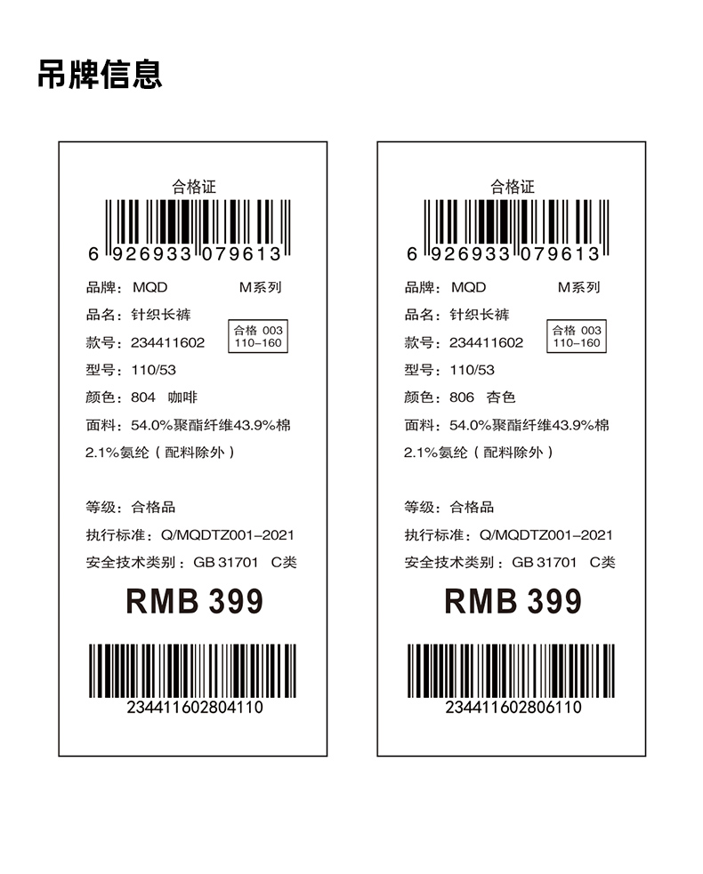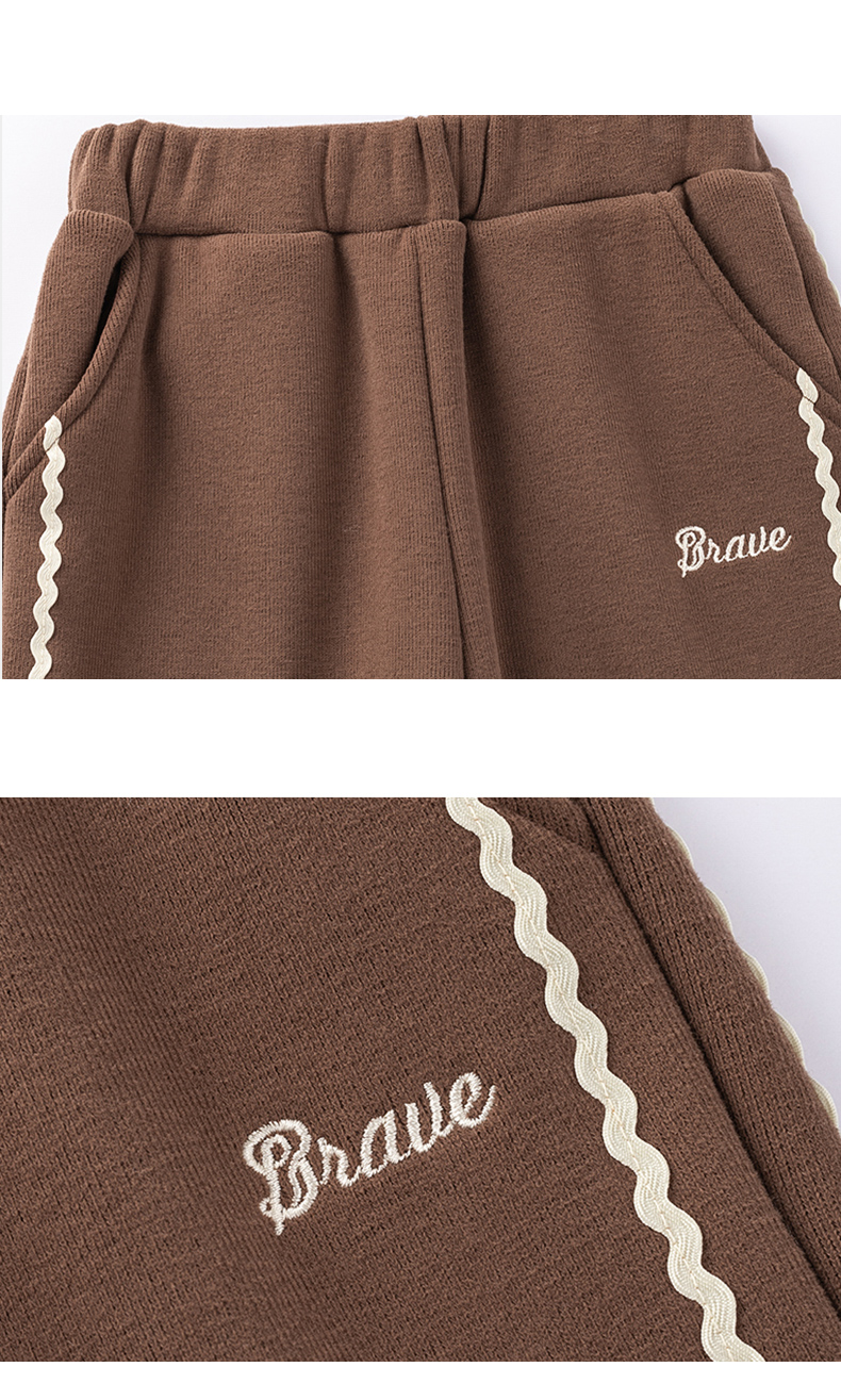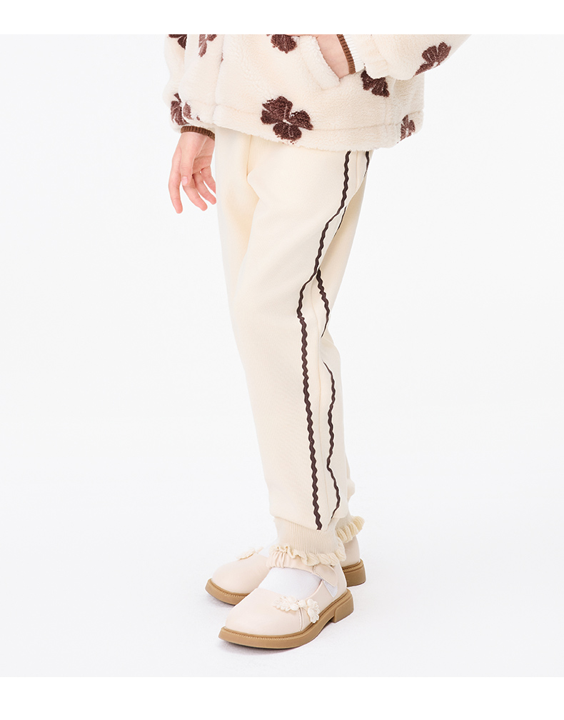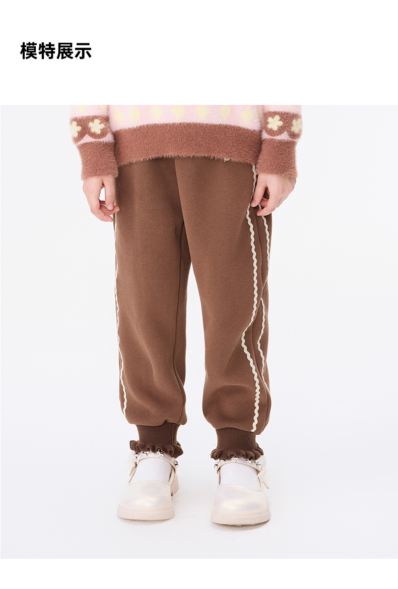 【秒3】【MQD】女童冬季波浪织带运动休闲针织长裤