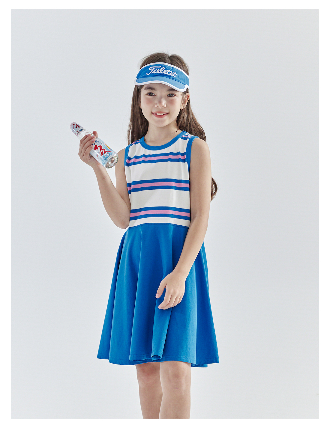 cicochild 25年夏季新款亲子中大女童条纹拼接连衣裙清新活力裙子