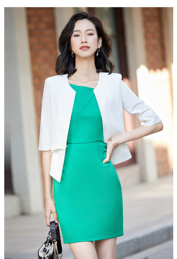 XZ-X129时尚一粒扣西装外套背心裙职业两件套