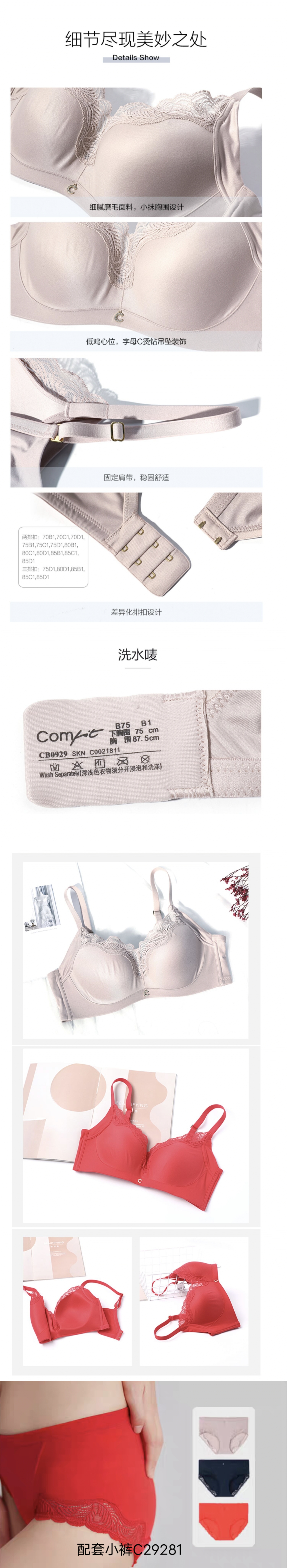 安莉芳旗下Comfit无钢圈内衣女大码蕾丝调整型聚拢红色文胸CB0929