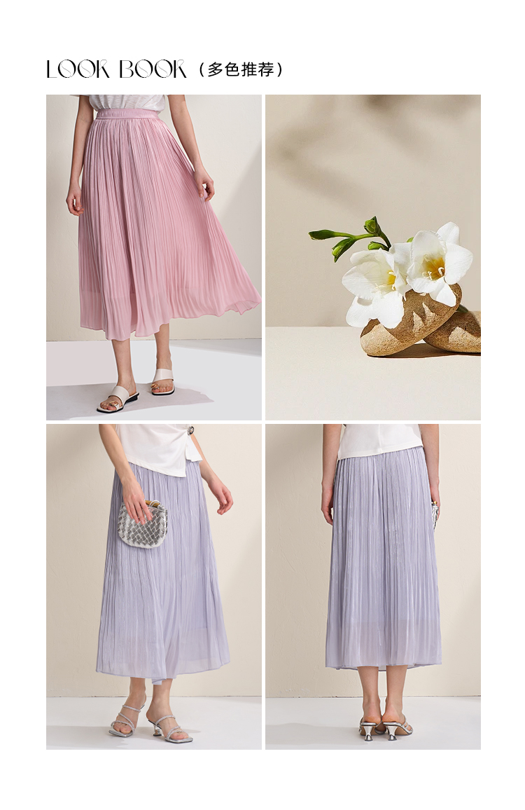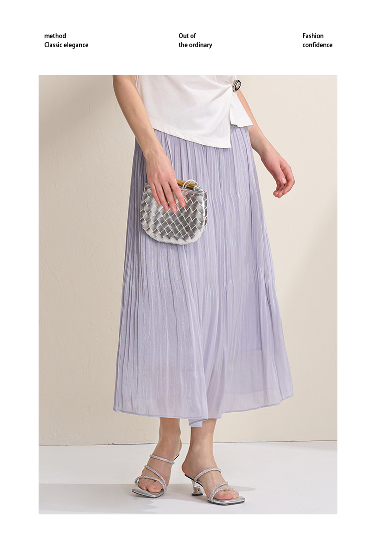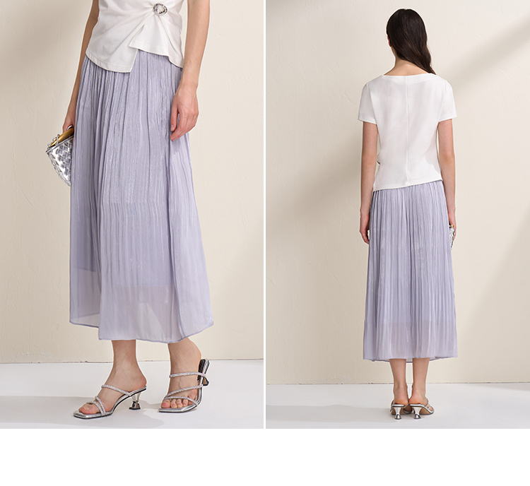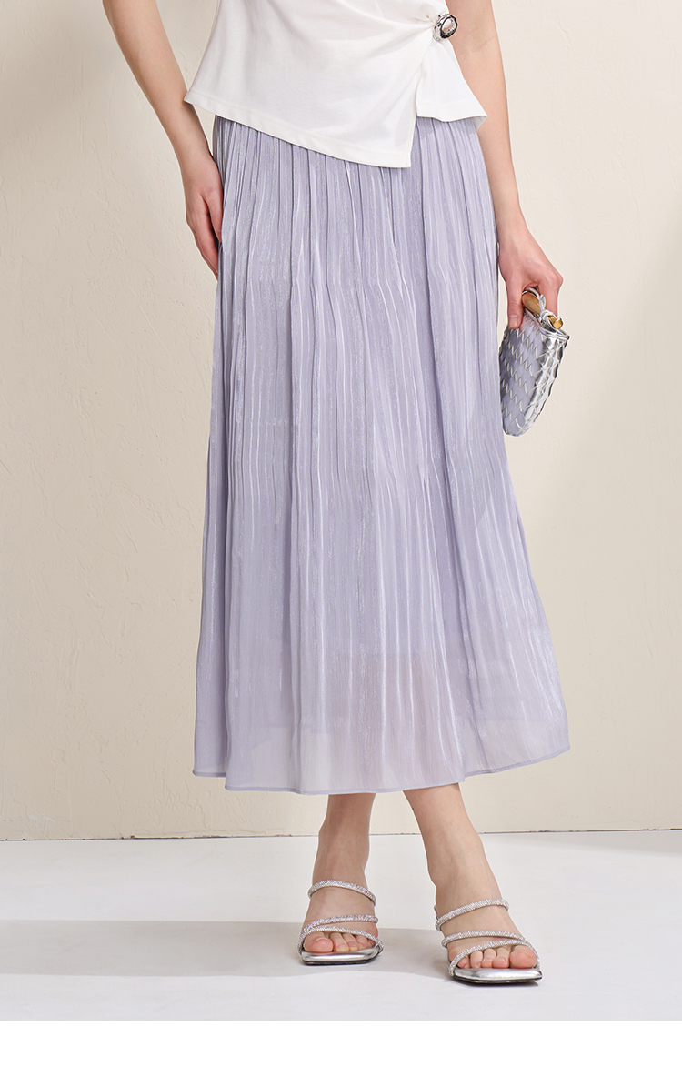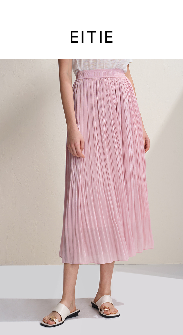 EITIE爱特爱垂坠飘逸流光纱裙A字压褶中长款半身裙2026夏季新款B2606218
