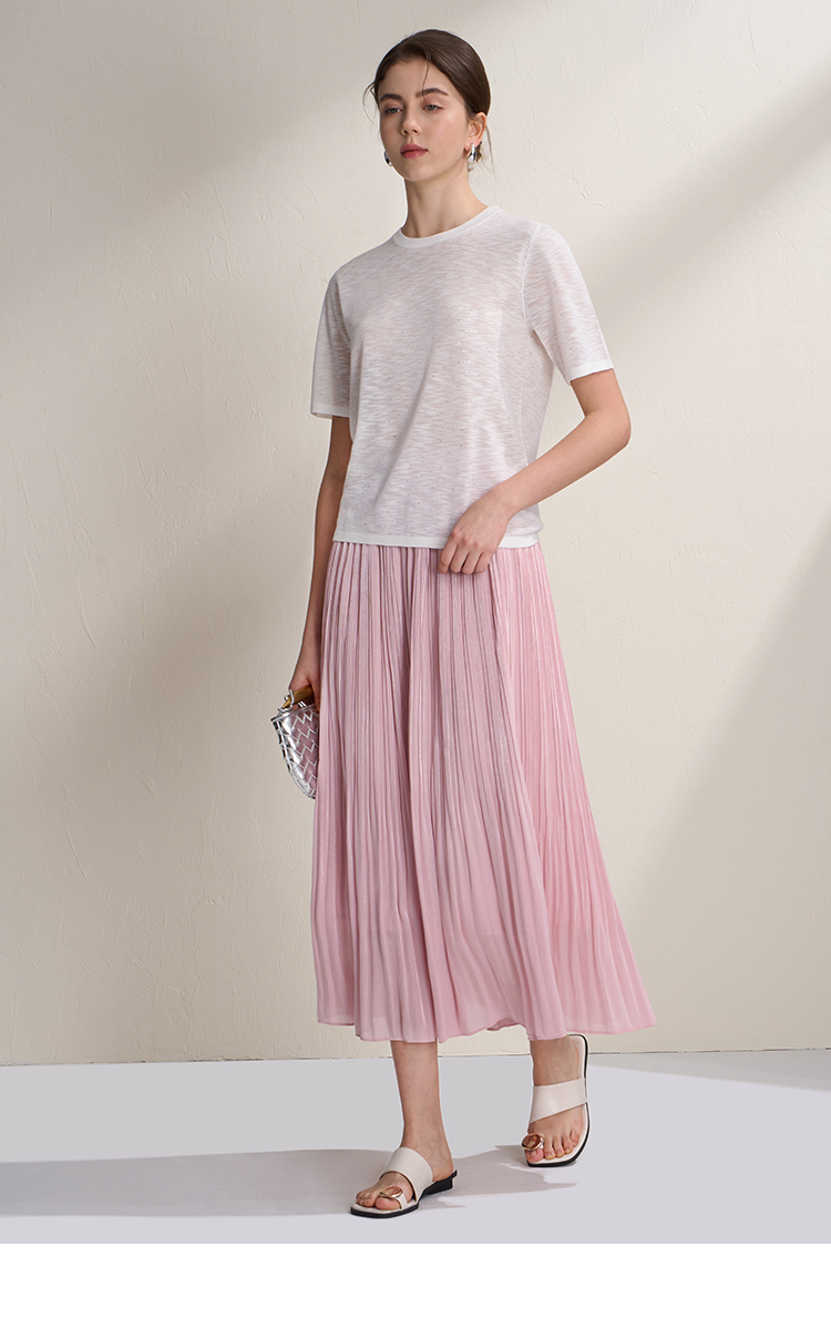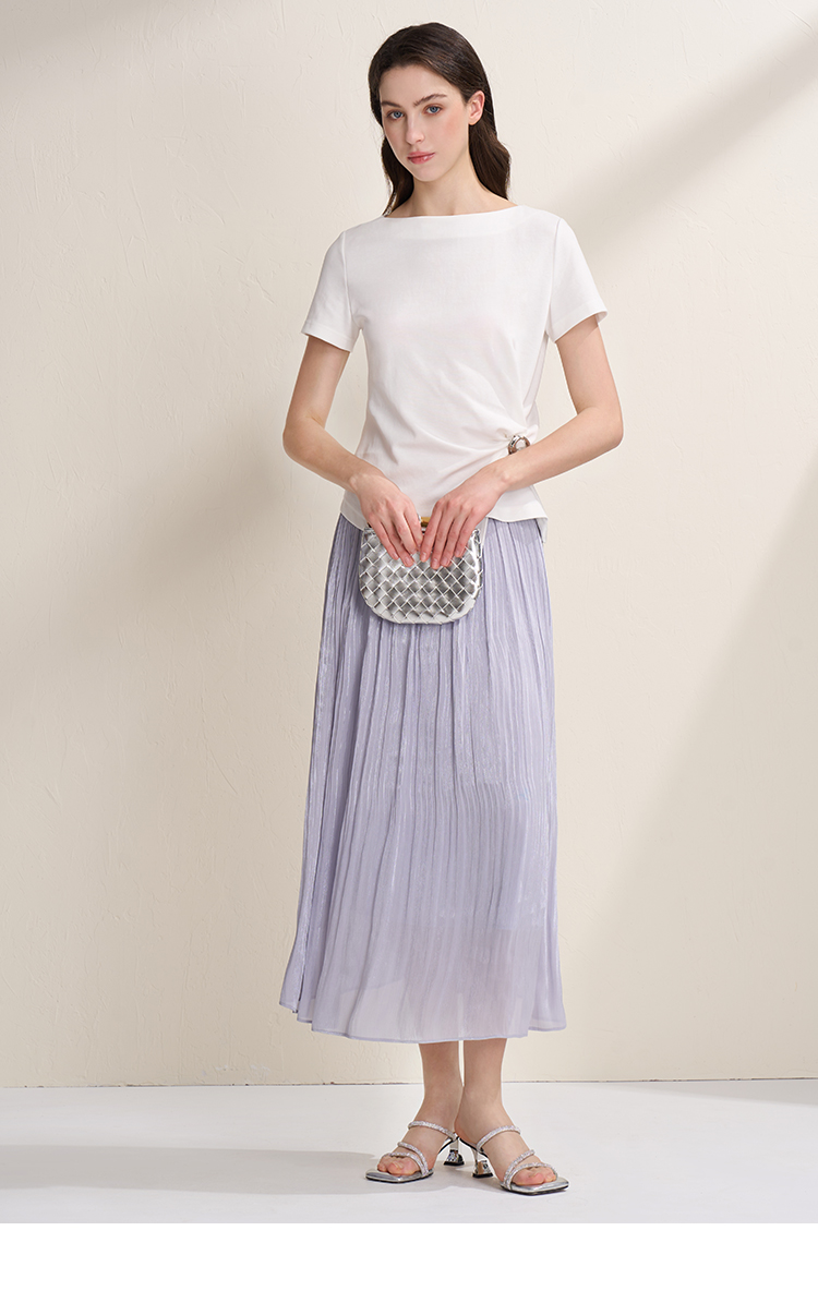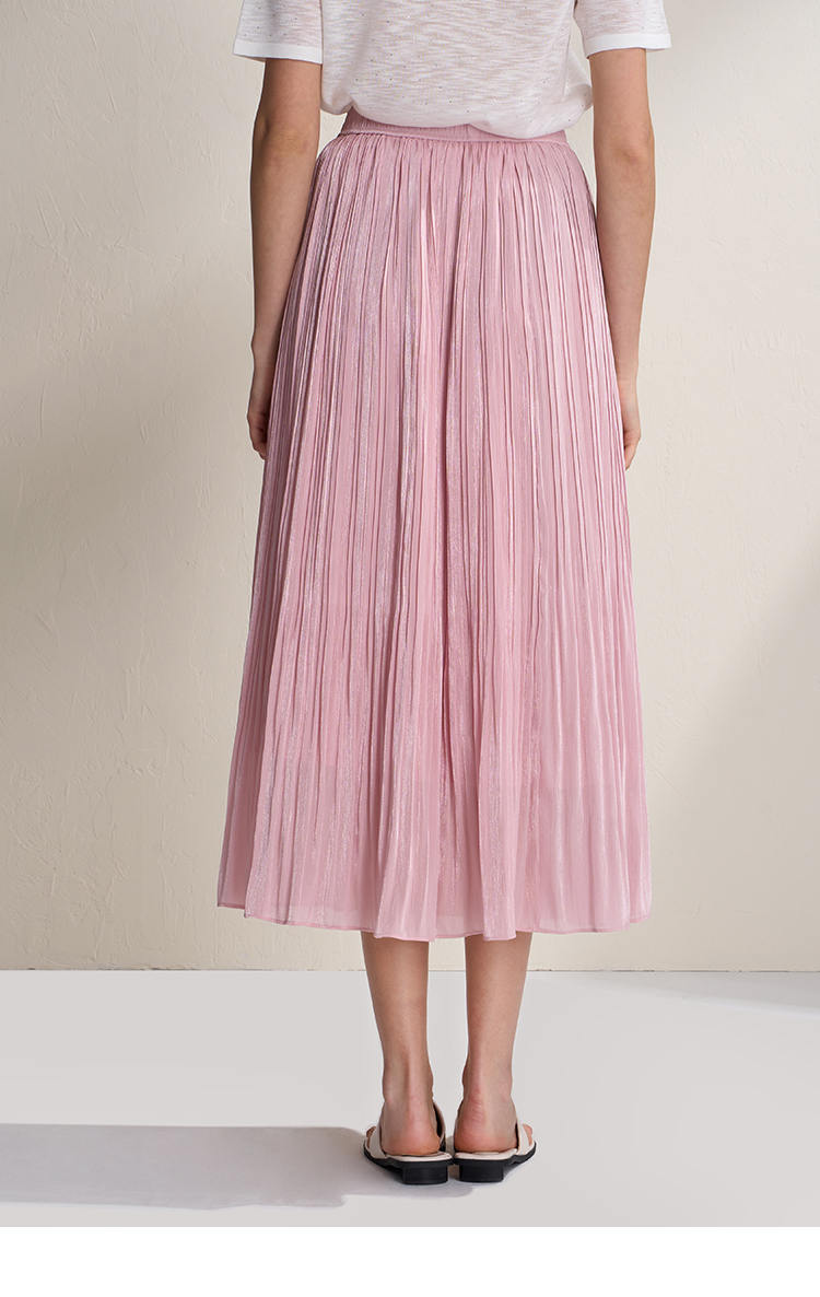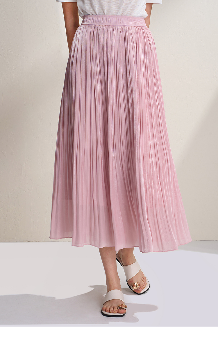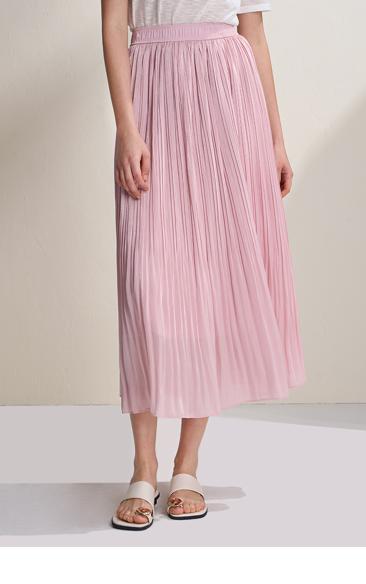 EITIE爱特爱垂坠飘逸流光纱裙A字压褶中长款半身裙2026夏季新款B2606218