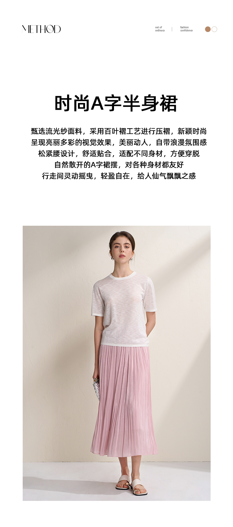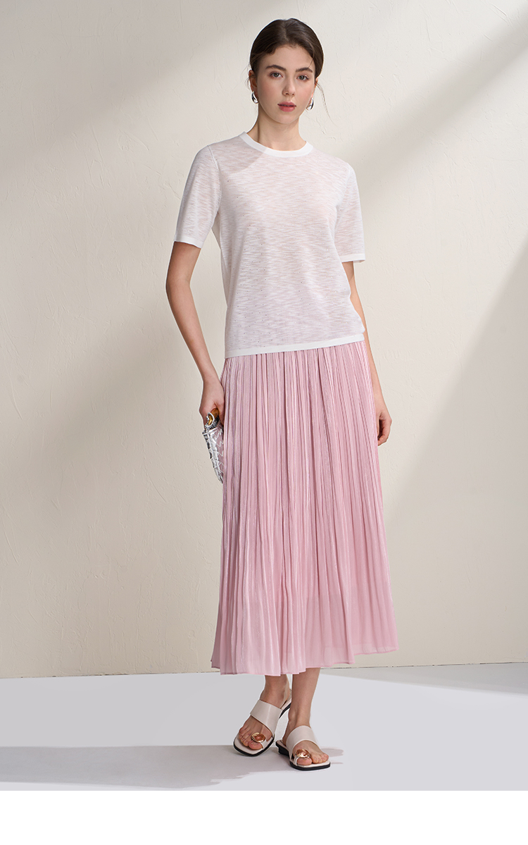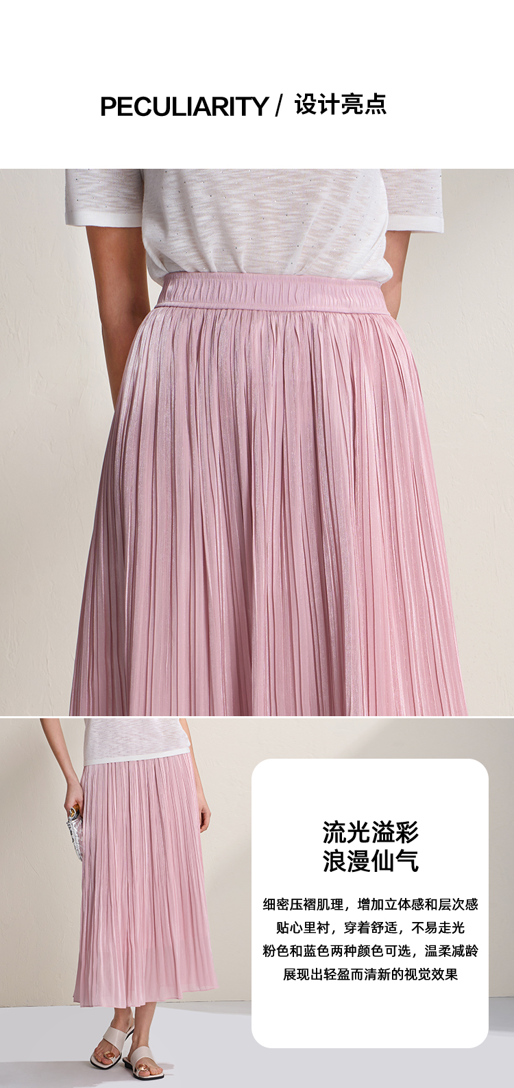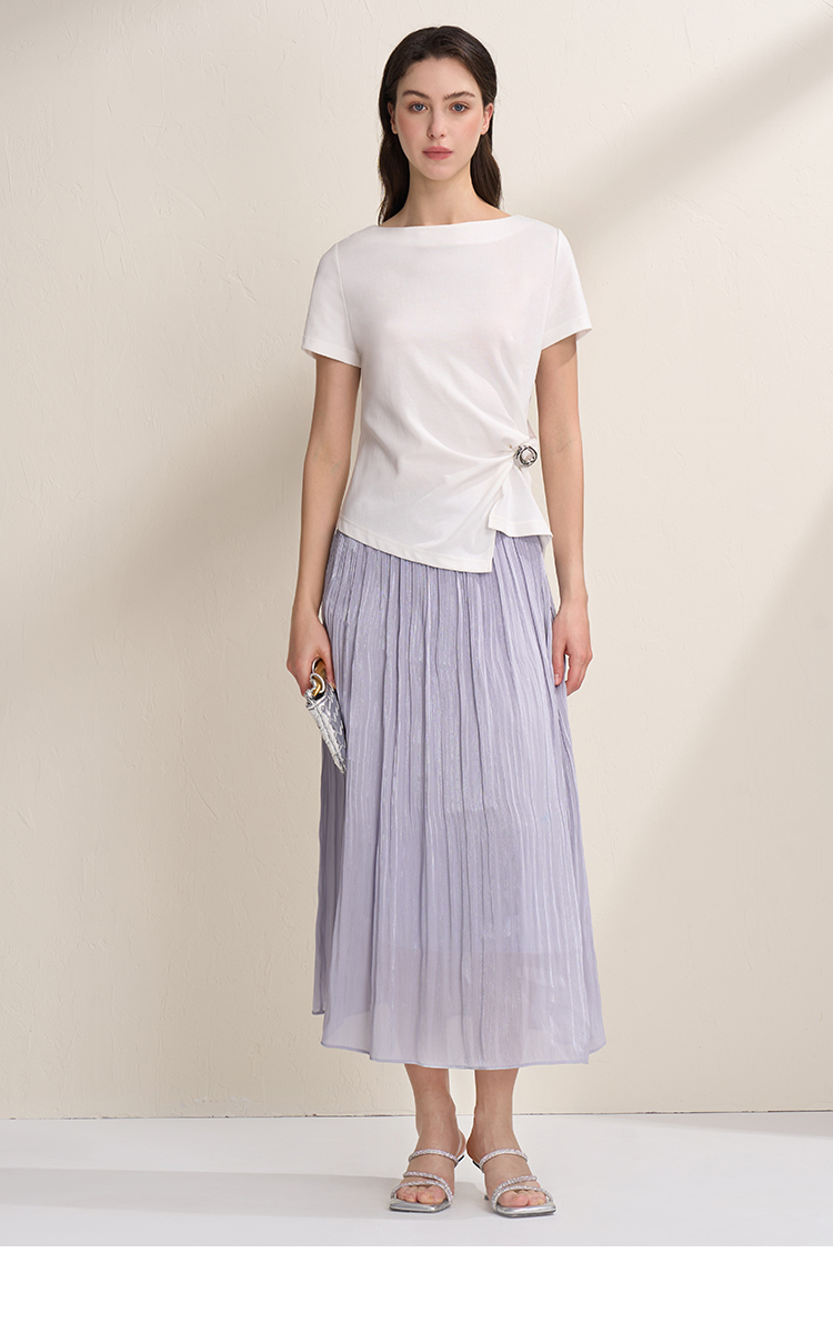 EITIE爱特爱垂坠飘逸流光纱裙A字压褶中长款半身裙2026夏季新款B2606218