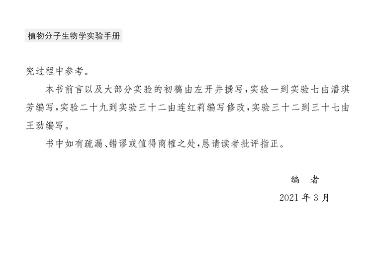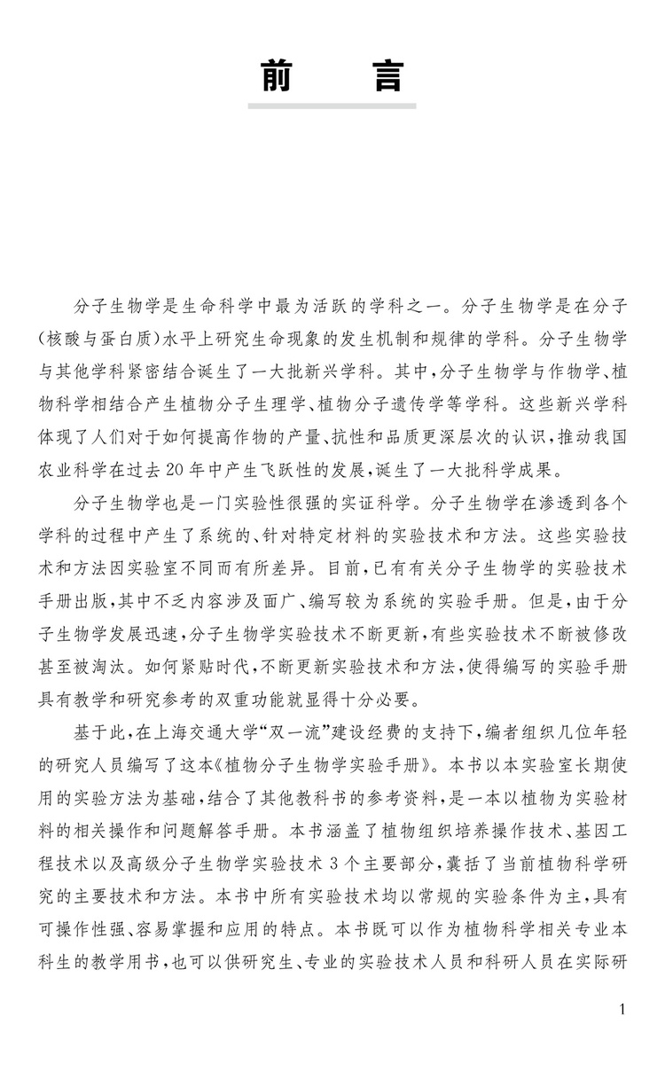 植物分子生物学实验手册 9787313240484 左开井 潘琪芳 连红莉 王劲