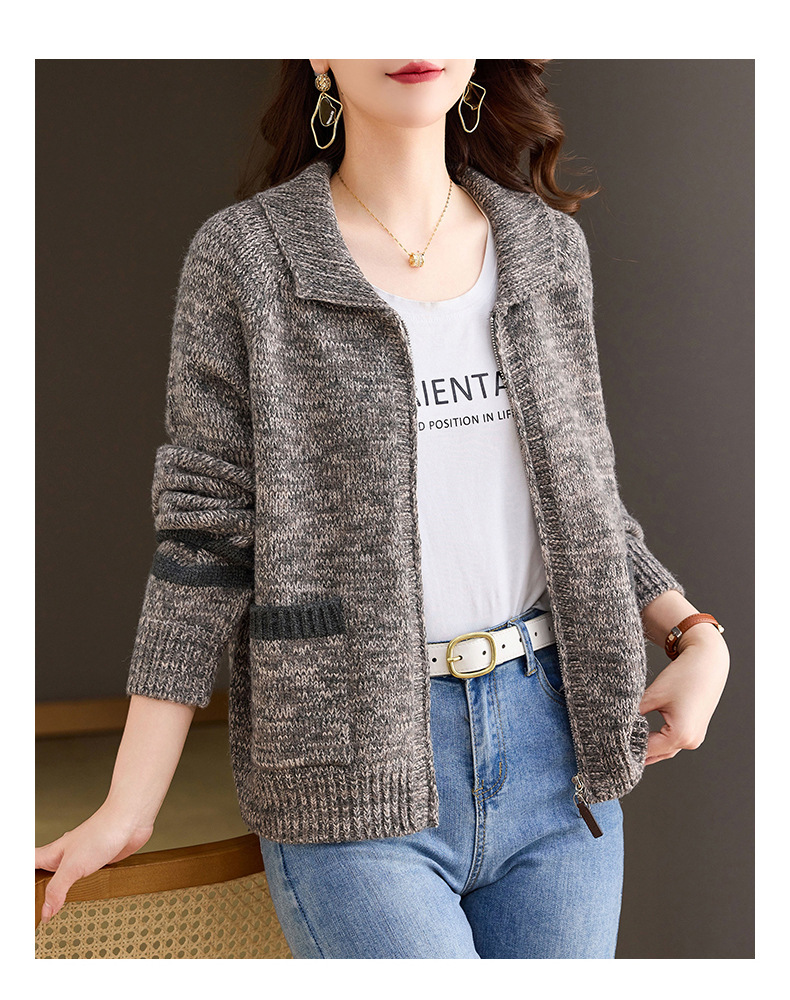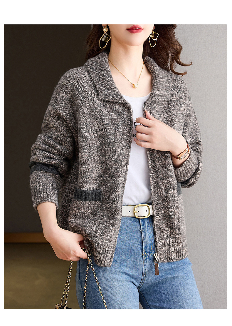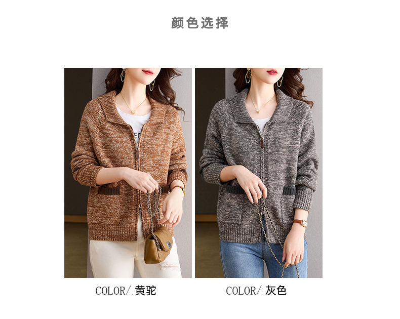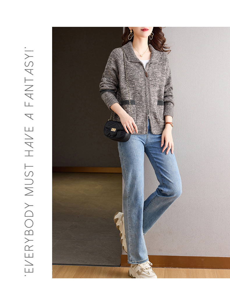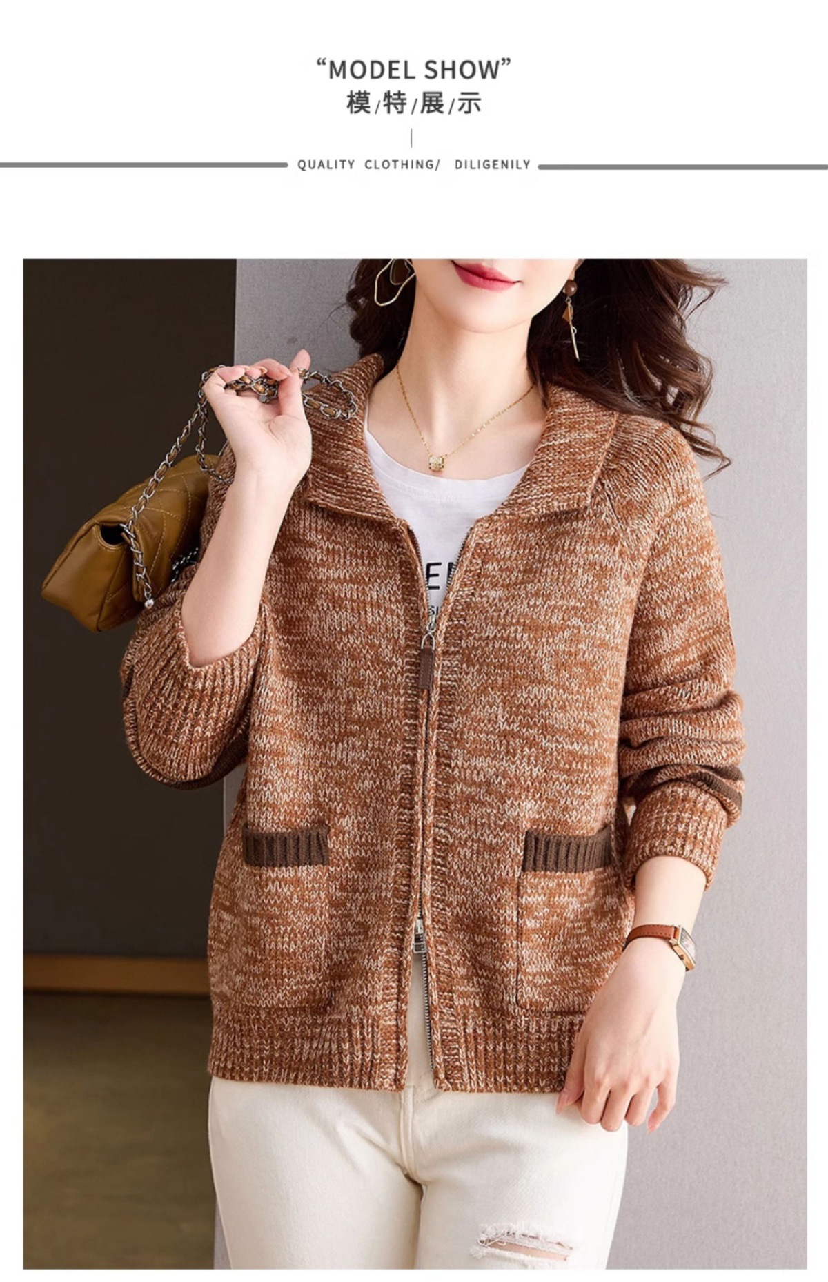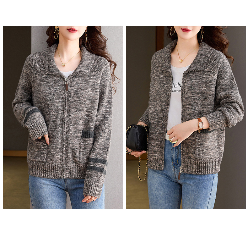 CC-26-8198翻领花线针织棒球服2024年秋季新款时髦拉链短款卫衣休闲毛衣外套