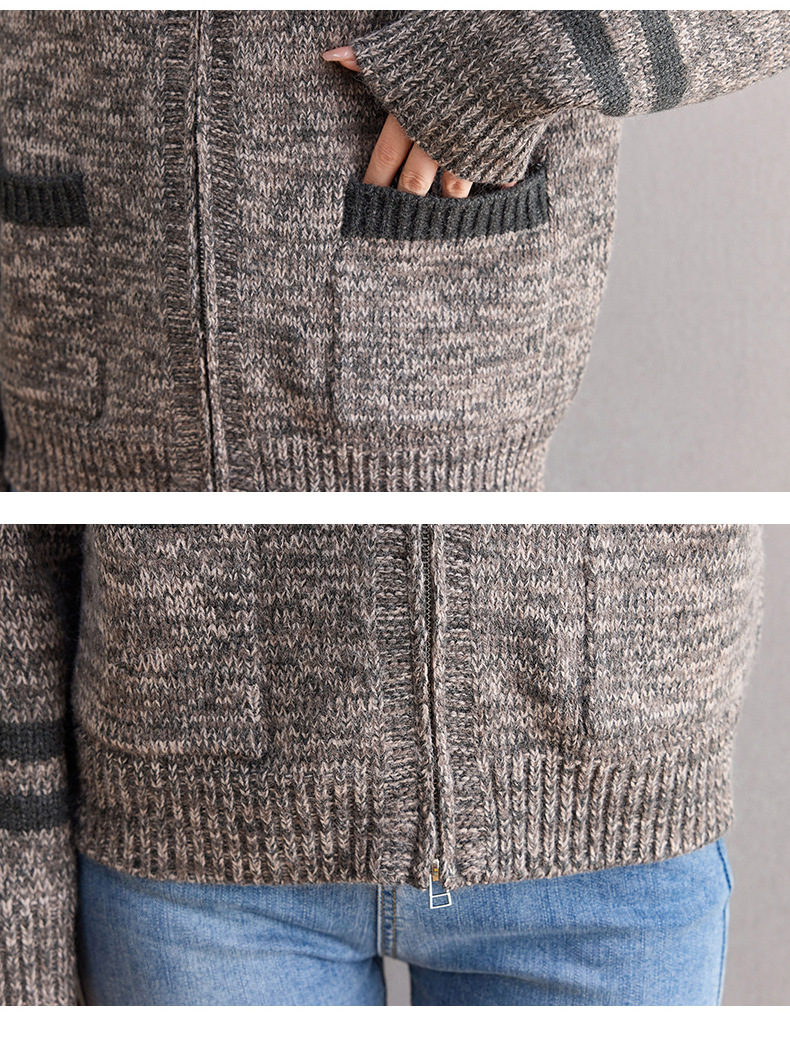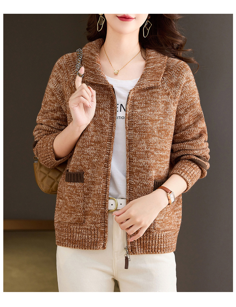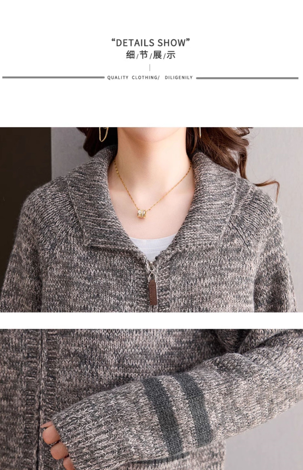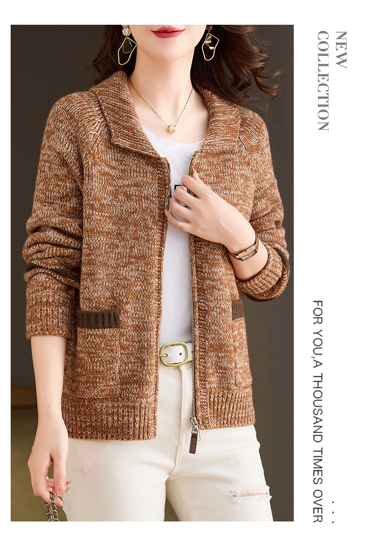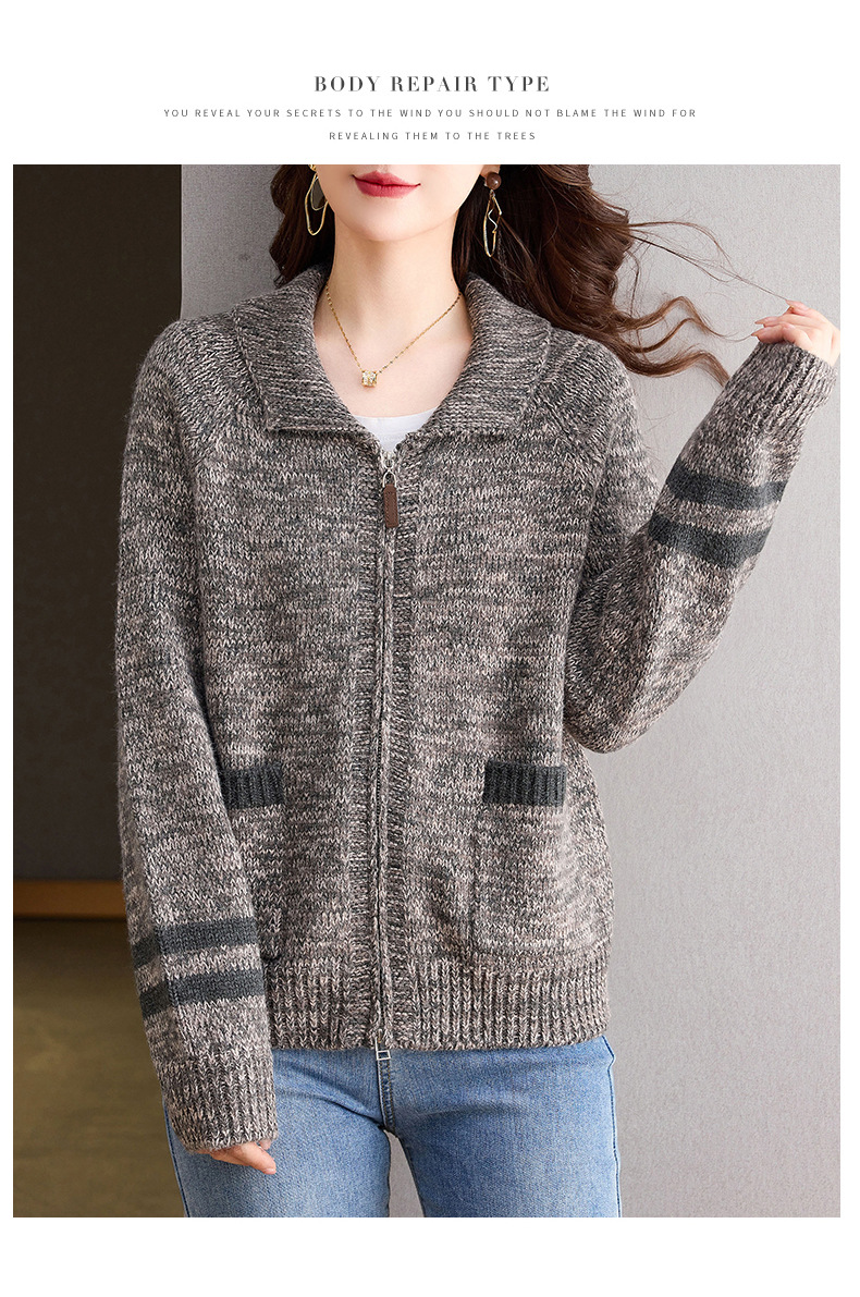 CC-26-8198翻领花线针织棒球服2024年秋季新款时髦拉链短款卫衣休闲毛衣外套