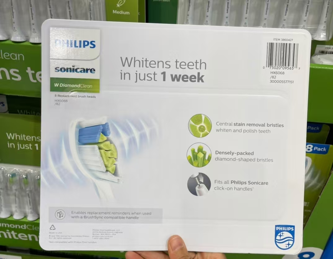 到手价299元 Philips飞利浦 电动牙刷替换刷头8支装 美国代购,无中文标签,介意慎拍