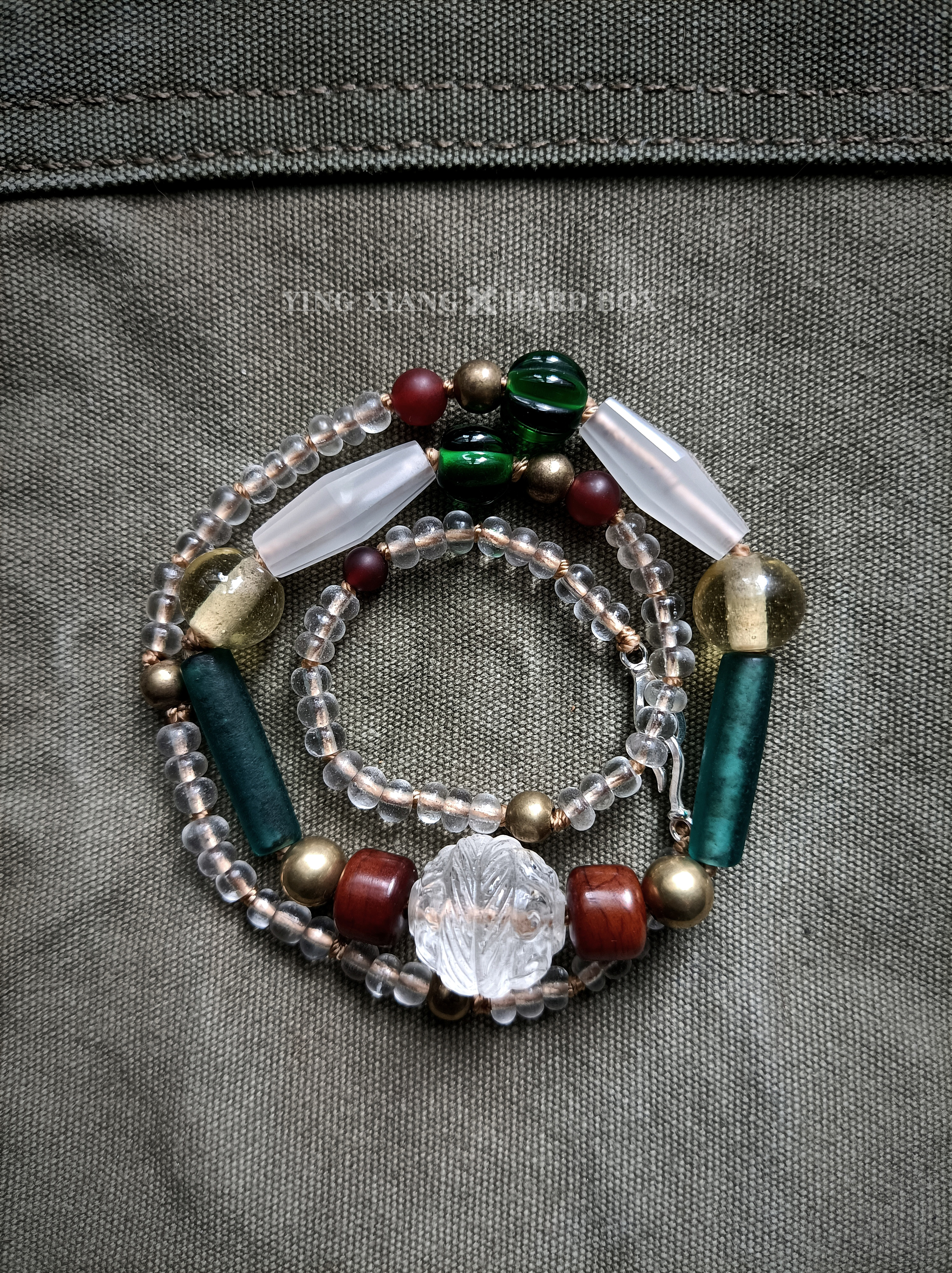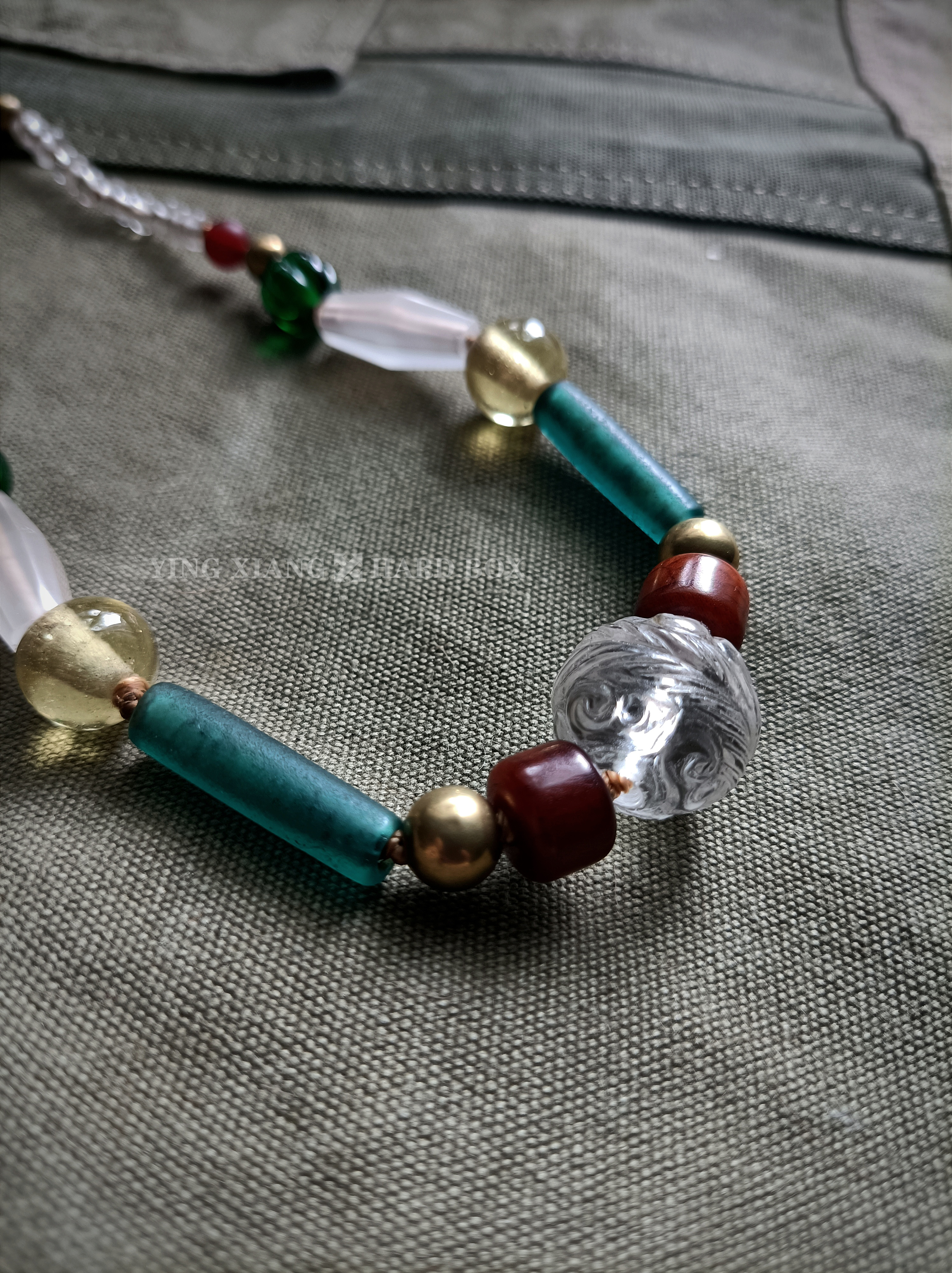 西亚老水晶回纹珠(直径1.7CM) 老琉璃珠+管 老铜珠 西亚老玛瑙珠 老牛骨扁珠 925银连接扣