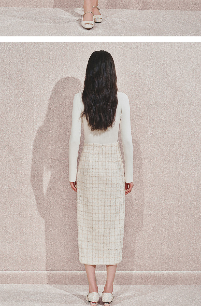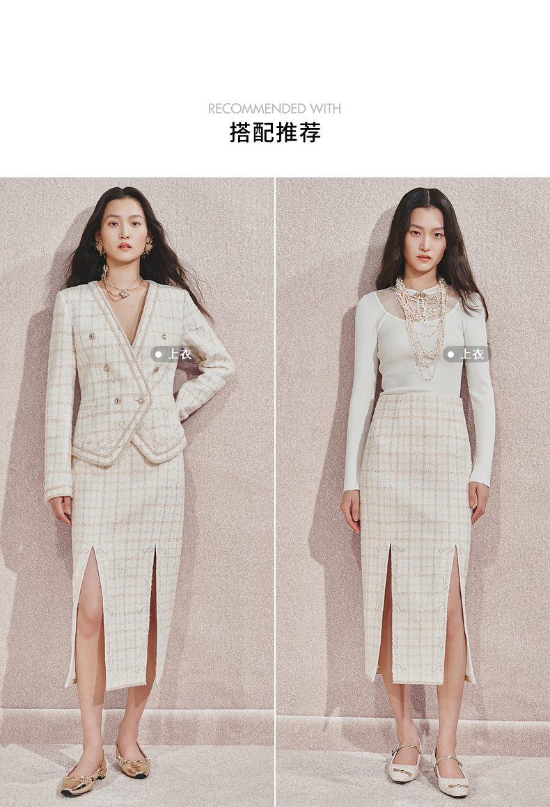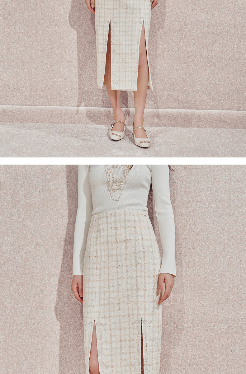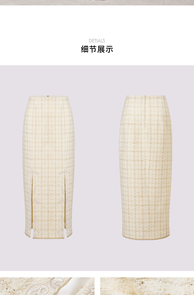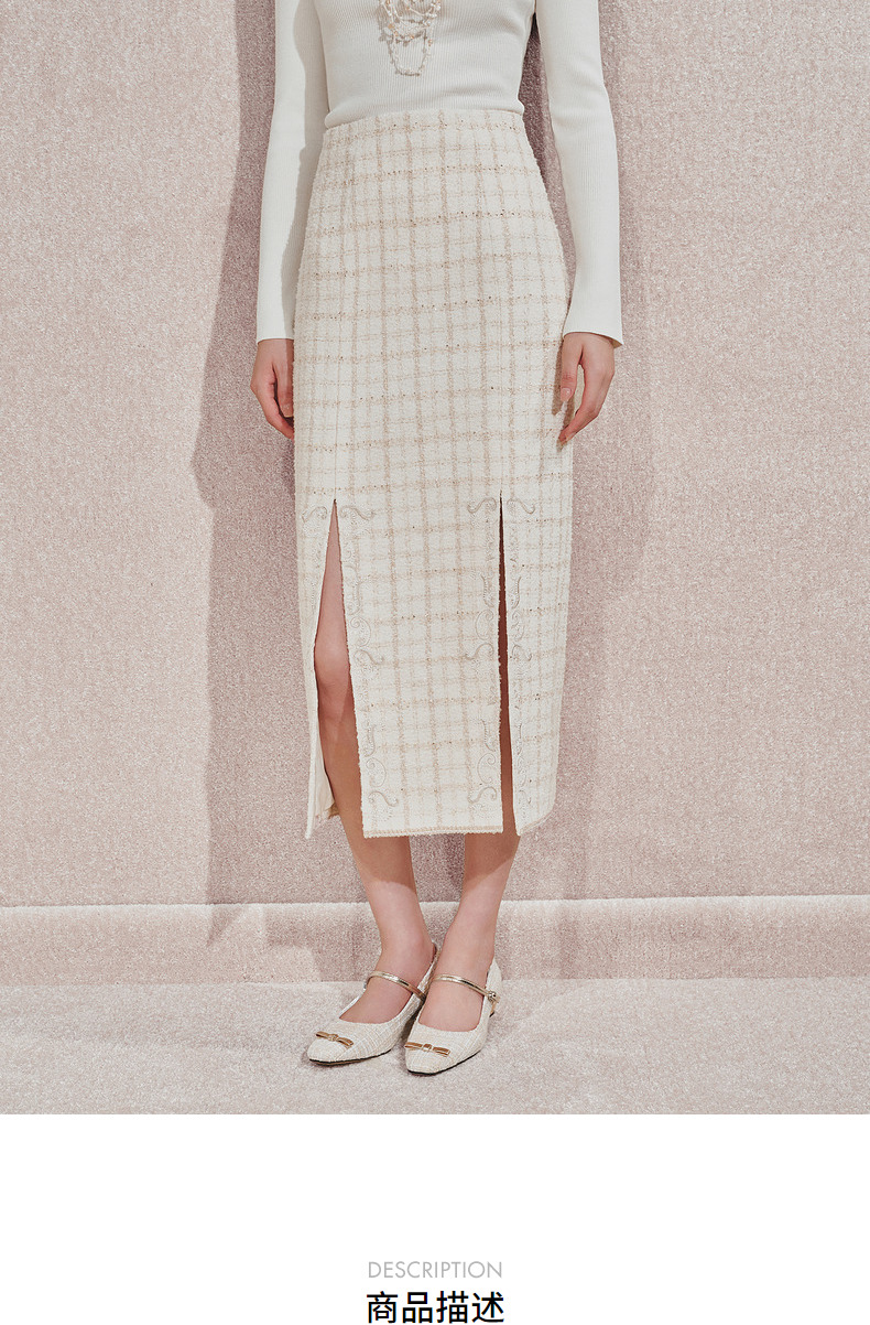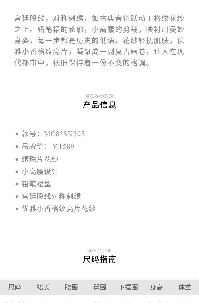 玛克门店发货:MAXRIENY宫廷刺绣双开衩铅笔裙(货号:MC85SK505)