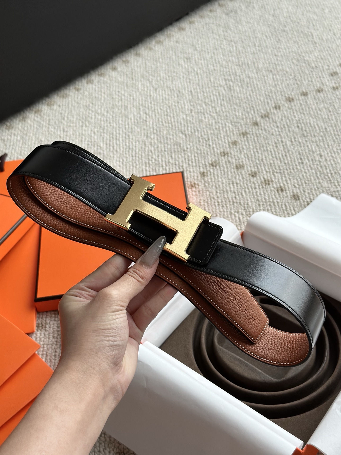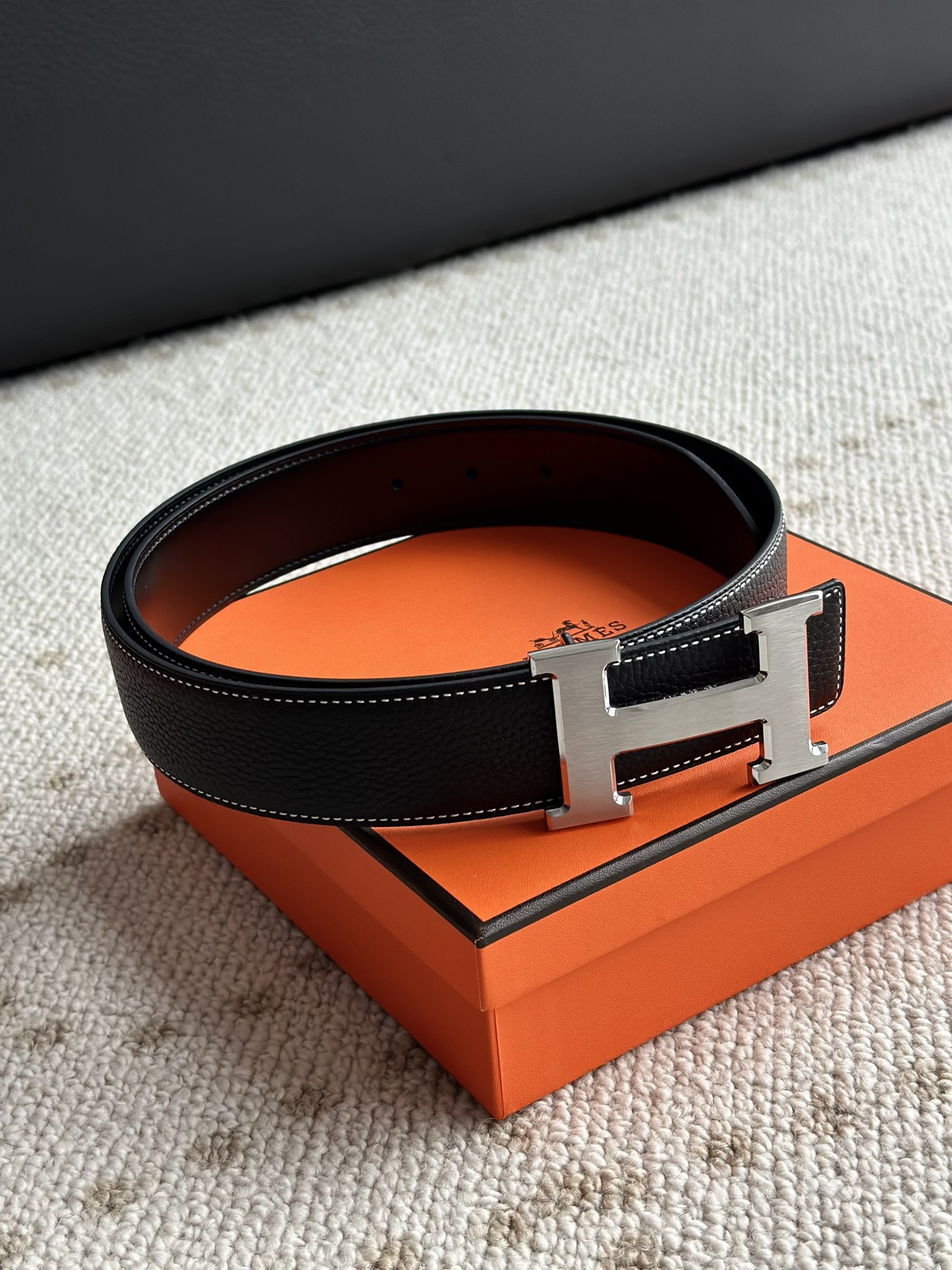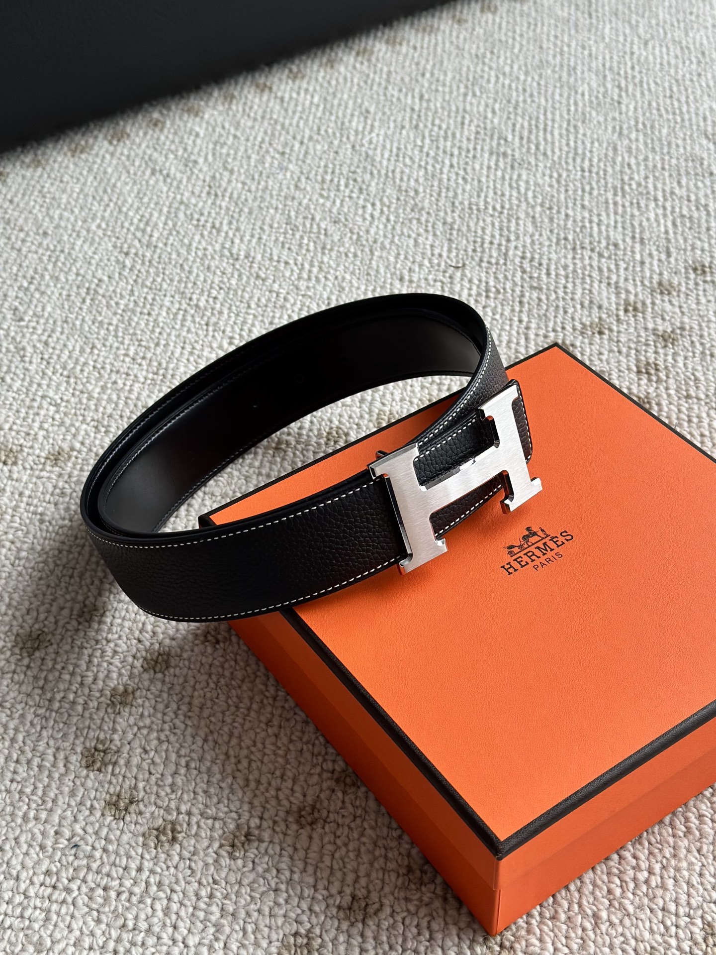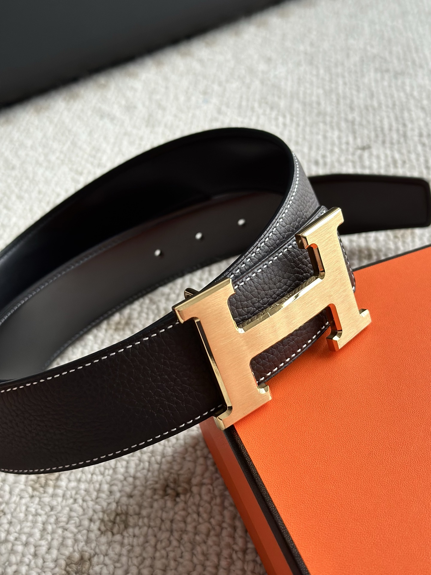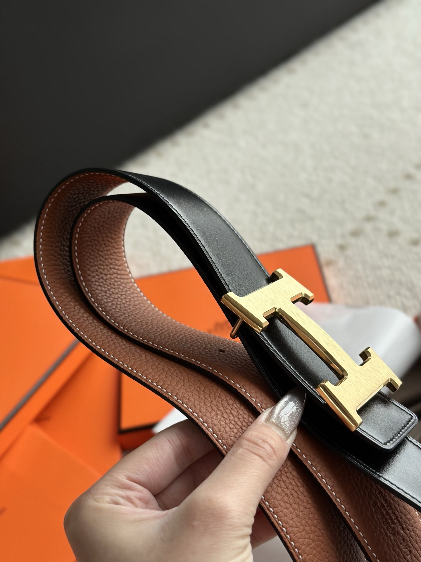 经典男士腰带 38MM!贸易出口的小整批单! 独家❗️ 父亲节的专属礼物,3.8cm双面牛皮腰带 搭配原厂Evercolor皮,宽度38MM,非常有标志性的一款的男款皮带,扣头可转换,一面皮纹休闲,一面纯黑商务,一条皮带你得到两个颜色!为家里男士们准备的,来自最有品位的H皮带,全部都是原包装,包括手提袋,布袋,内里卡片,说明书等,和从柜子里拎出来的几乎没有差异化!