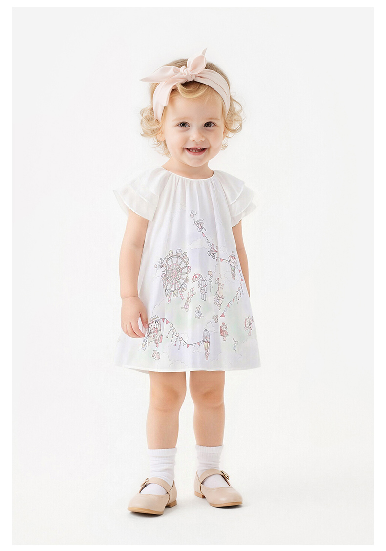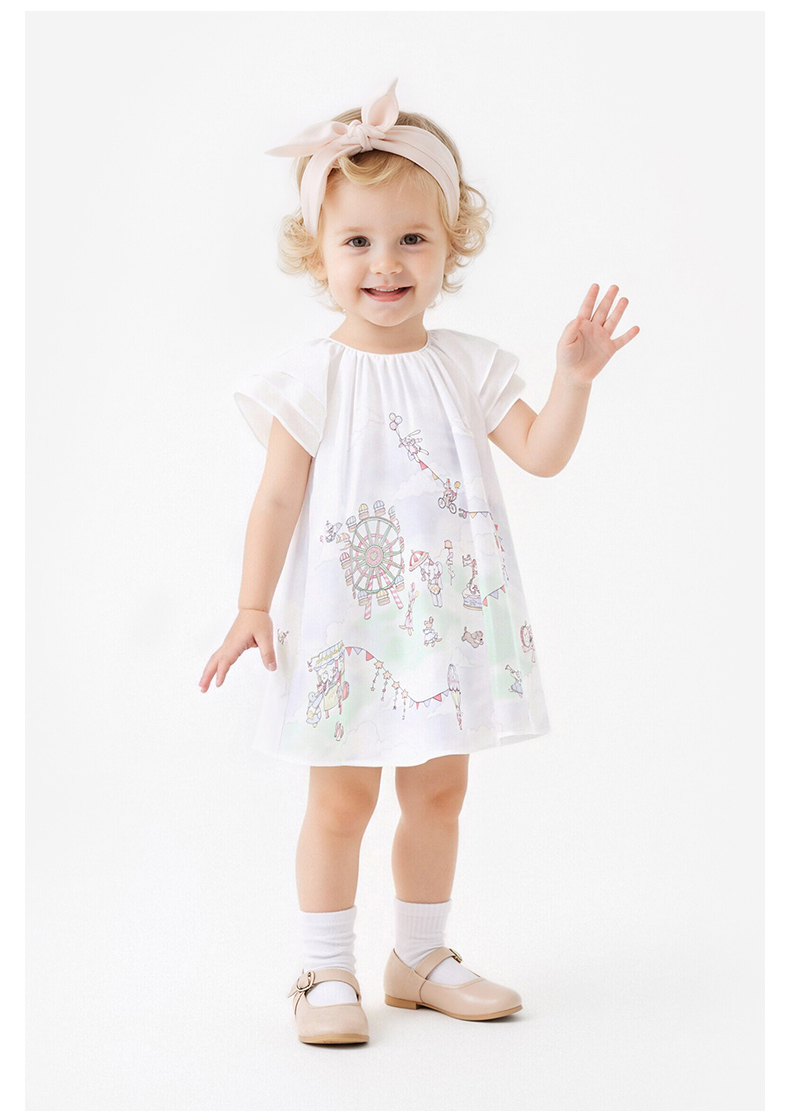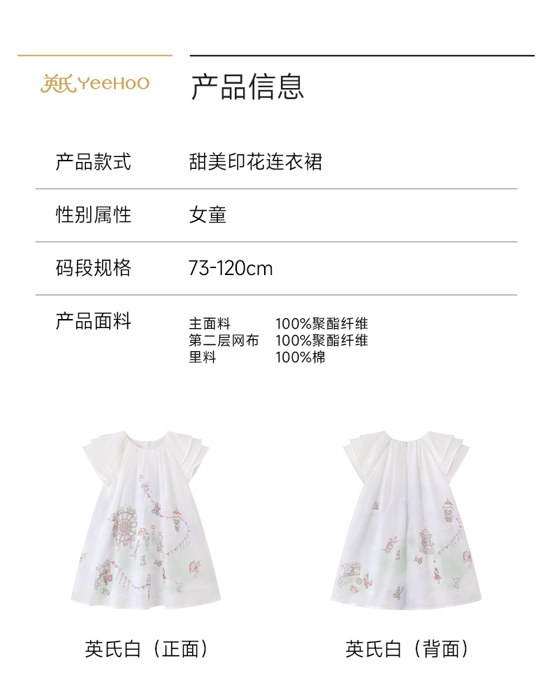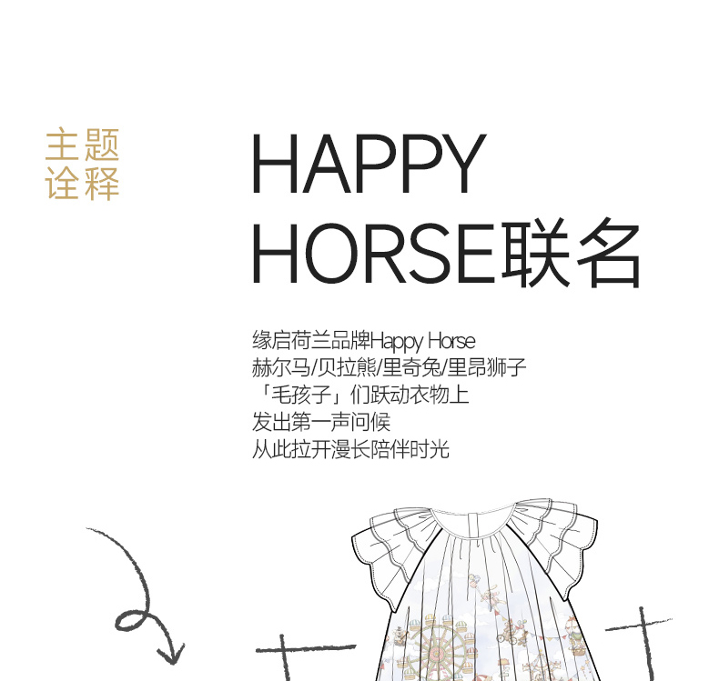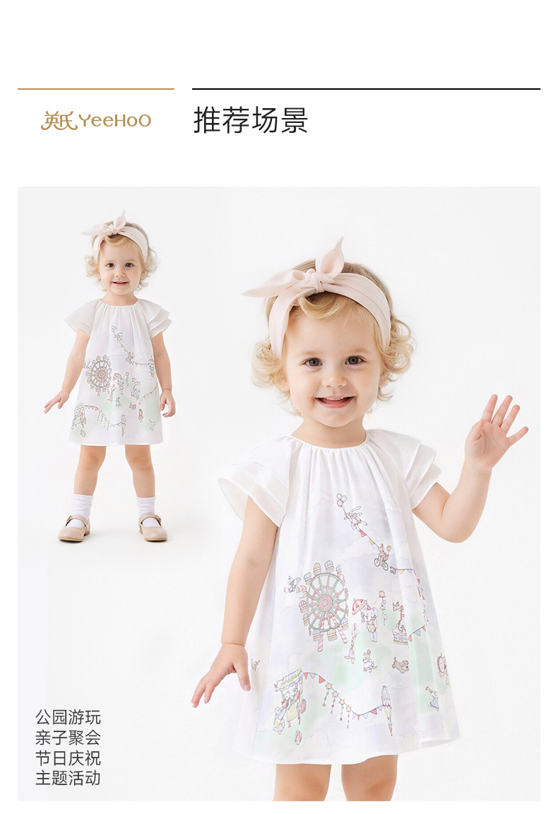 【联名款】英氏&Happy Horse儿童连衣裙夏季女童飞袖小白裙