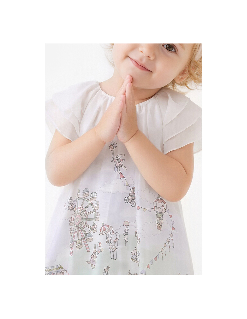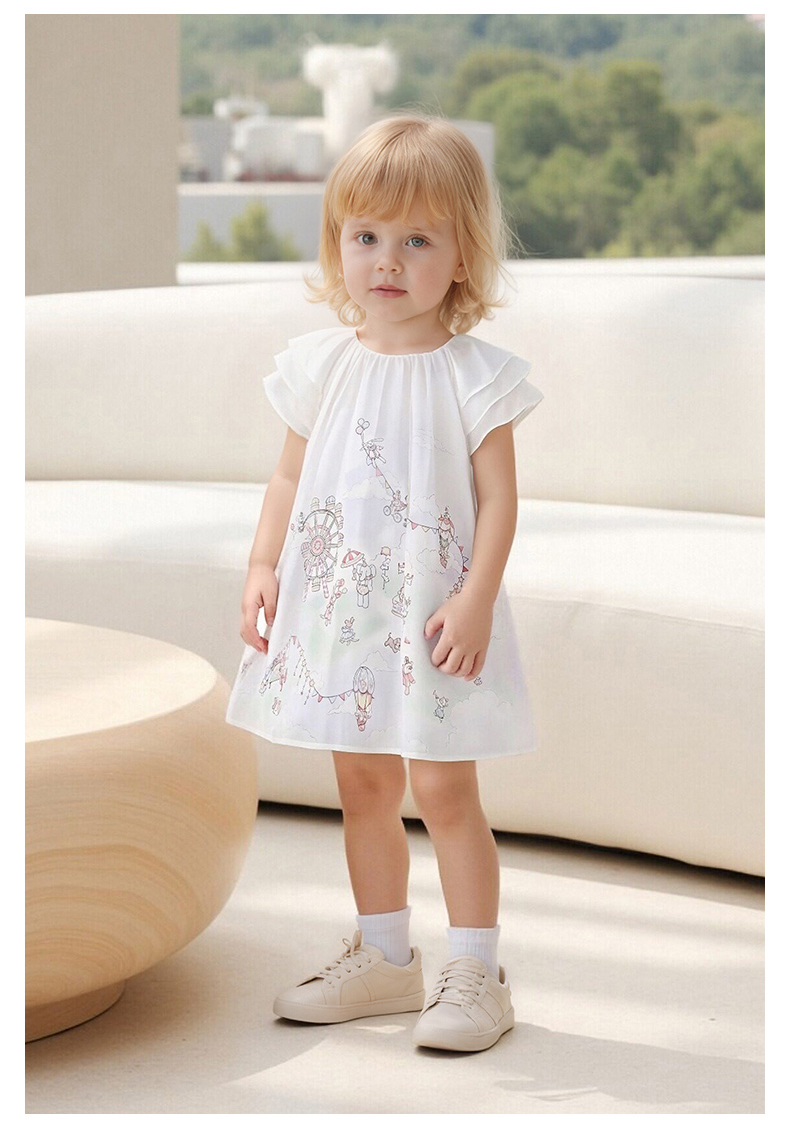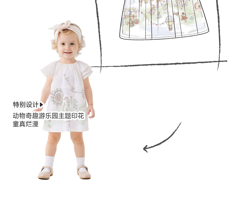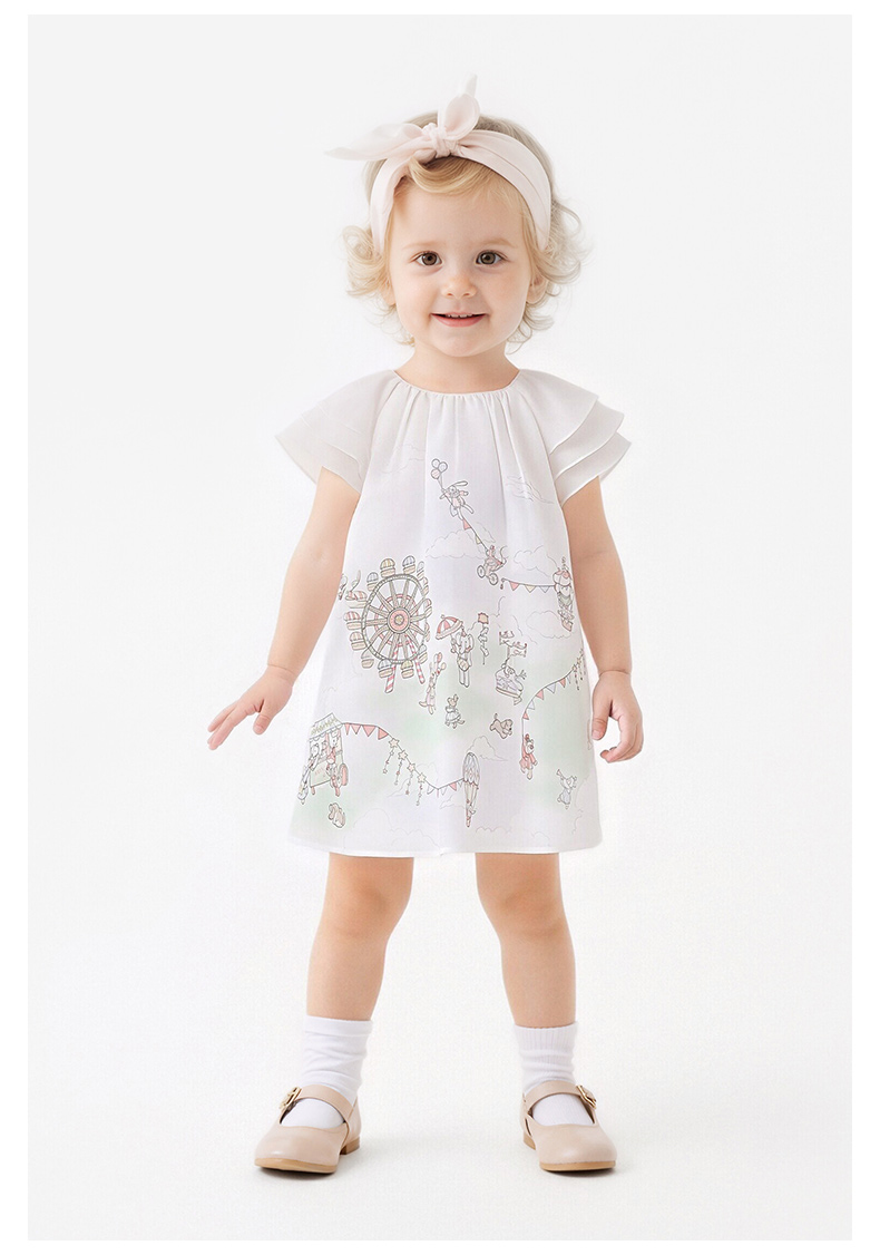 【联名款】英氏&Happy Horse儿童连衣裙夏季女童飞袖小白裙