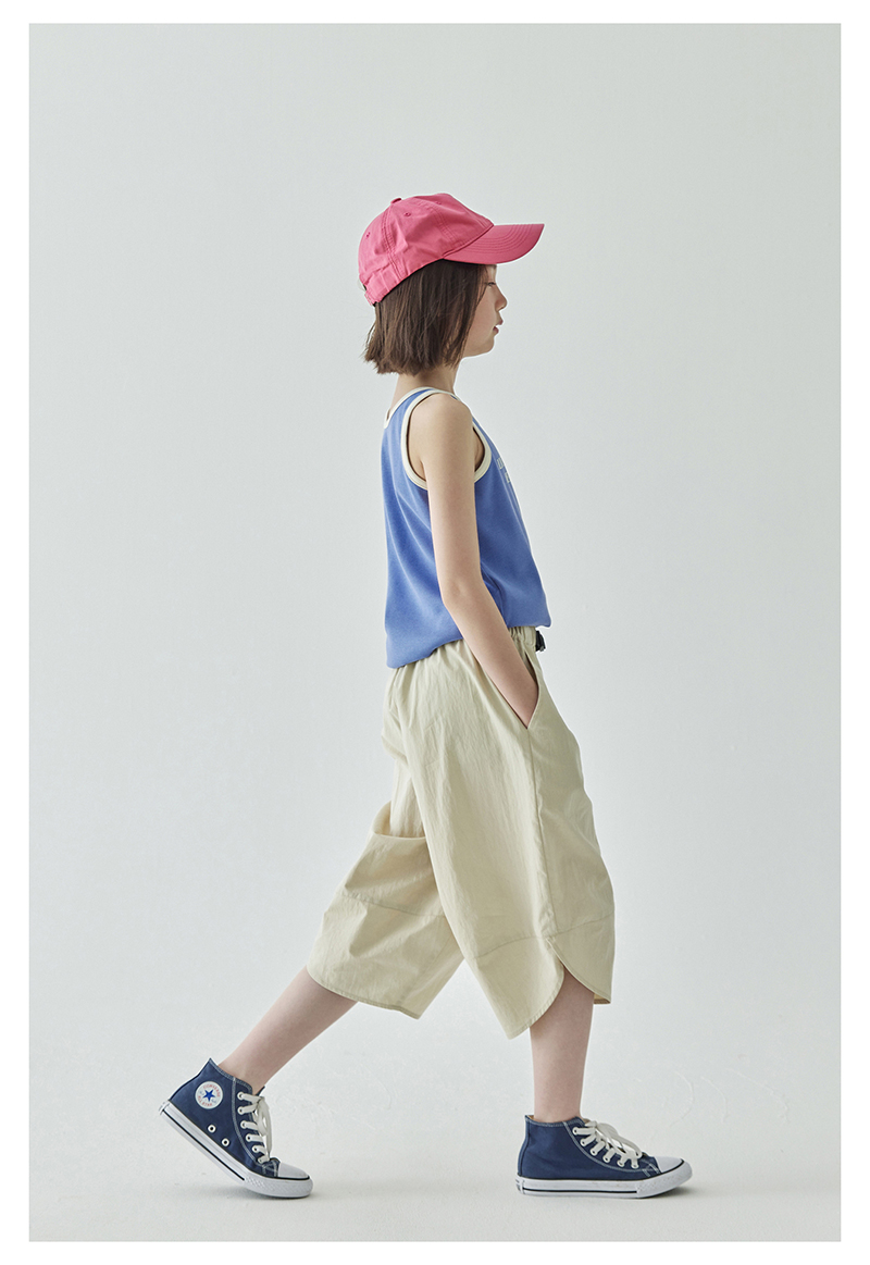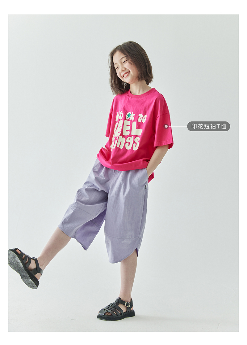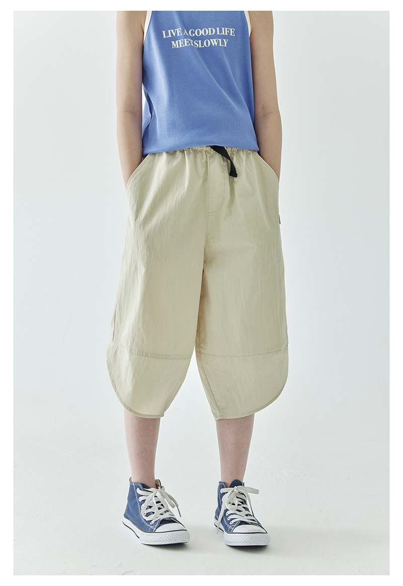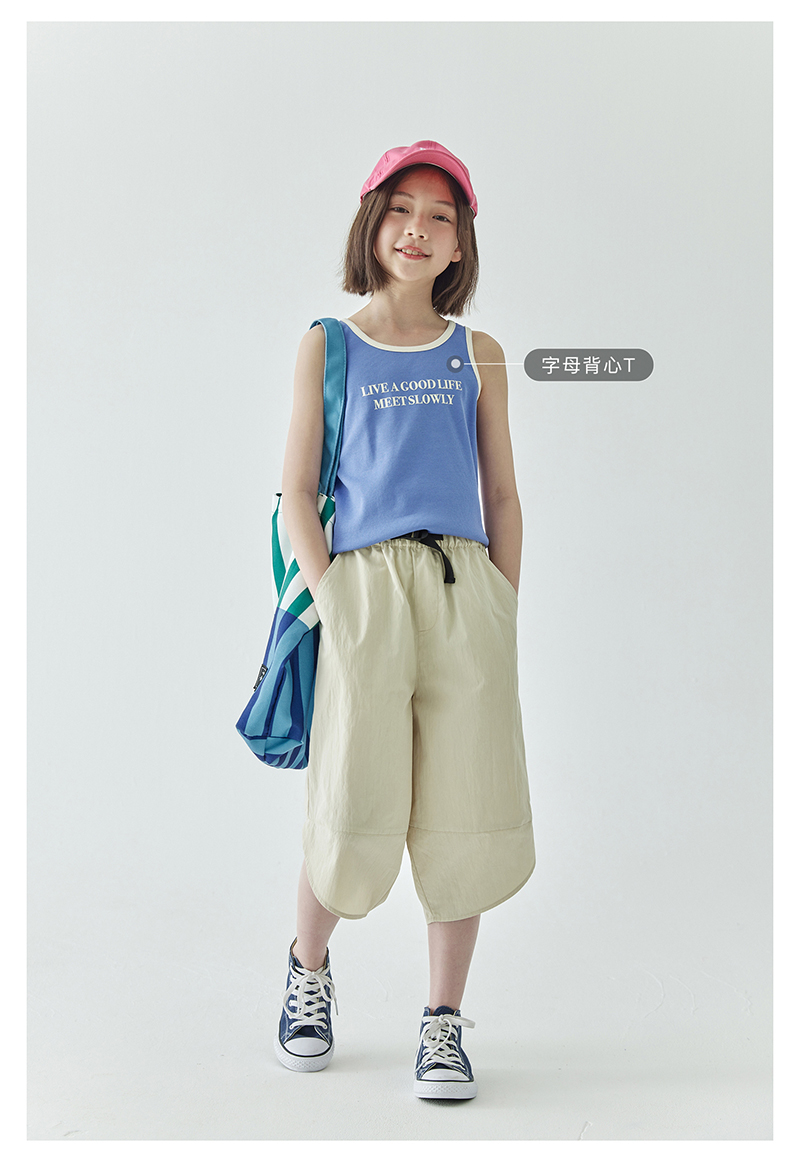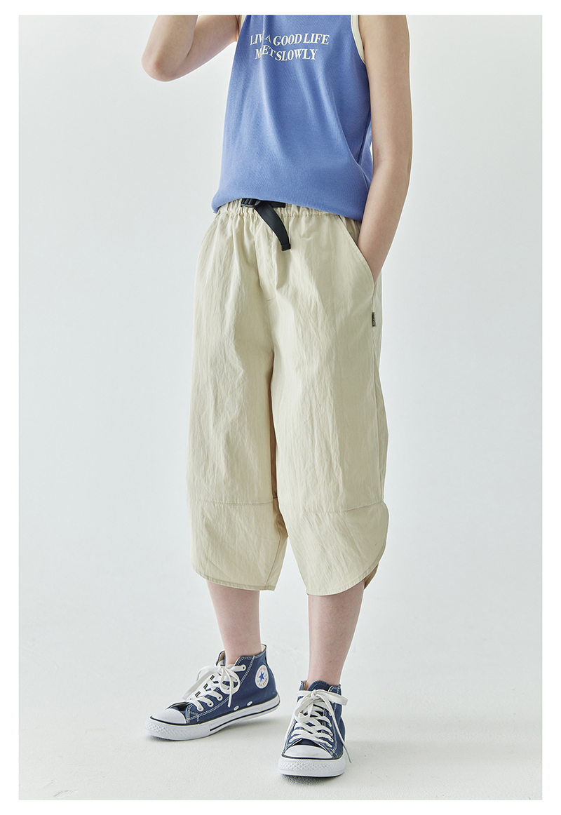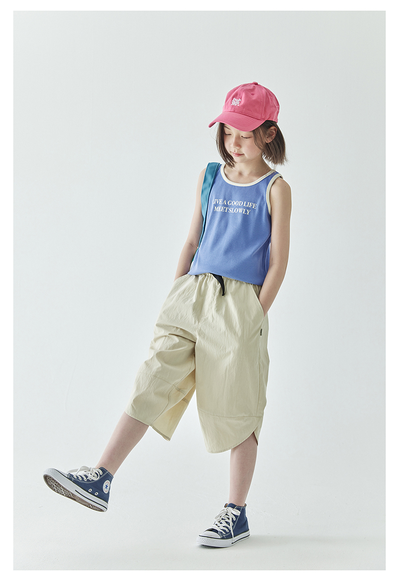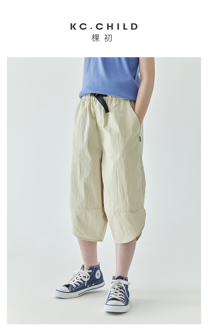 棵初夏季新款女童轻薄休闲工装裤中大童纯色透气七分阔腿短裤