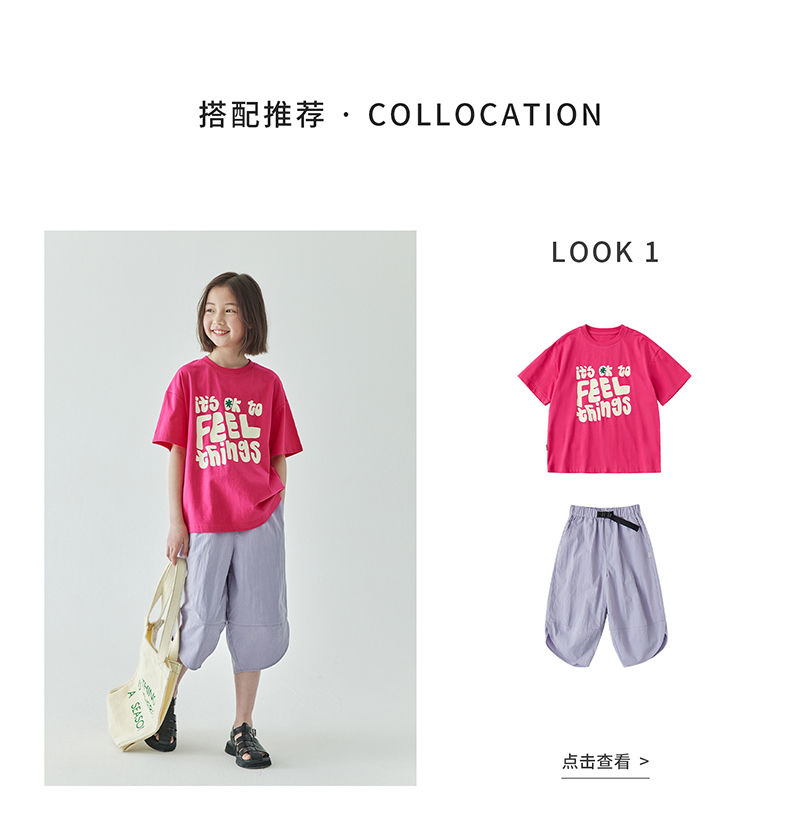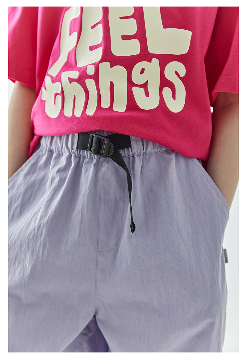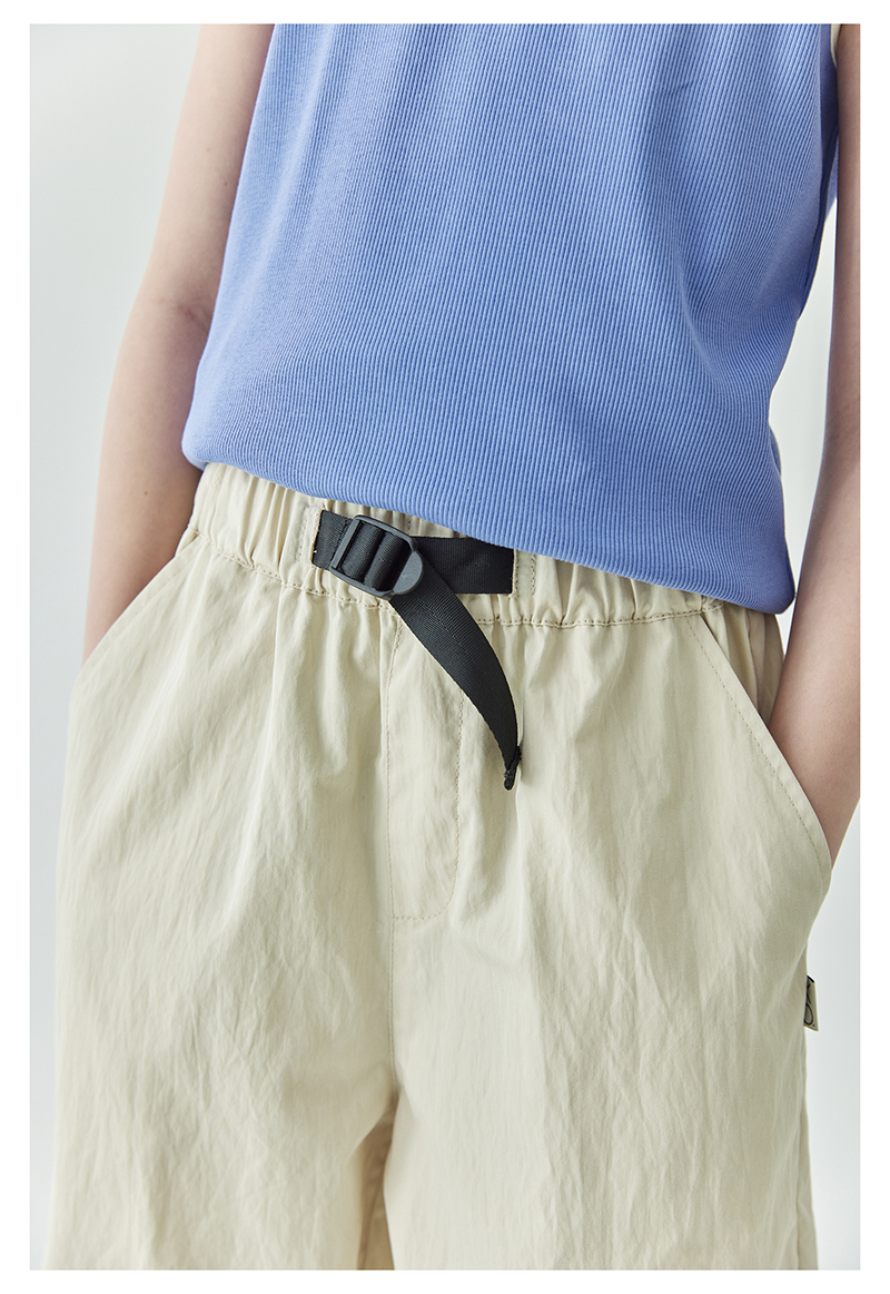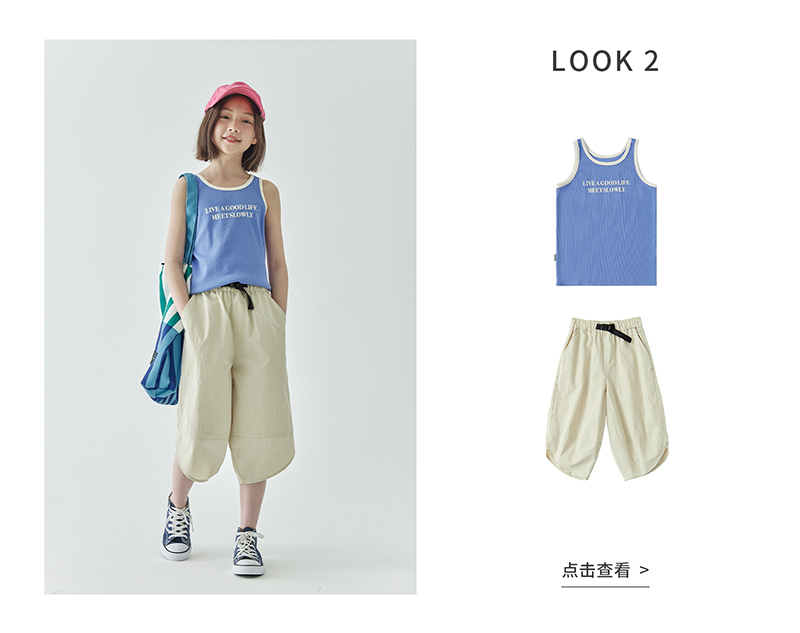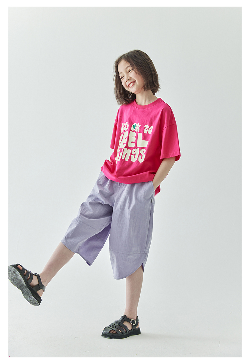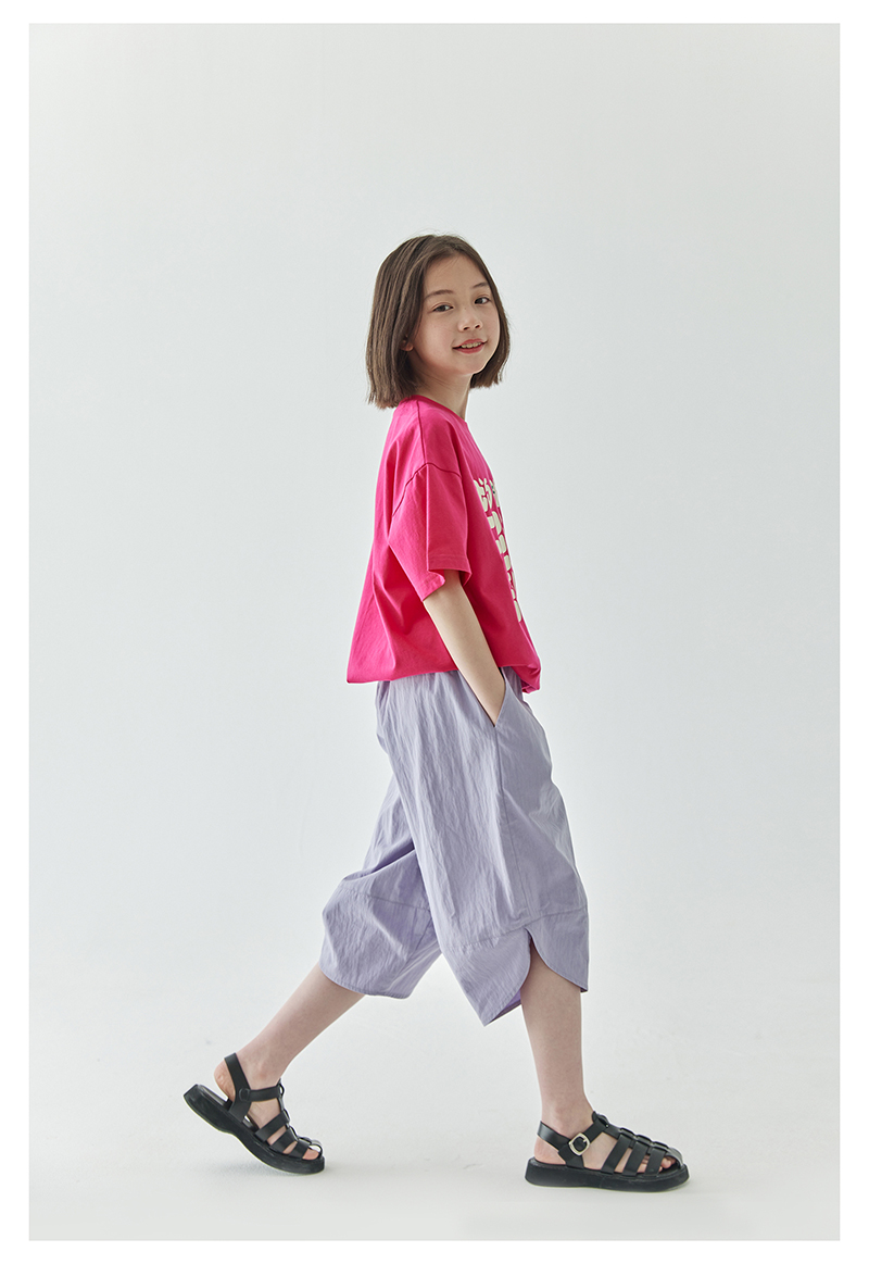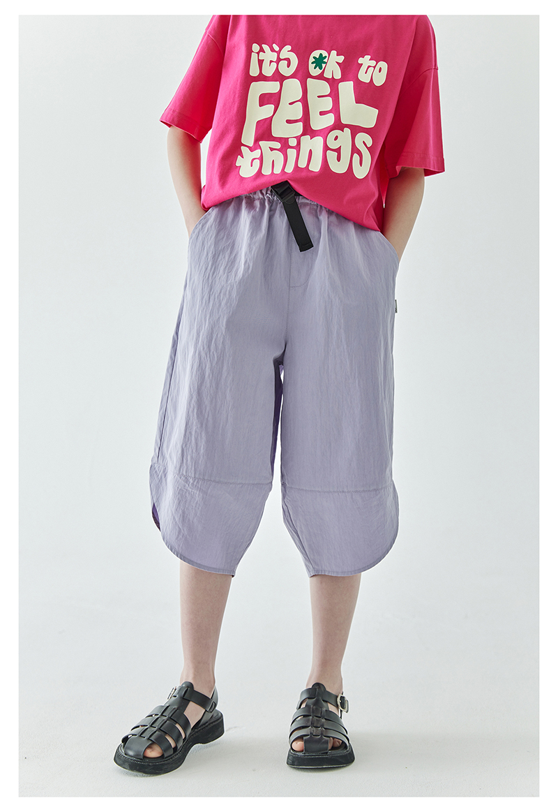 棵初夏季新款女童轻薄休闲工装裤中大童纯色透气七分阔腿短裤