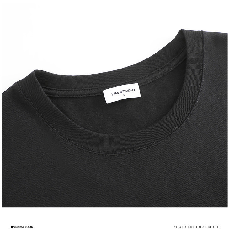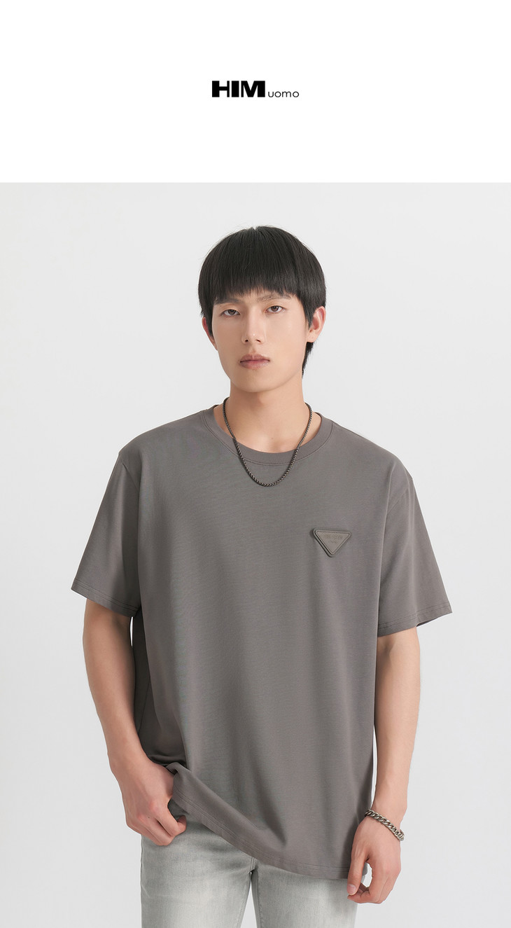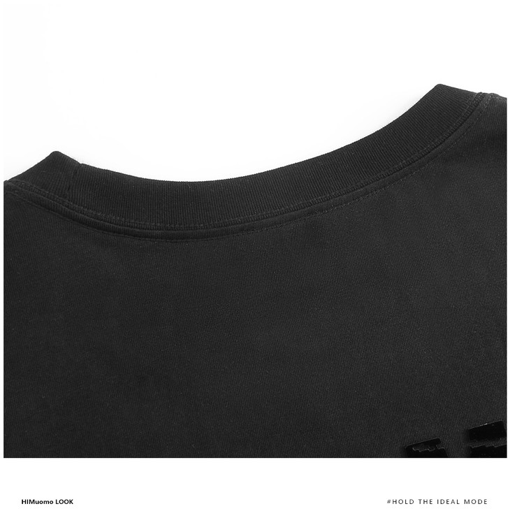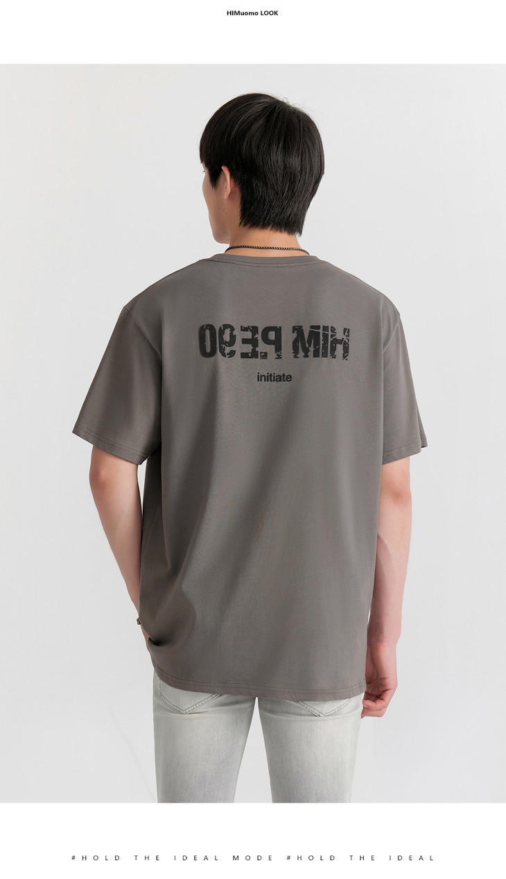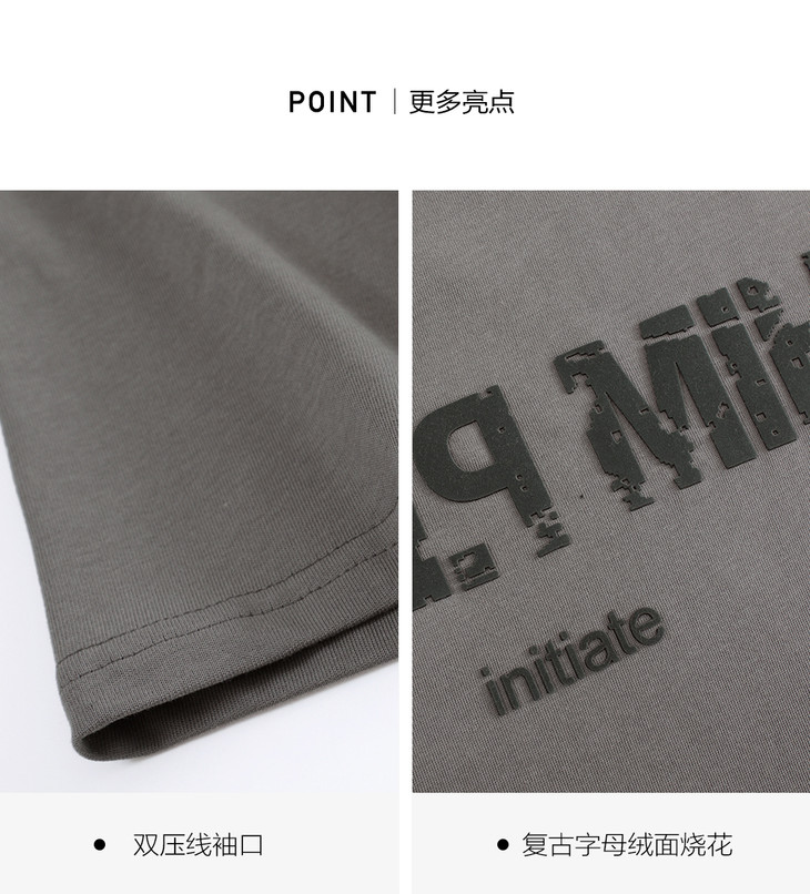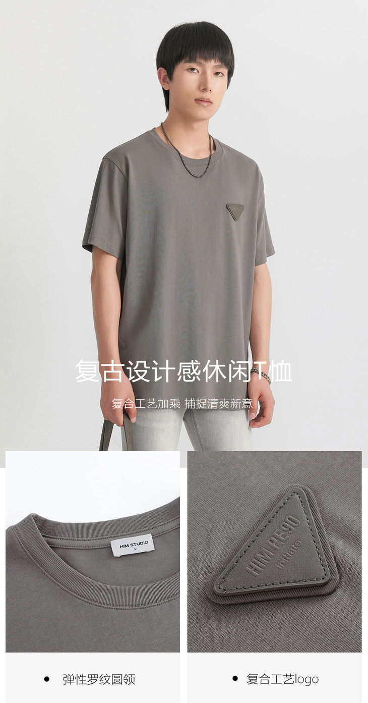 HIM漢崇 休闲弹性圆领T恤男士复古字母绒面烧花短袖上衣 2025夏季