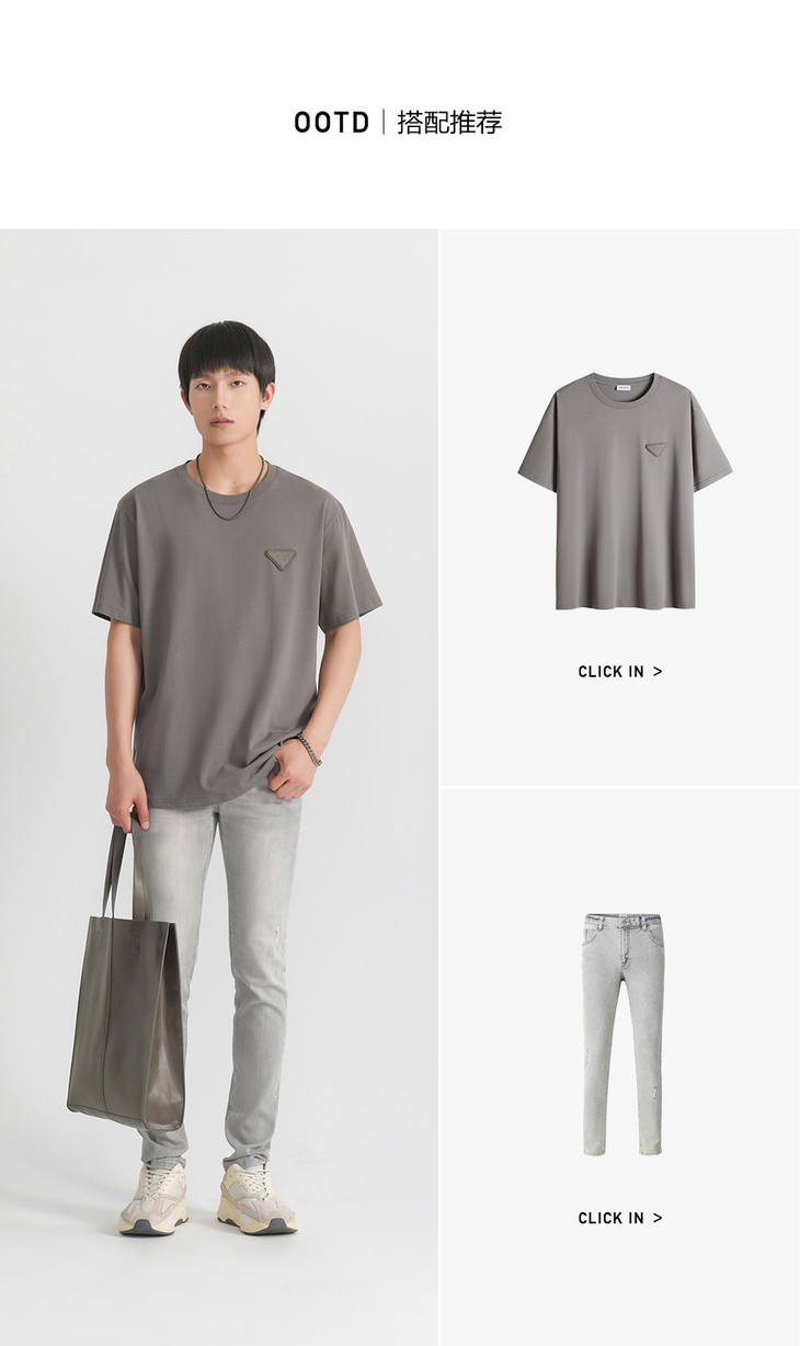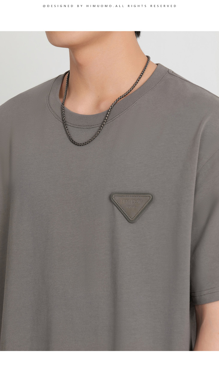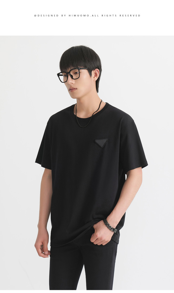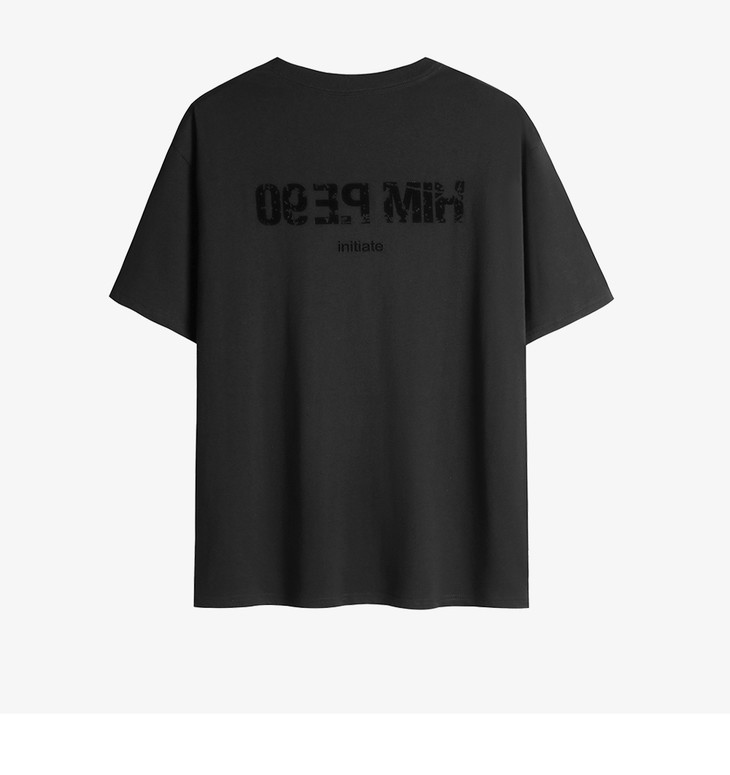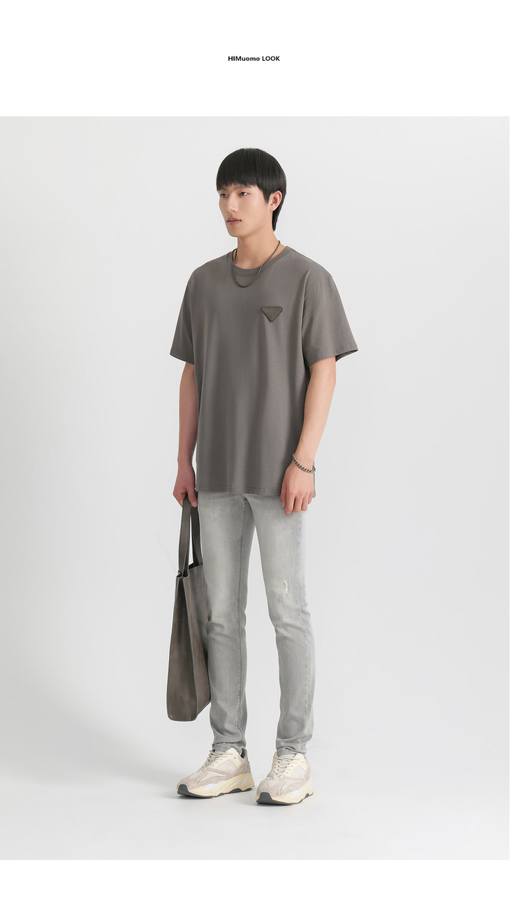 HIM漢崇 休闲弹性圆领T恤男士复古字母绒面烧花短袖上衣 2025夏季