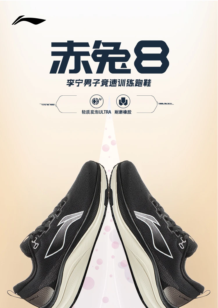 李宁赤兔8男子25冬新款反光轻量竞速训练跑鞋ARPV013