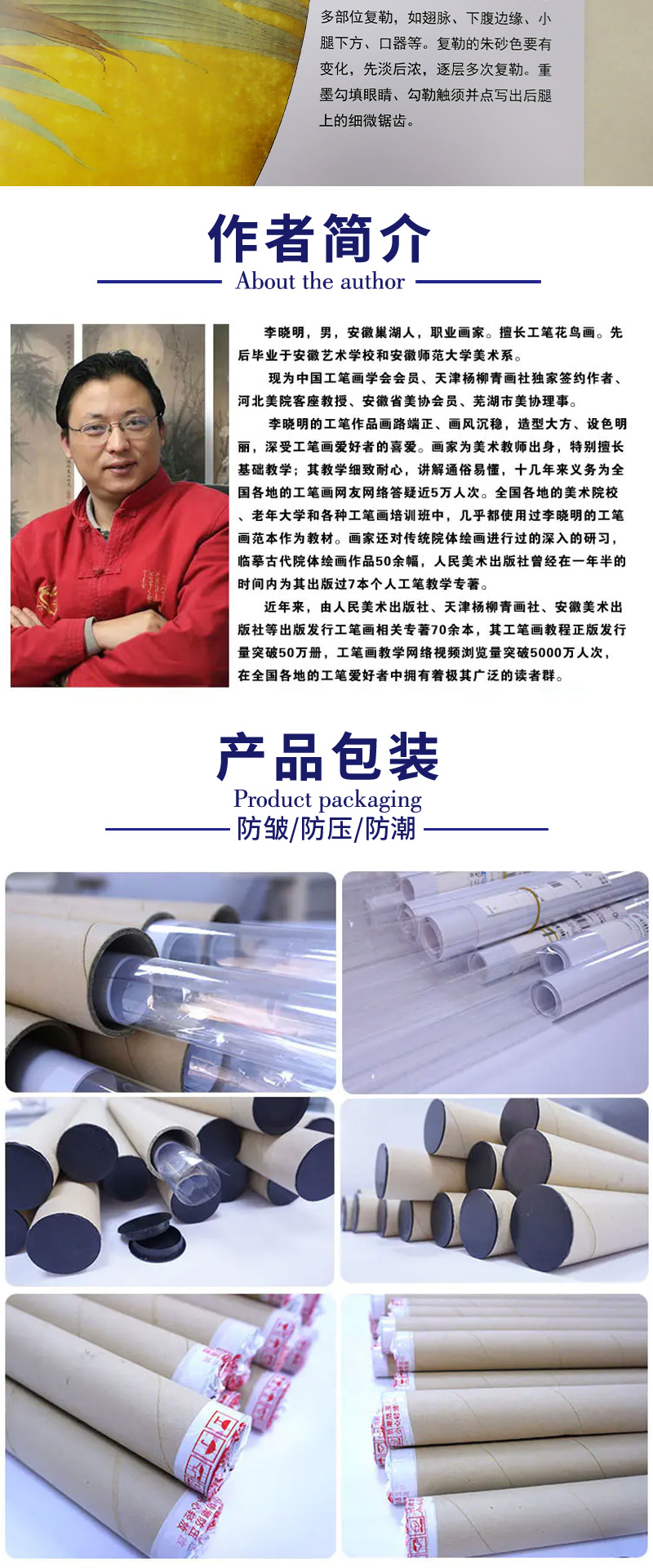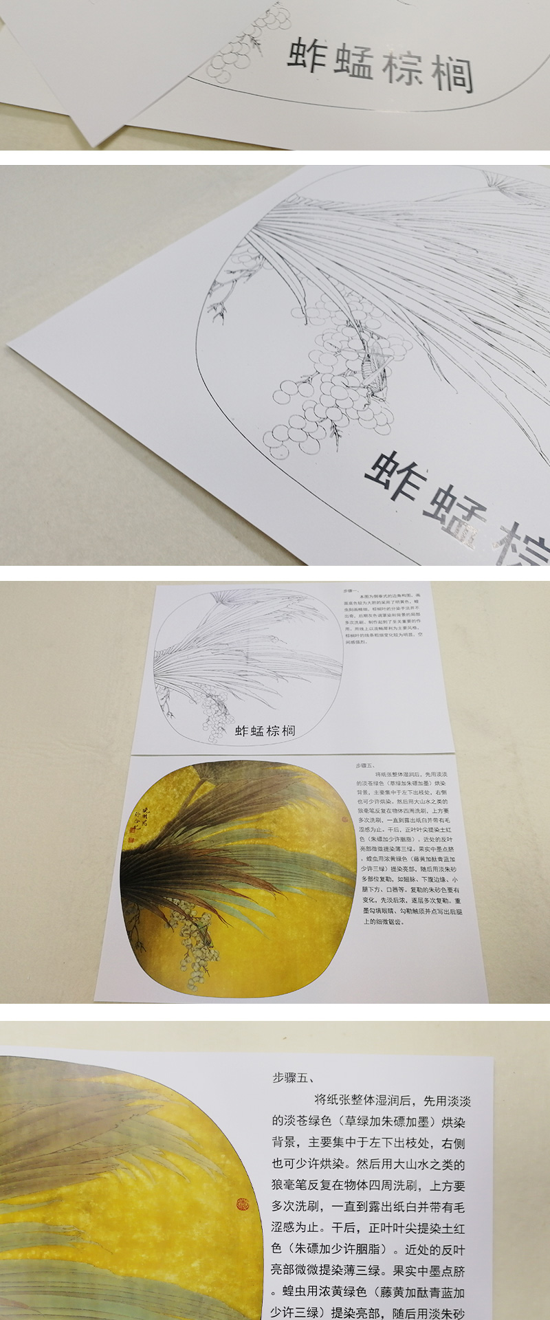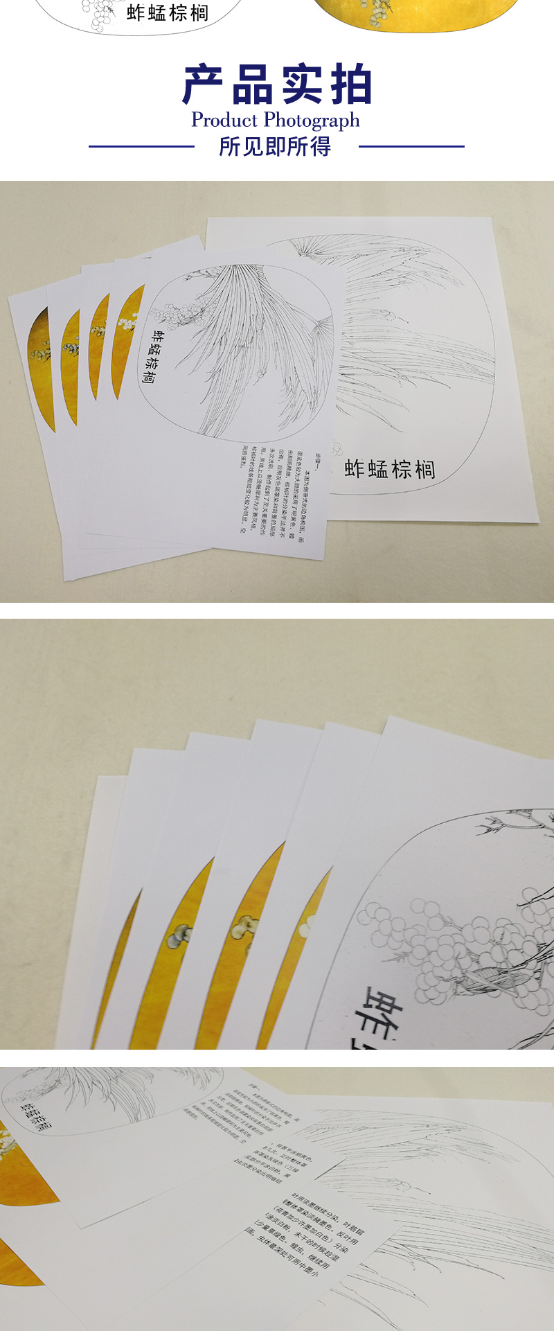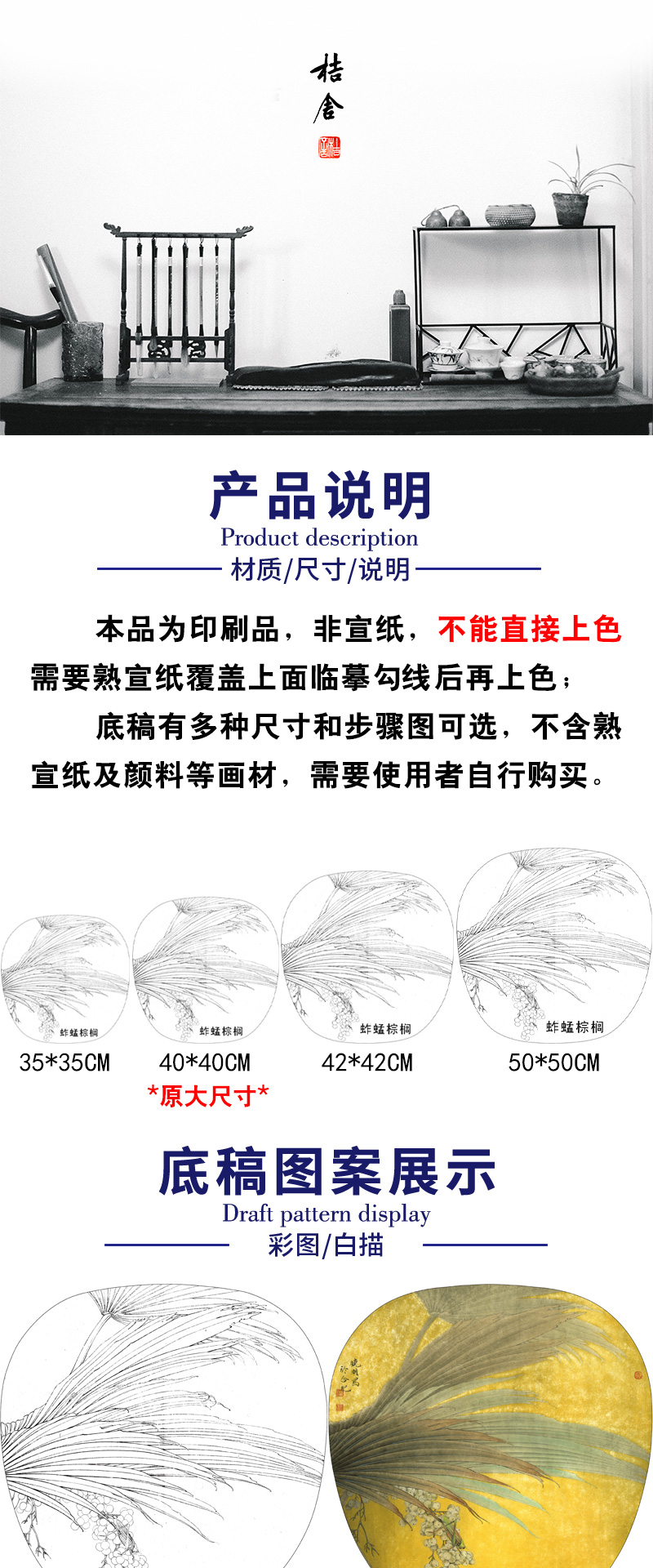 【有步骤、大彩图】李晓明工笔画白描底稿小品《蚱蜢棕榈》初学者临摹花鸟线稿KB37