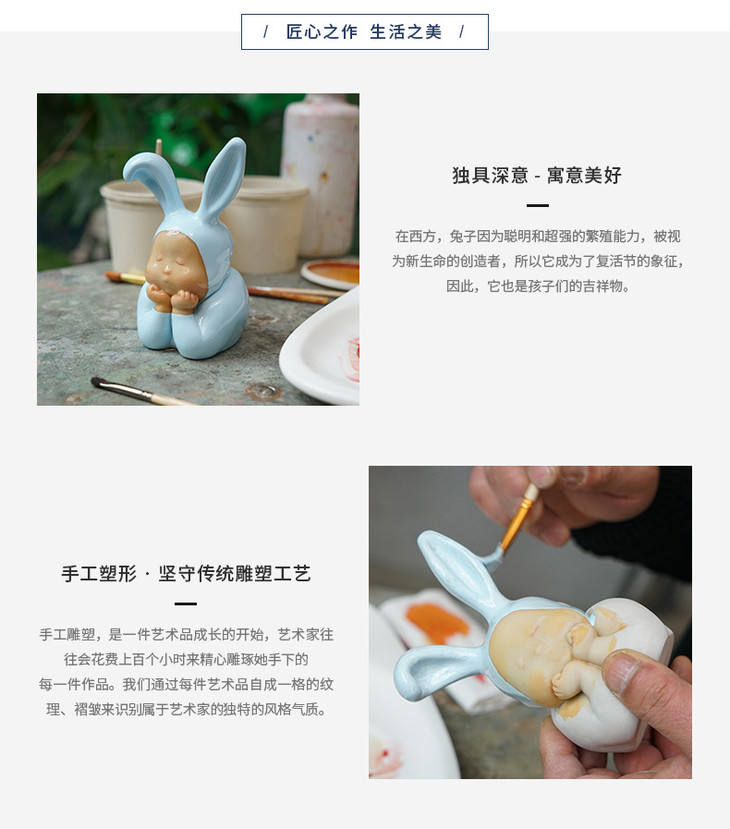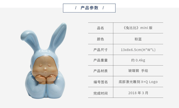 稀奇艺术瞿广慈作品mini版《兔比比》雕塑艺术品 迷你小号桌面摆件礼品 生日礼物