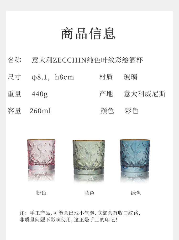 【ZECCHIN】意大利ZECCHIN纯色叶纹系列酒杯水杯