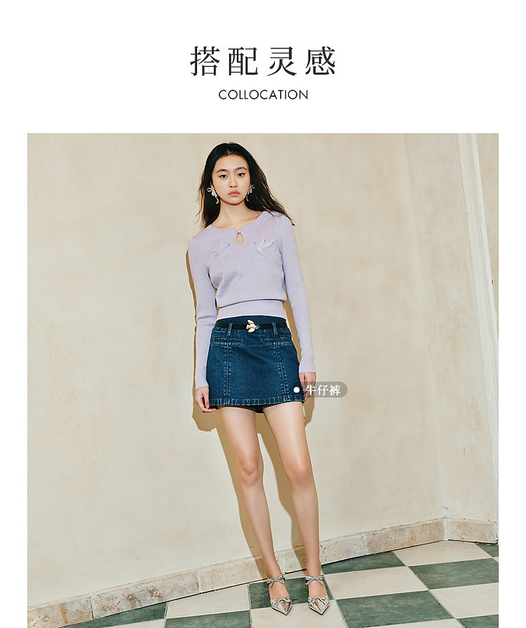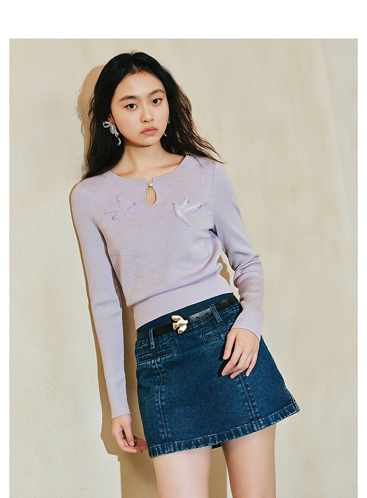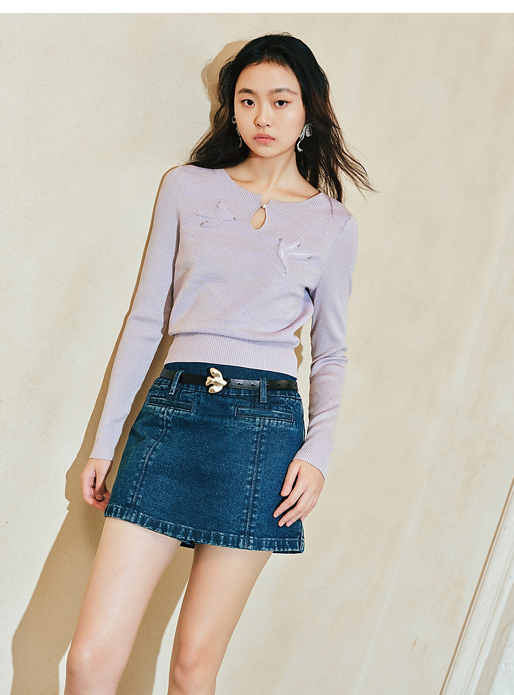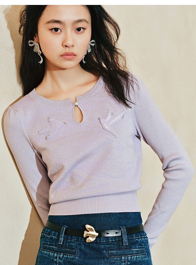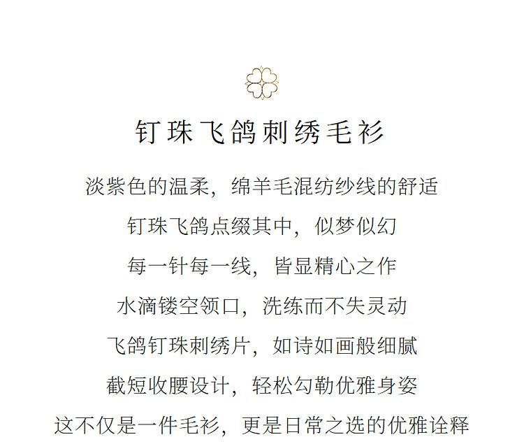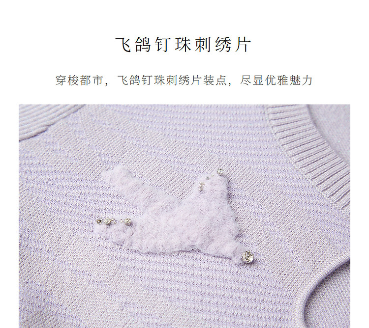 精致钉珠飞鸽刺绣套头毛衫春品(货号:MC85SW044)