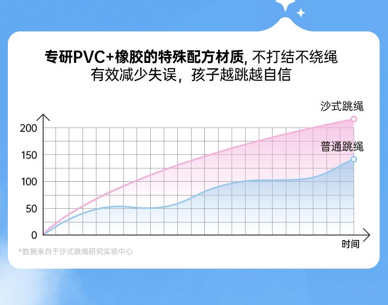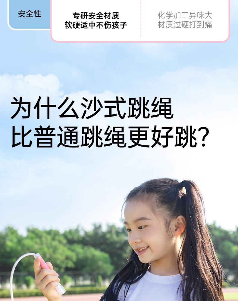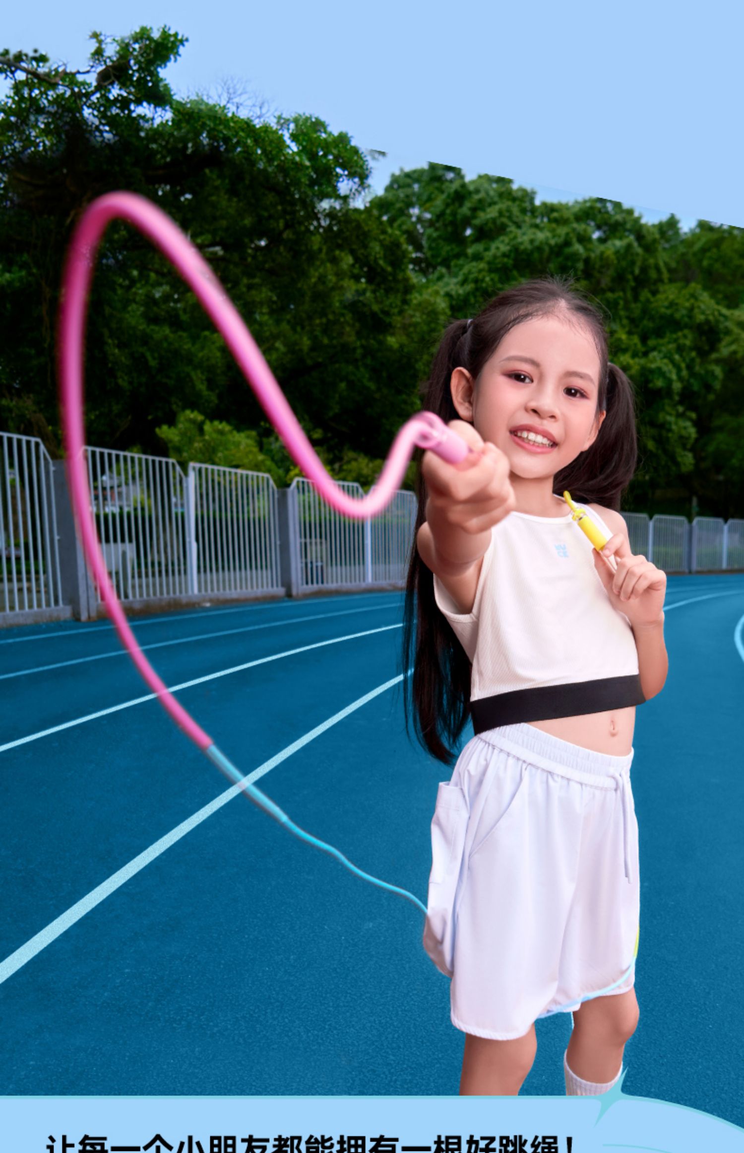 材质安全,跳绳手柄采用TPR+PP材质,安全无毒害。绳子采用PVC+橡胶的特殊配方,不易打结,防止运动受伤。同时,手柄使用仿鲨纹防滑结构,运动过程中不易脱落。