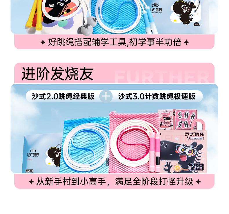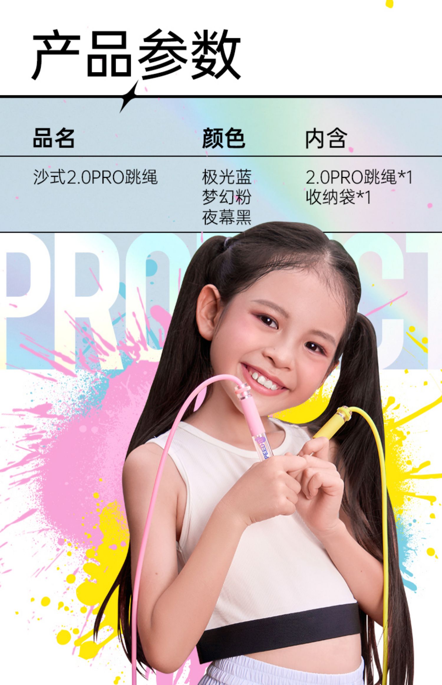 1、沙式2.0与沙式2.0pro有哪些升级首先在提速效果上,沙式2.0PRO依旧保留了沙式的分段式绳体的产品基因,