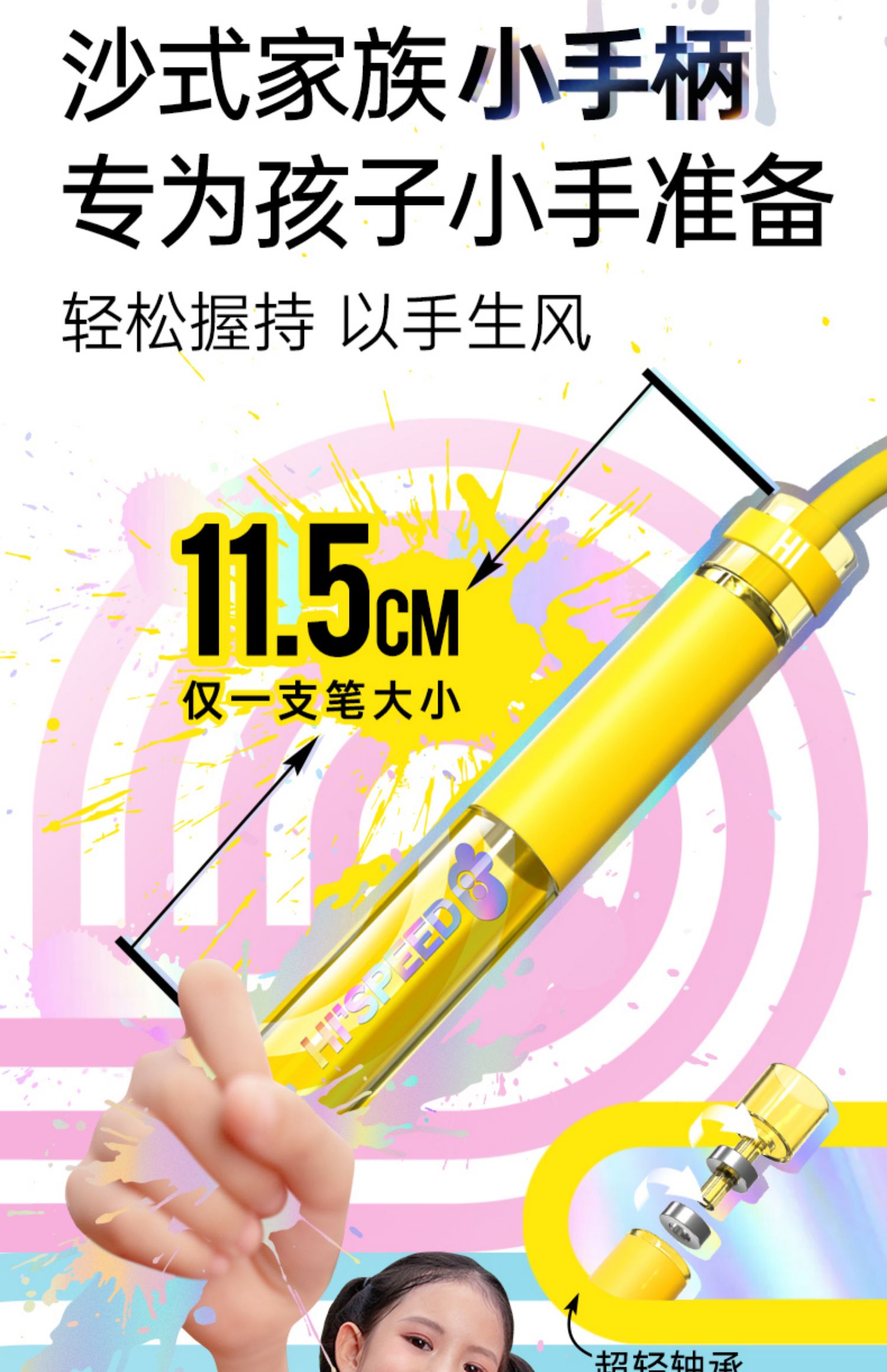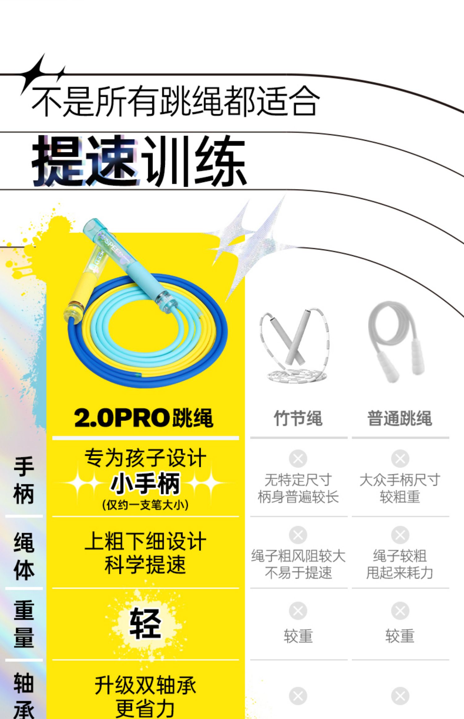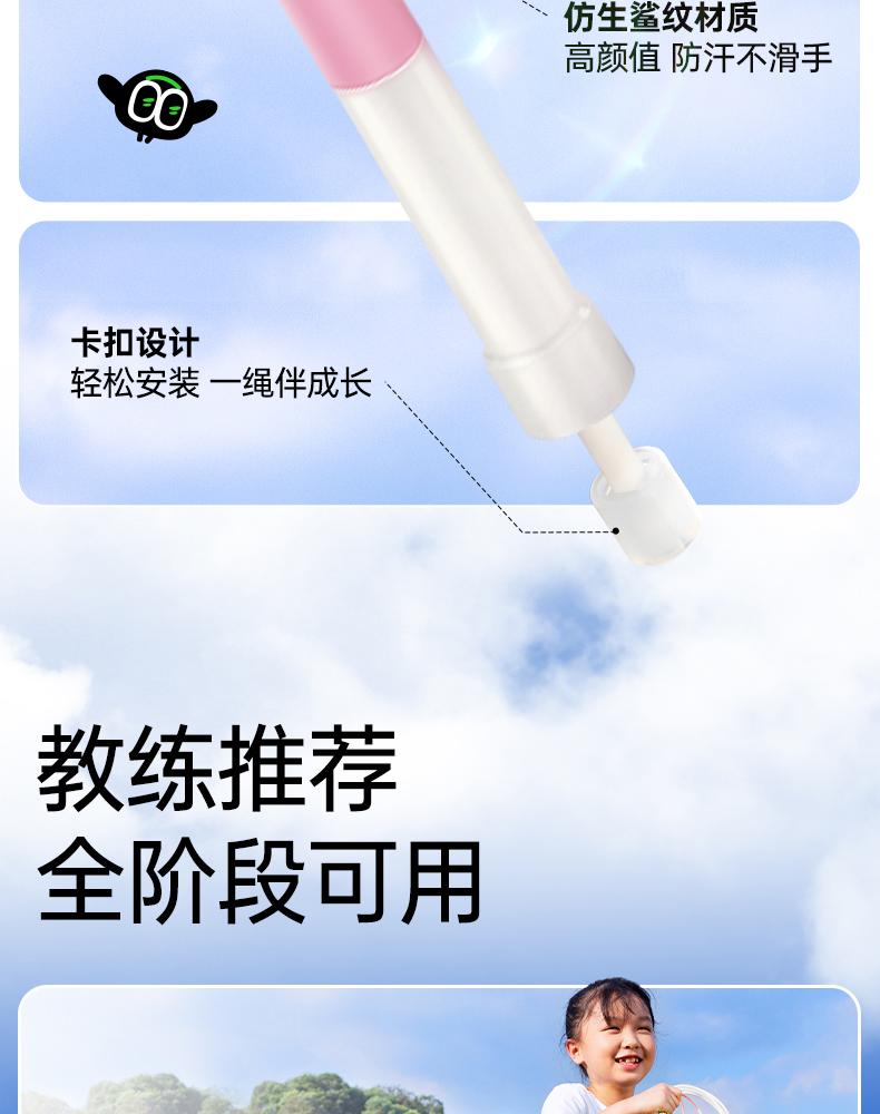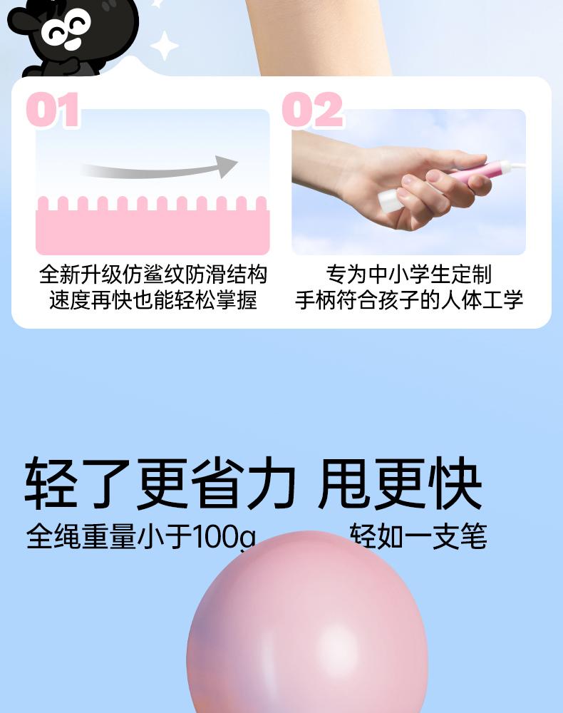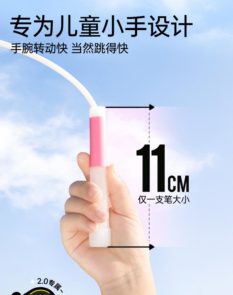 3、2.0PRO的轻量化小手柄升级了超轻双轴承,大大增加了摇绳惯性,让孩子在摇绳过程中更加省力。
