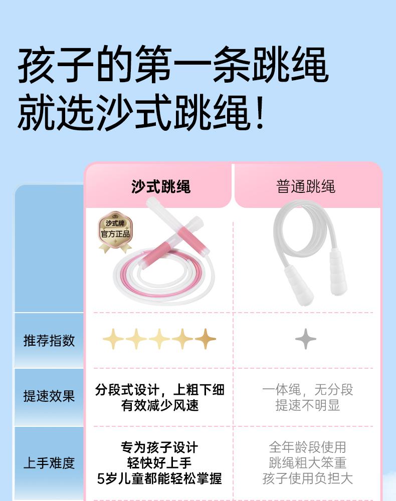 测评优品-沙式经典/极速2.0儿童专用跳绳 二/三分段 中小学生 锻炼体测 安全轻便