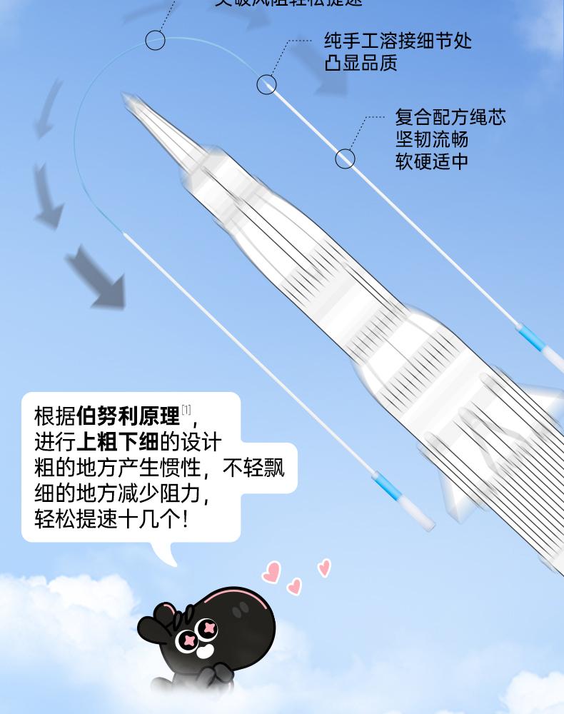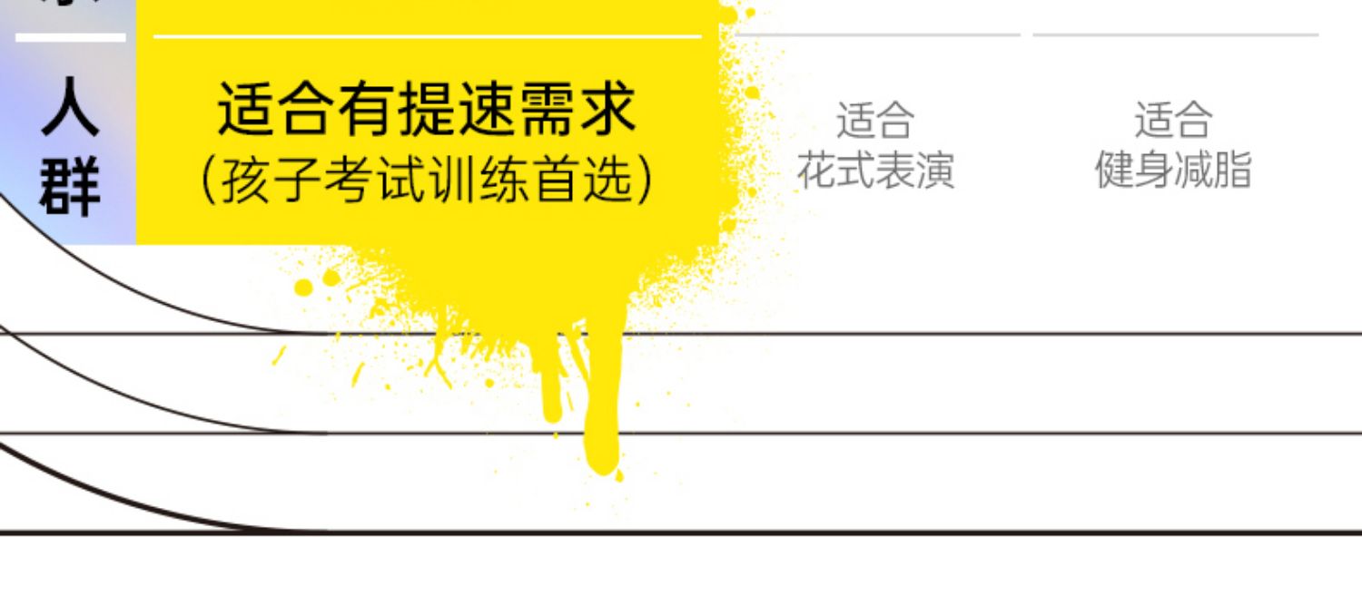 跳绳创新采用分段式设计,根据伯努利原理,跳绳为上粗下细设计,有效减少风阻,提高运动表现。
