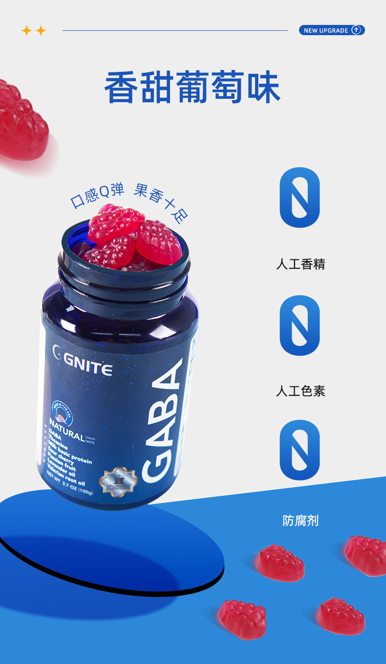 G’NITE® 晚安葡萄味r-氨基丁酸凝胶糖果60粒/瓶 1瓶