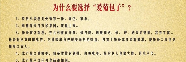 八十年坚守品质,八十年守护诚信。爱菊秉承“为耕者谋利、为食者造福”的经营宗旨,为您和家人的健康保驾护航,倡导“预约订购、就近取货,买退自由”的消费理念。本店主营爱菊全系列产品,品种丰富(包含:馒头、包