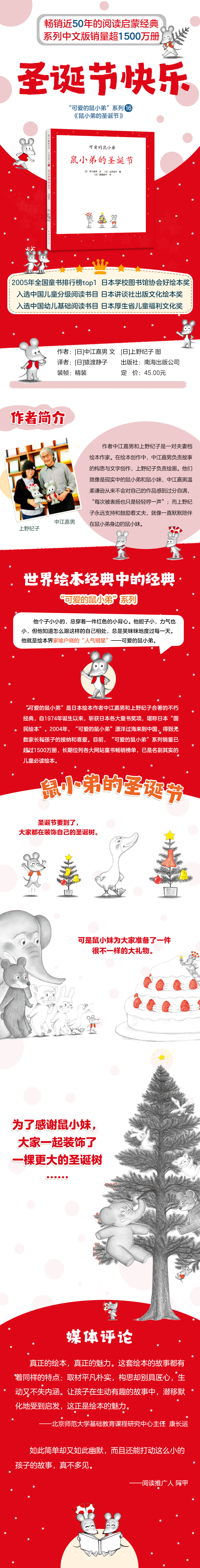 “可爱的鼠小弟”系列是日本绘本作者中江嘉男和上野纪子合著的不朽经典,自1974年诞生以来,斩获日本各大童书奖项——日本学校图书馆协会好绘本奖、日本产经儿童出版文化奖、日本讲谈社出版文化绘本奖、日本厚生省儿童福利文化奖,堪称日本“国民绘本”。