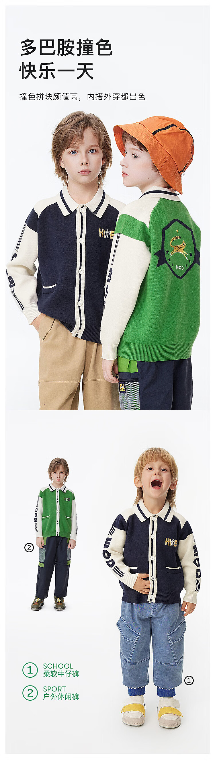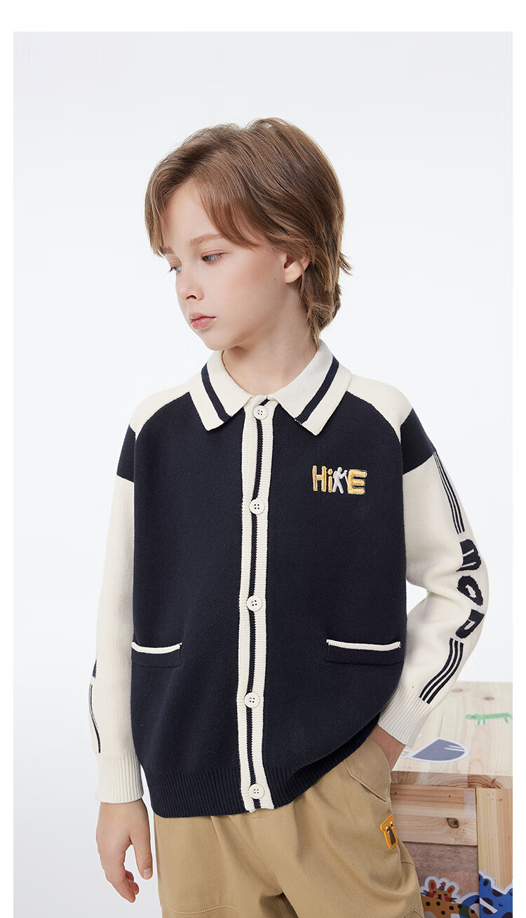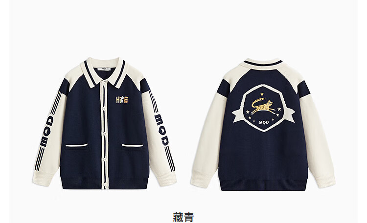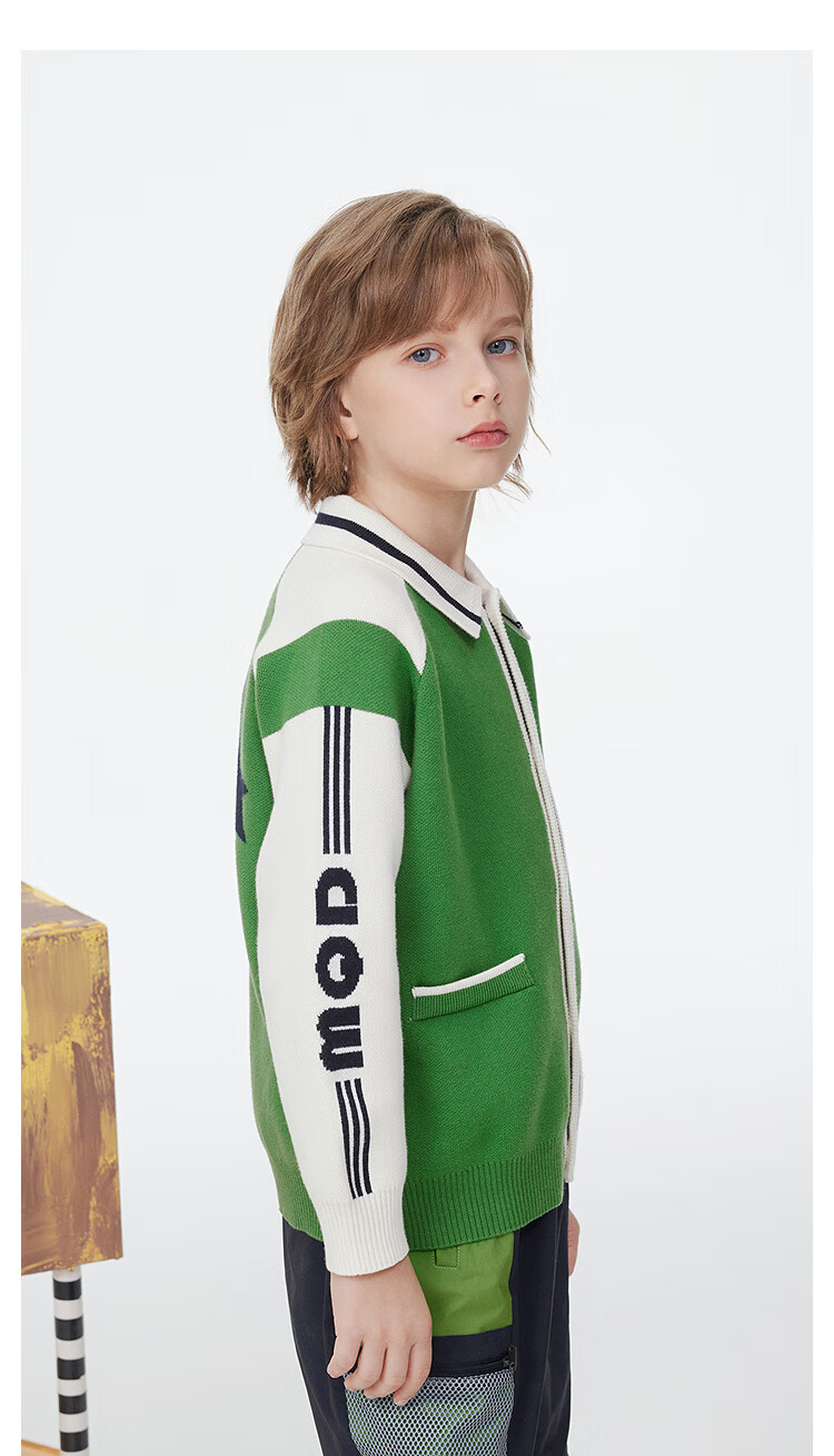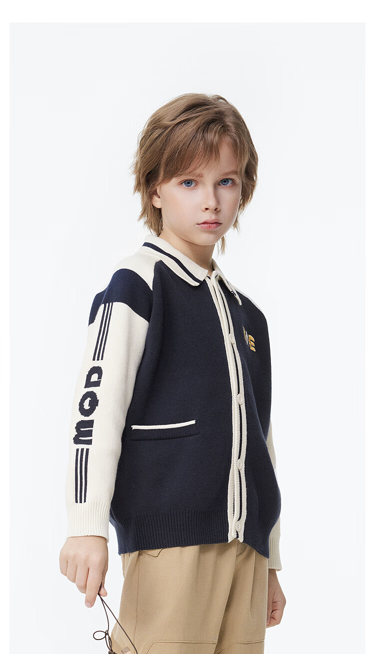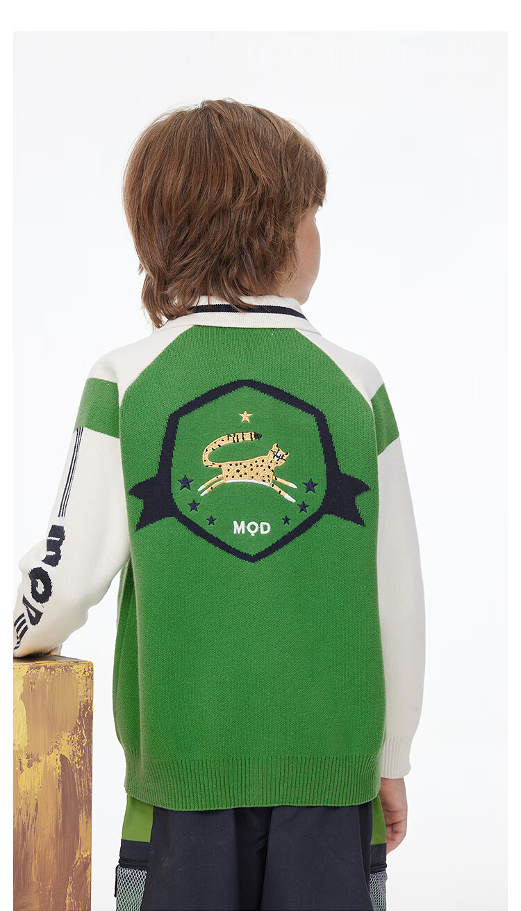 【MQD】童装男童开衫毛衣撞色翻领学院风复古儿童针织外套潮