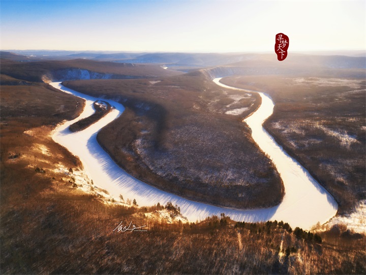 黑龙江第一湾:360 度江湾冬季银装素裹,对面俄罗斯金环岛相映,气势磅礴。