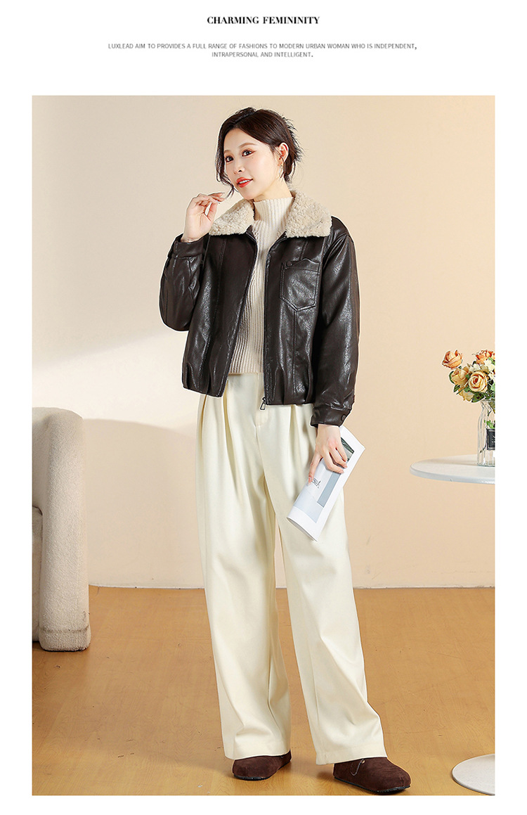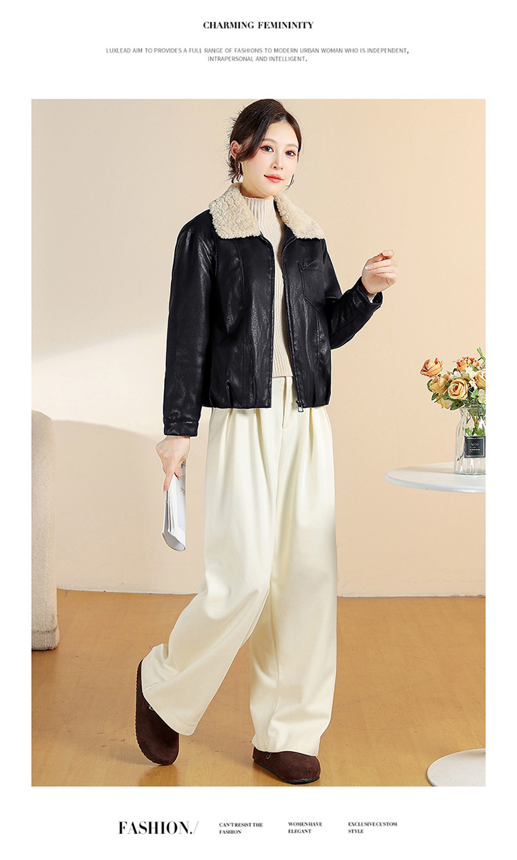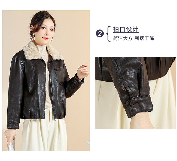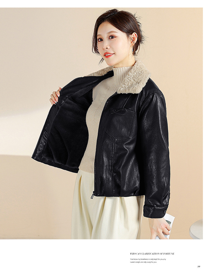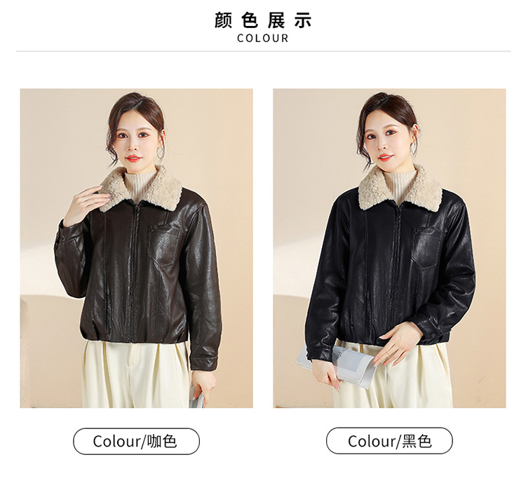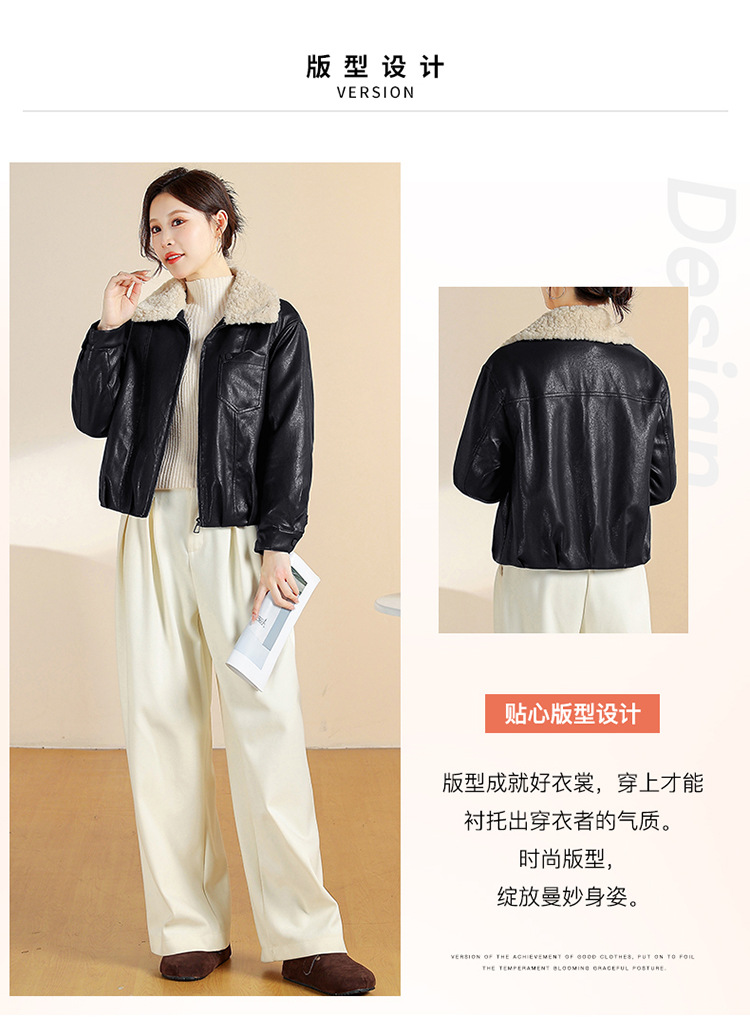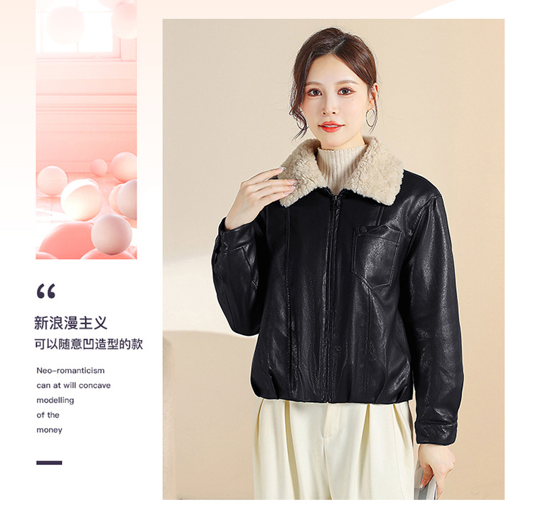 QYM YB25B77-Y时尚加绒皮衣休闲保暖厚款毛领PU皮外套