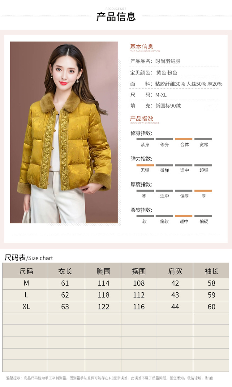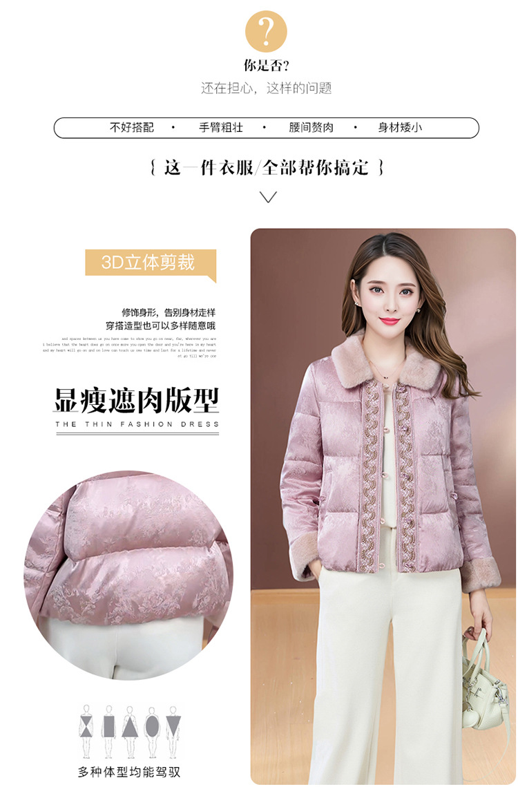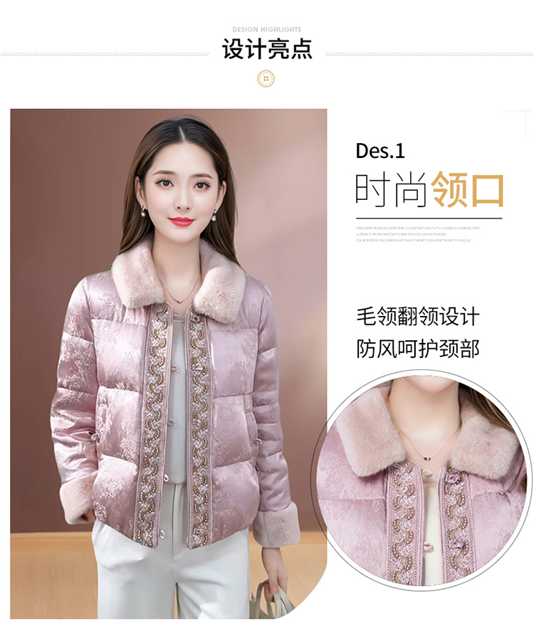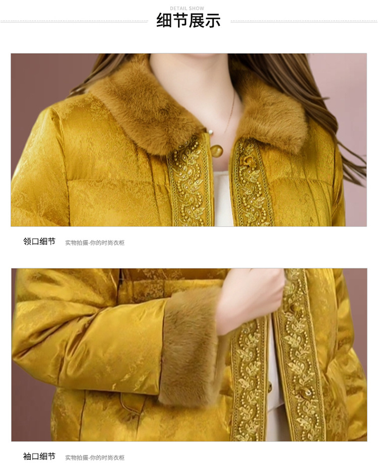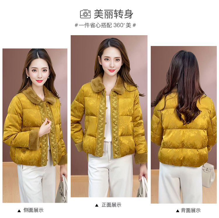 QYM 59132新中式刺绣复古国风时尚缎面短款羽绒服宽松显瘦保暖外套 商品图3