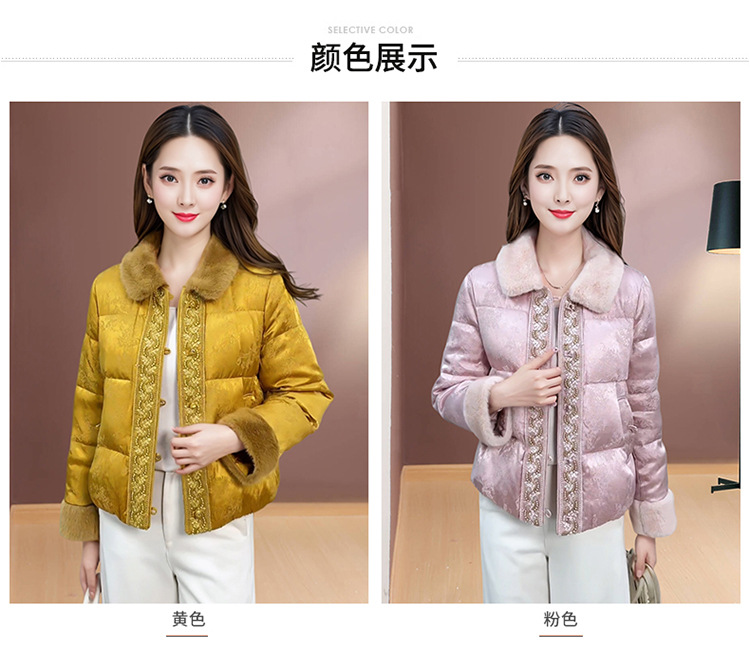 QYM 59132新中式刺绣复古国风时尚缎面短款羽绒服宽松显瘦保暖外套 商品图2