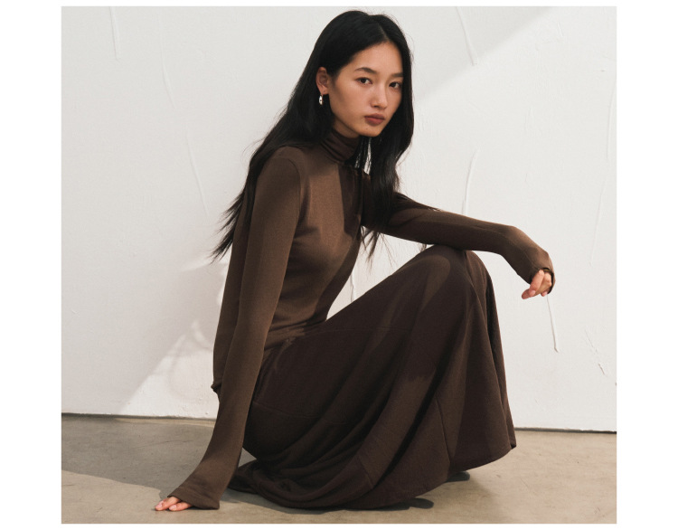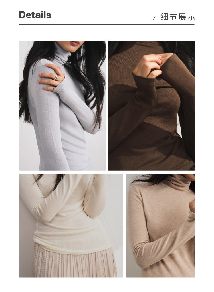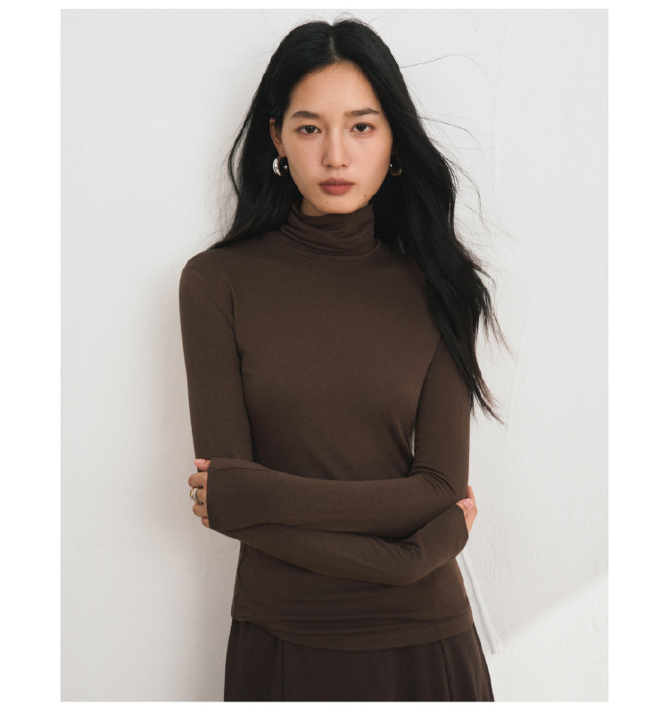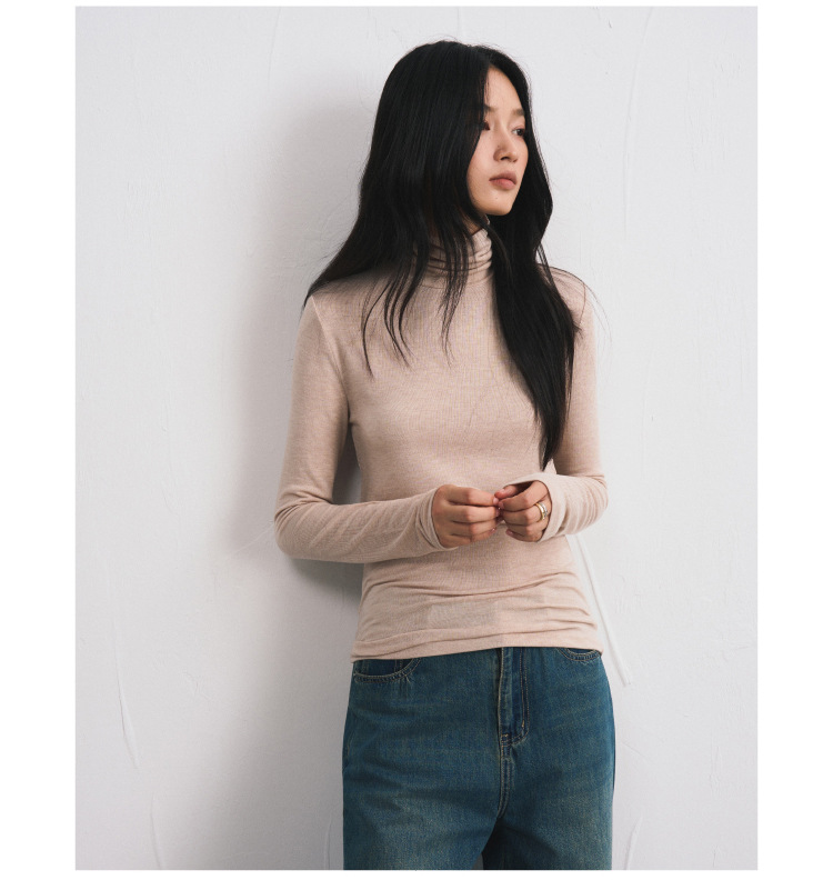 【2025秋冬新品】莫代尔羊绒・高领打底衫 色纱定织修身亲肤T恤基础款弹力针织衫
