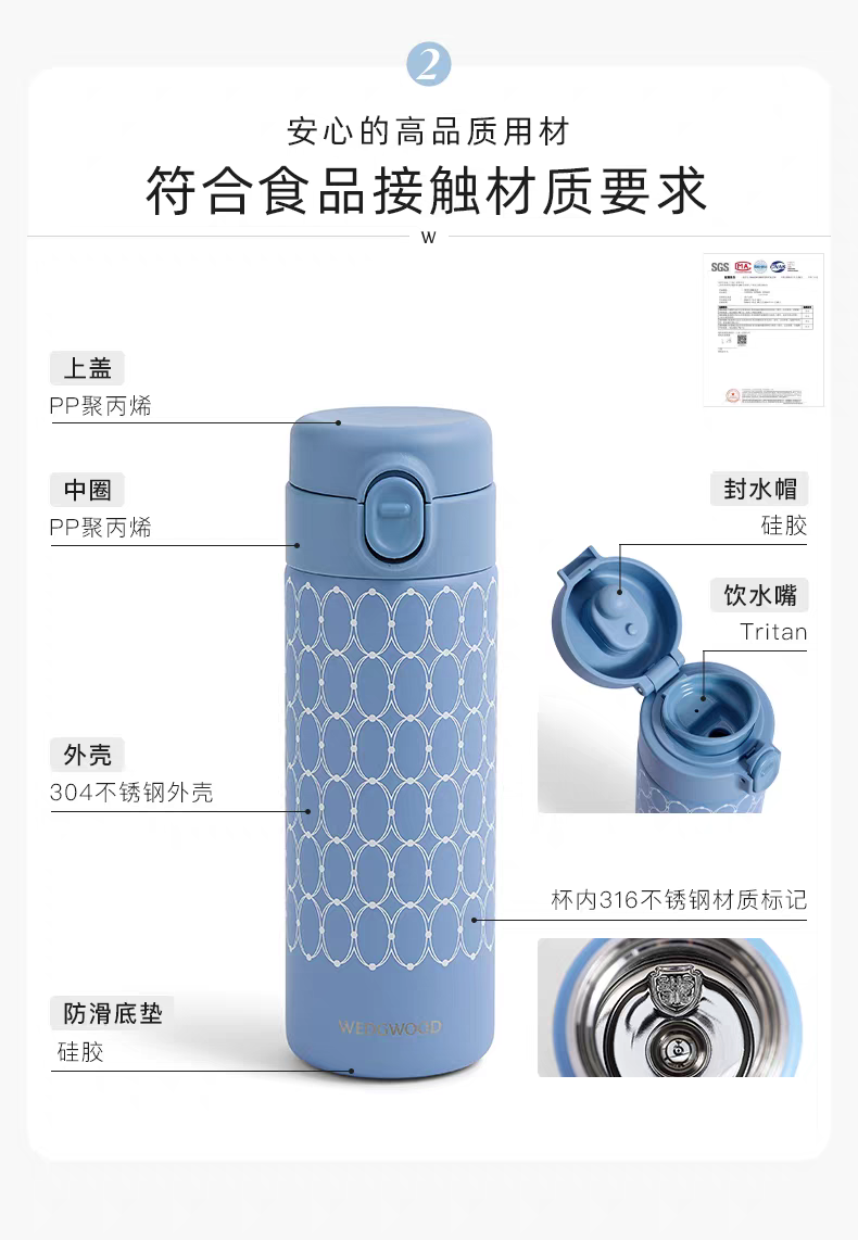 【WEDGWOOD】威基伍德金粉年华420ml运动保温杯水杯便携