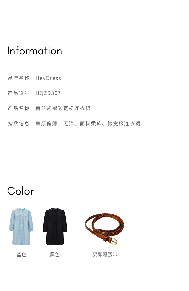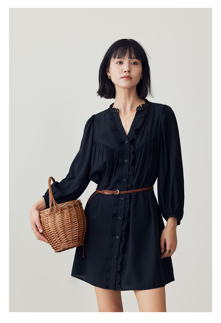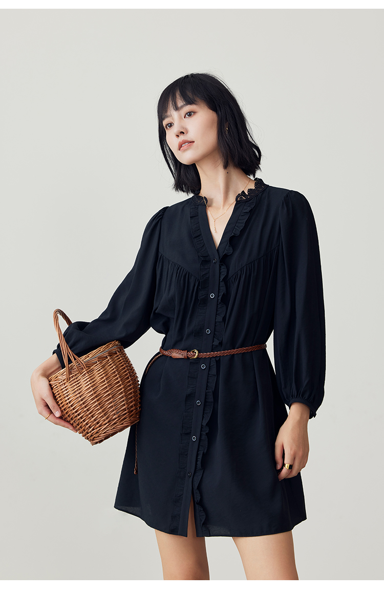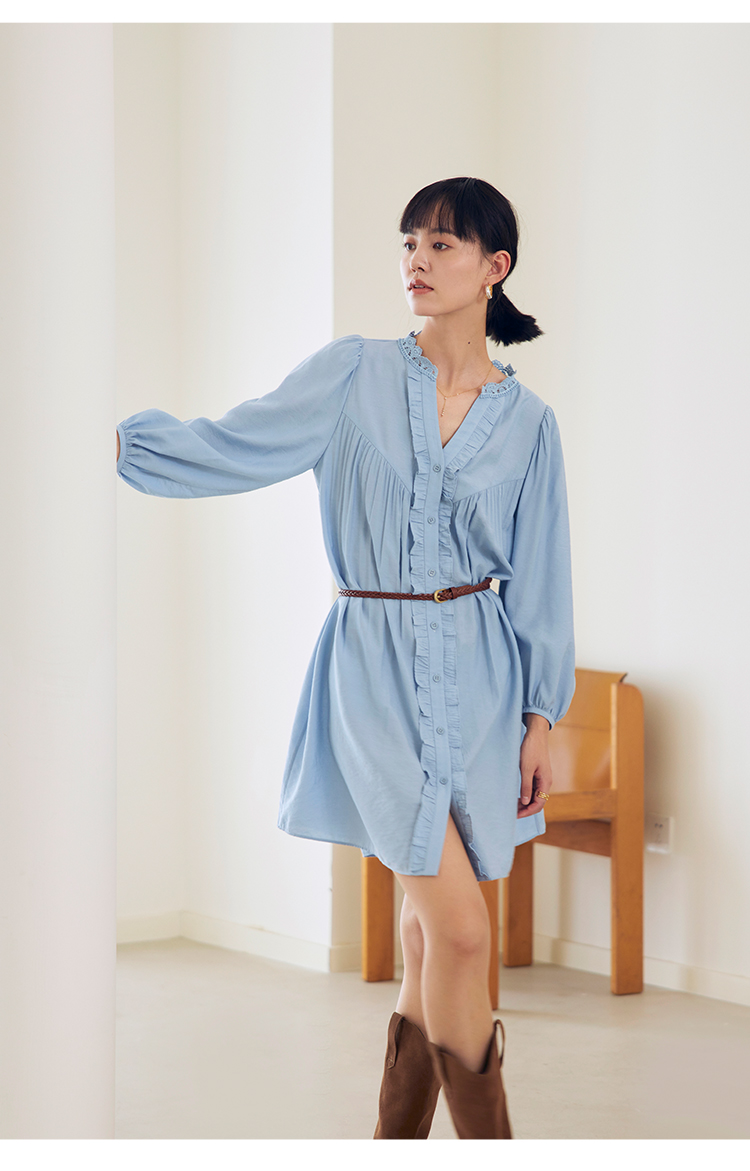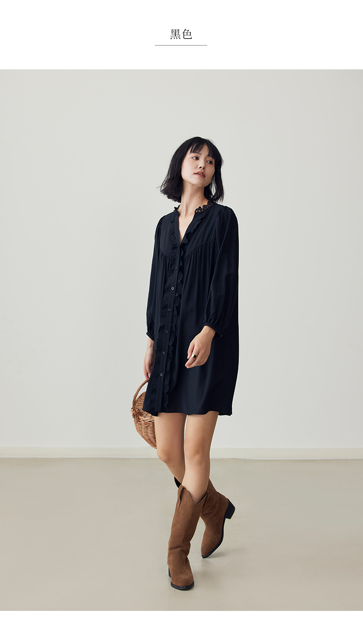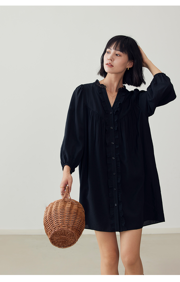 HeyDress法式衬衫连衣裙女早秋复古蕾丝领衬衣宽松收腰气质裙子