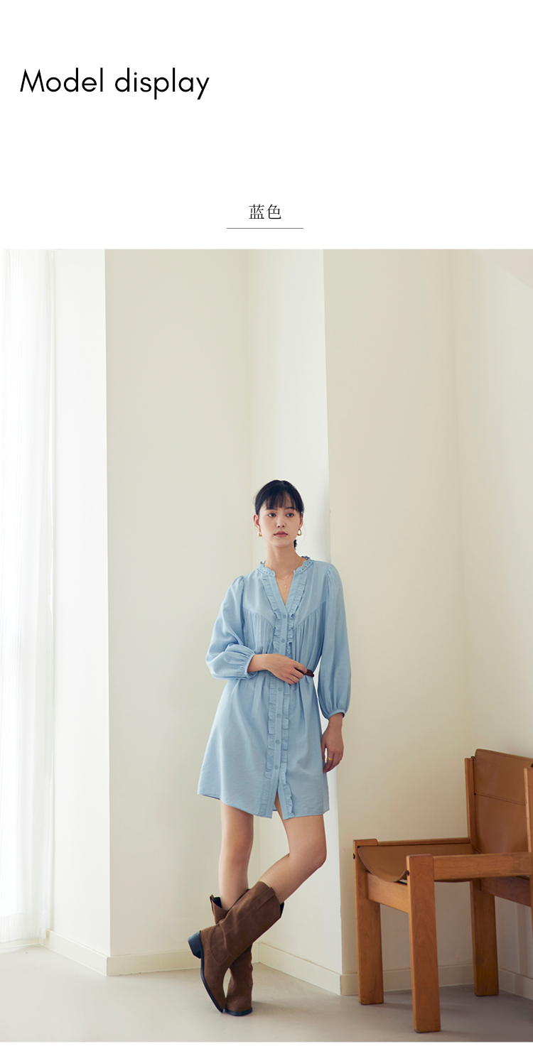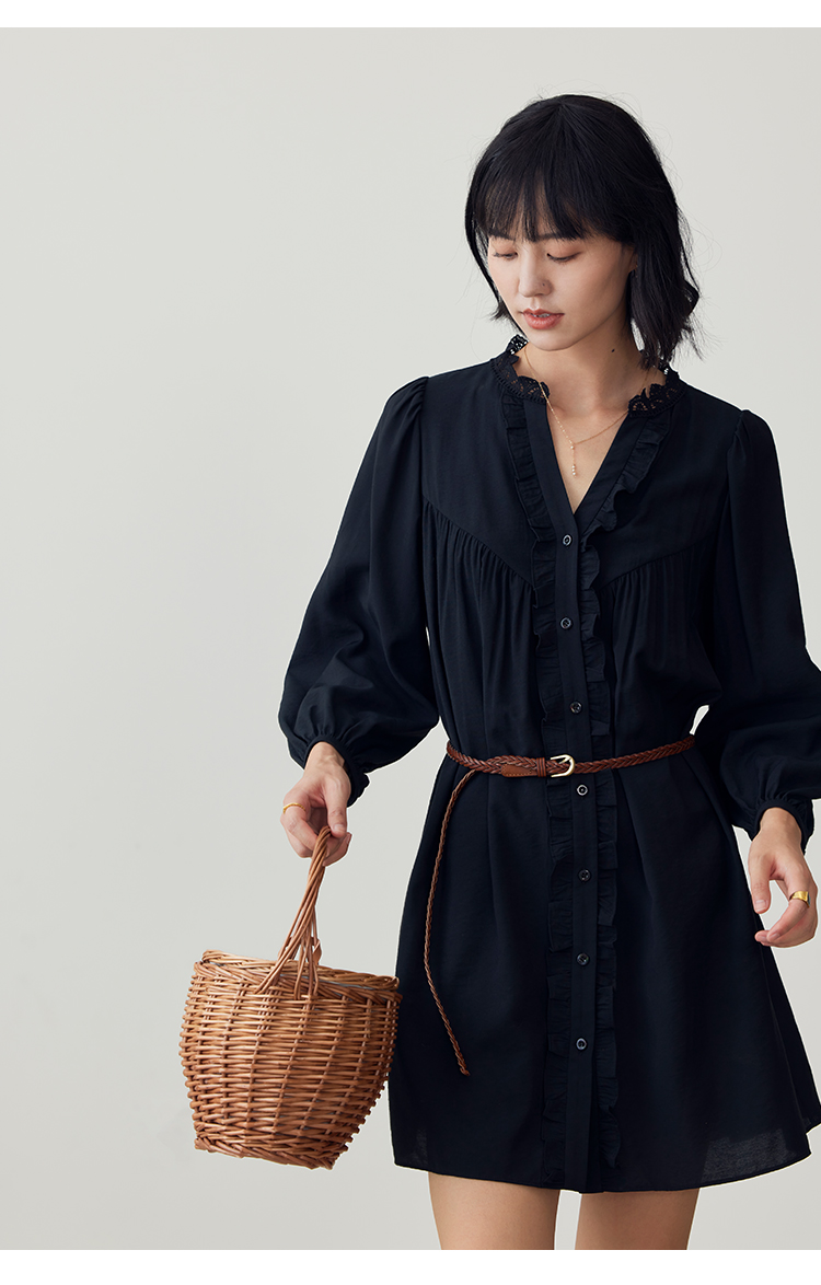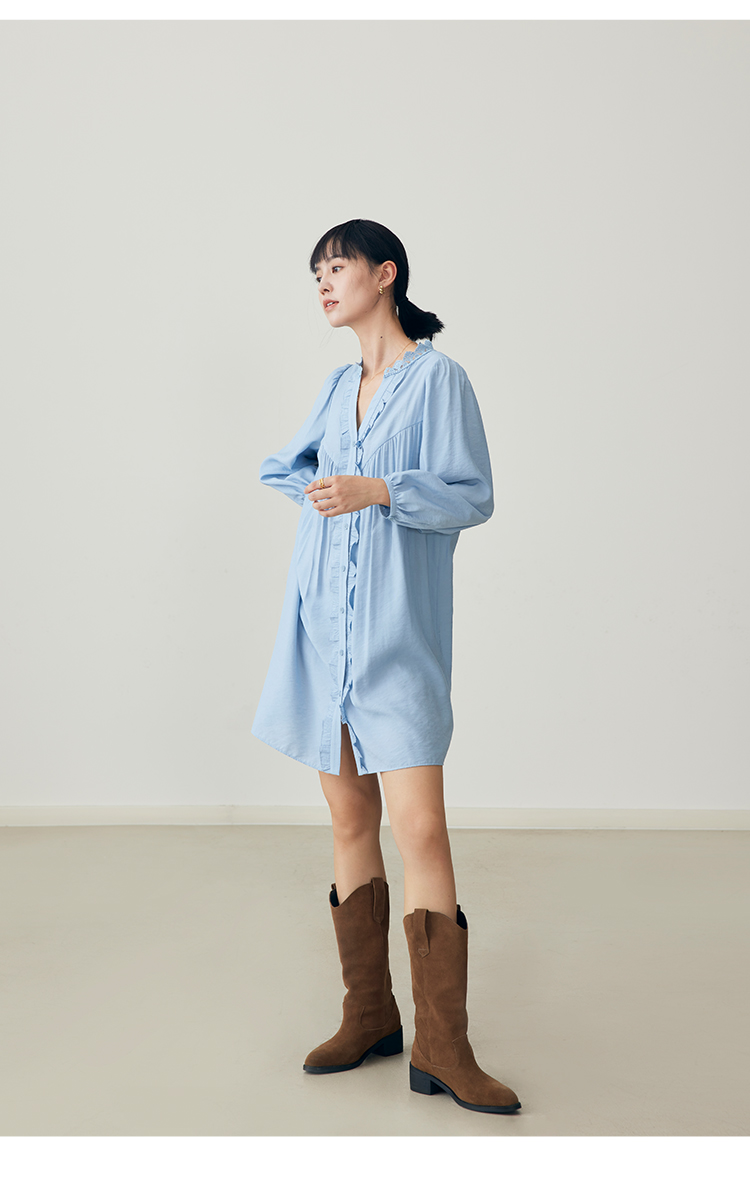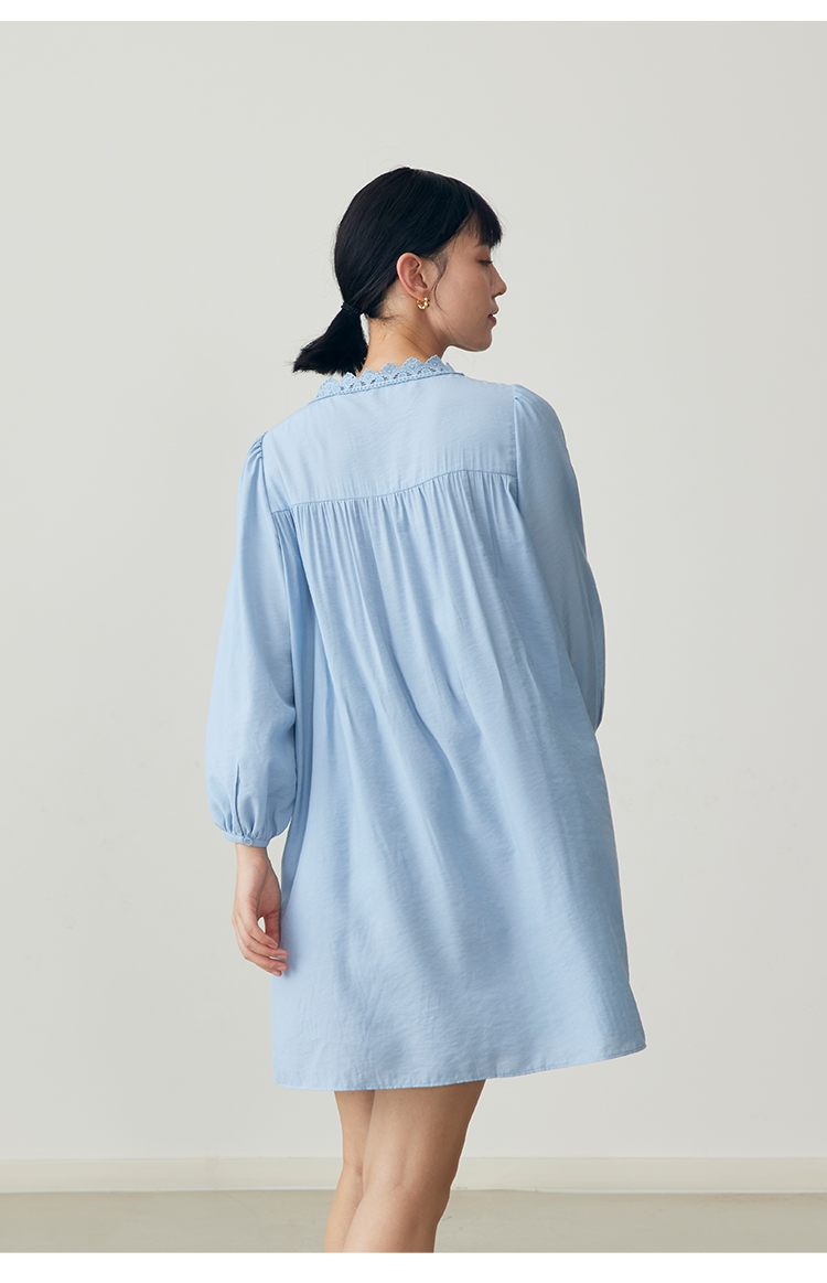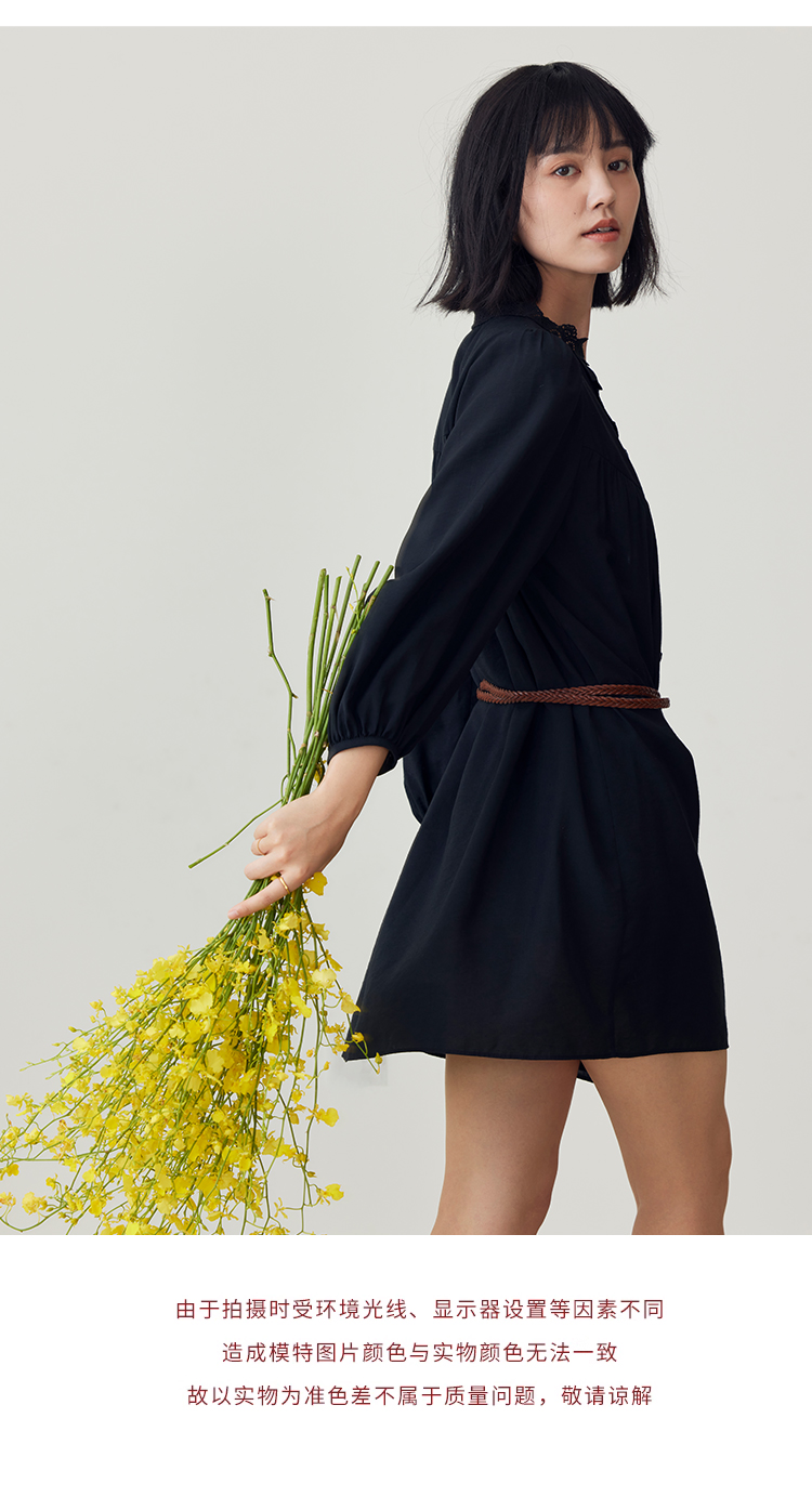 HeyDress法式衬衫连衣裙女早秋复古蕾丝领衬衣宽松收腰气质裙子