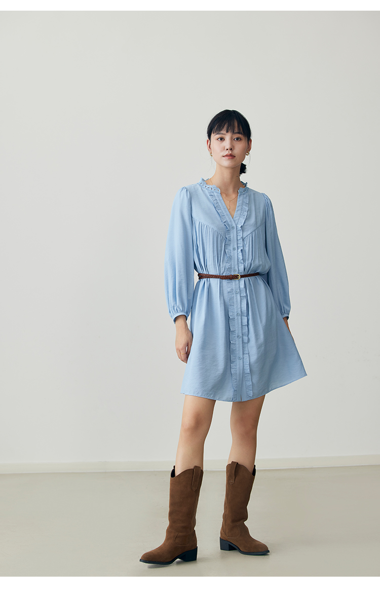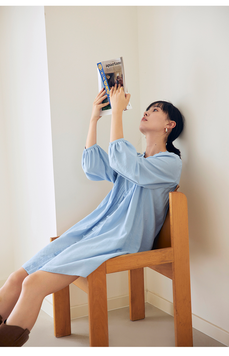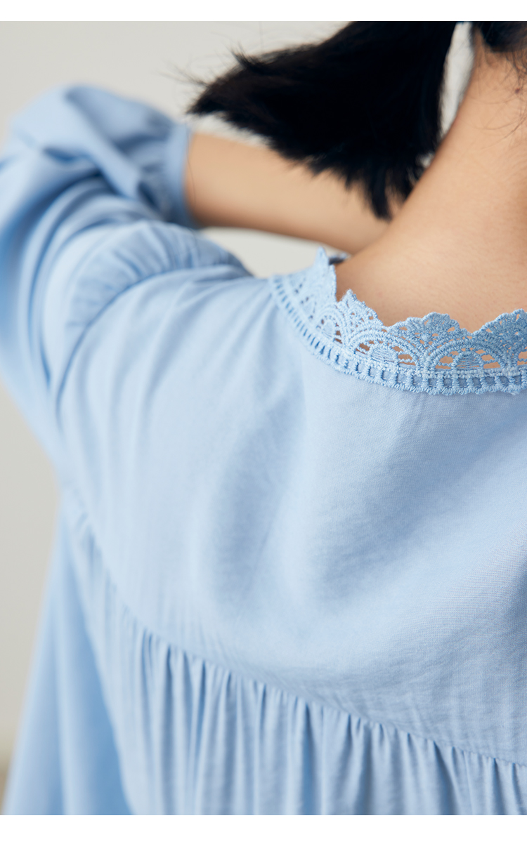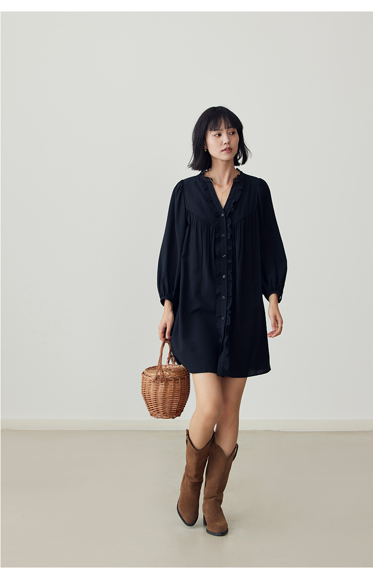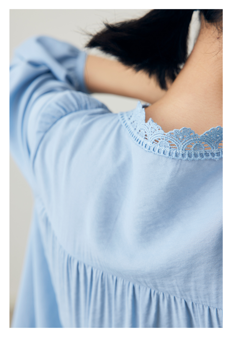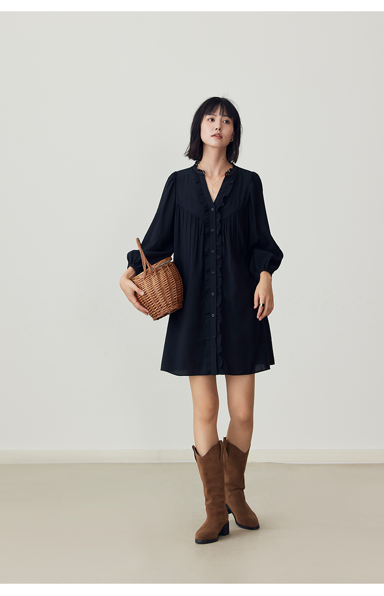 HeyDress法式衬衫连衣裙女早秋复古蕾丝领衬衣宽松收腰气质裙子