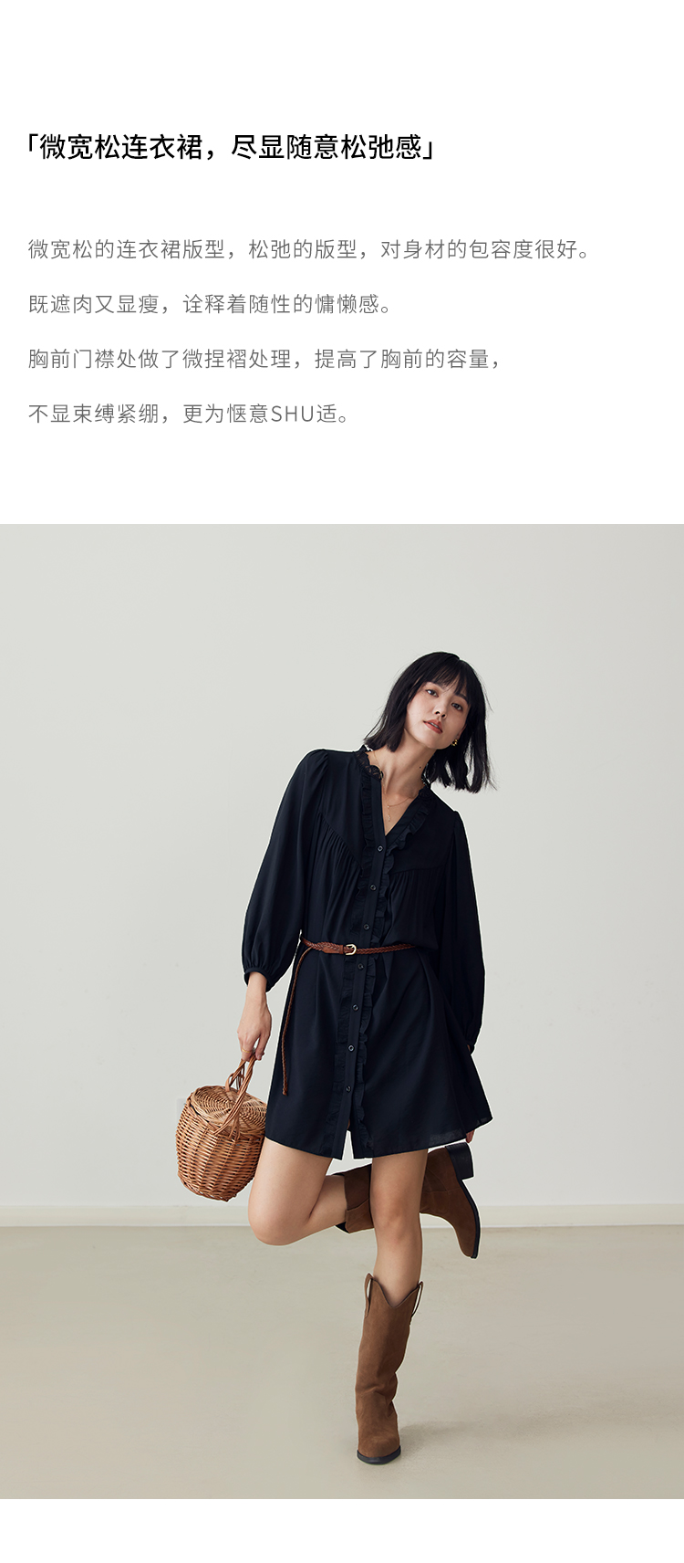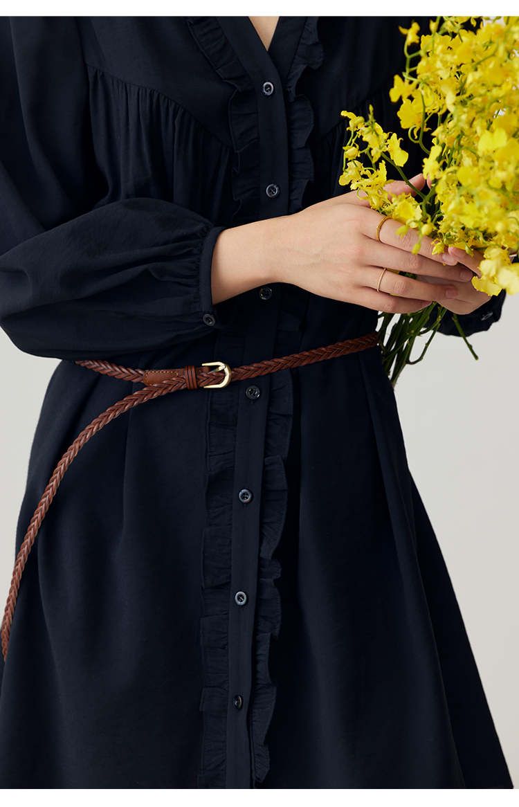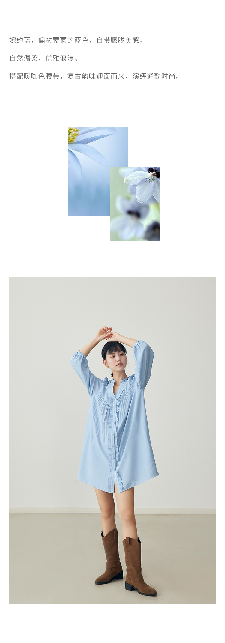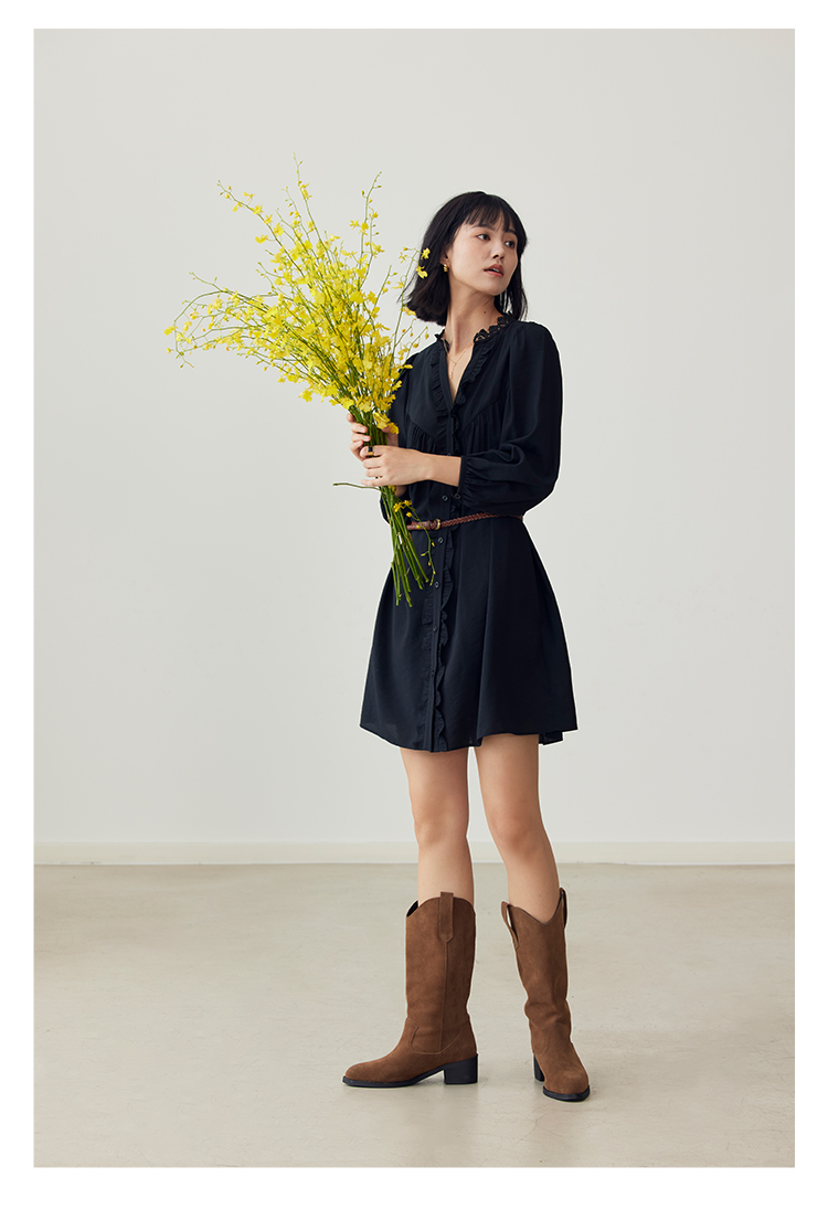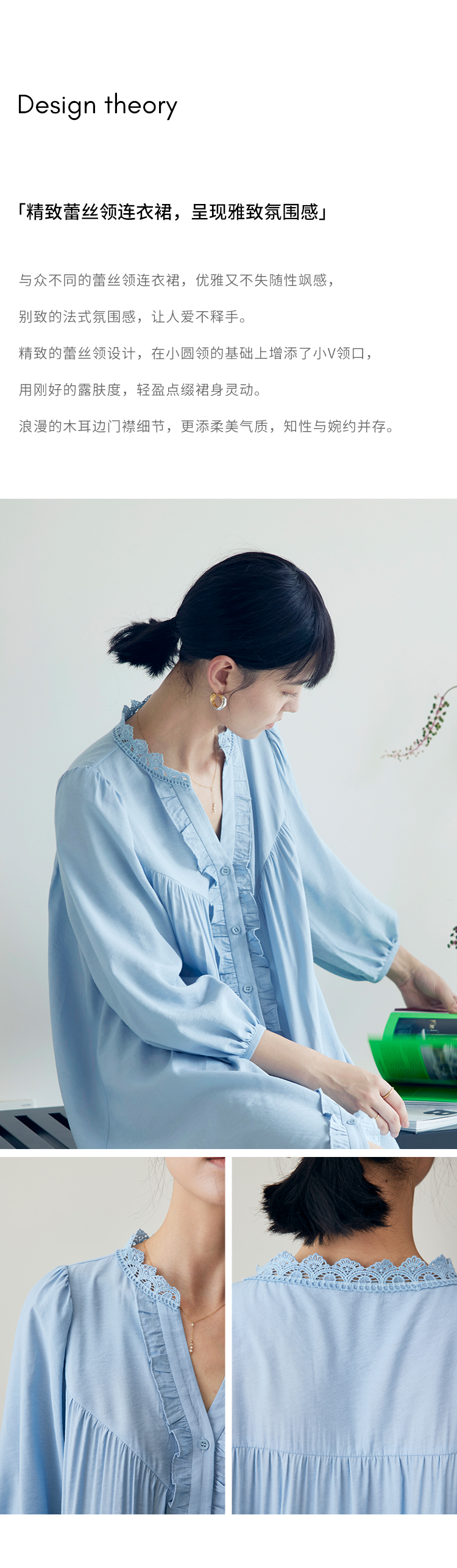 HeyDress法式衬衫连衣裙女早秋复古蕾丝领衬衣宽松收腰气质裙子