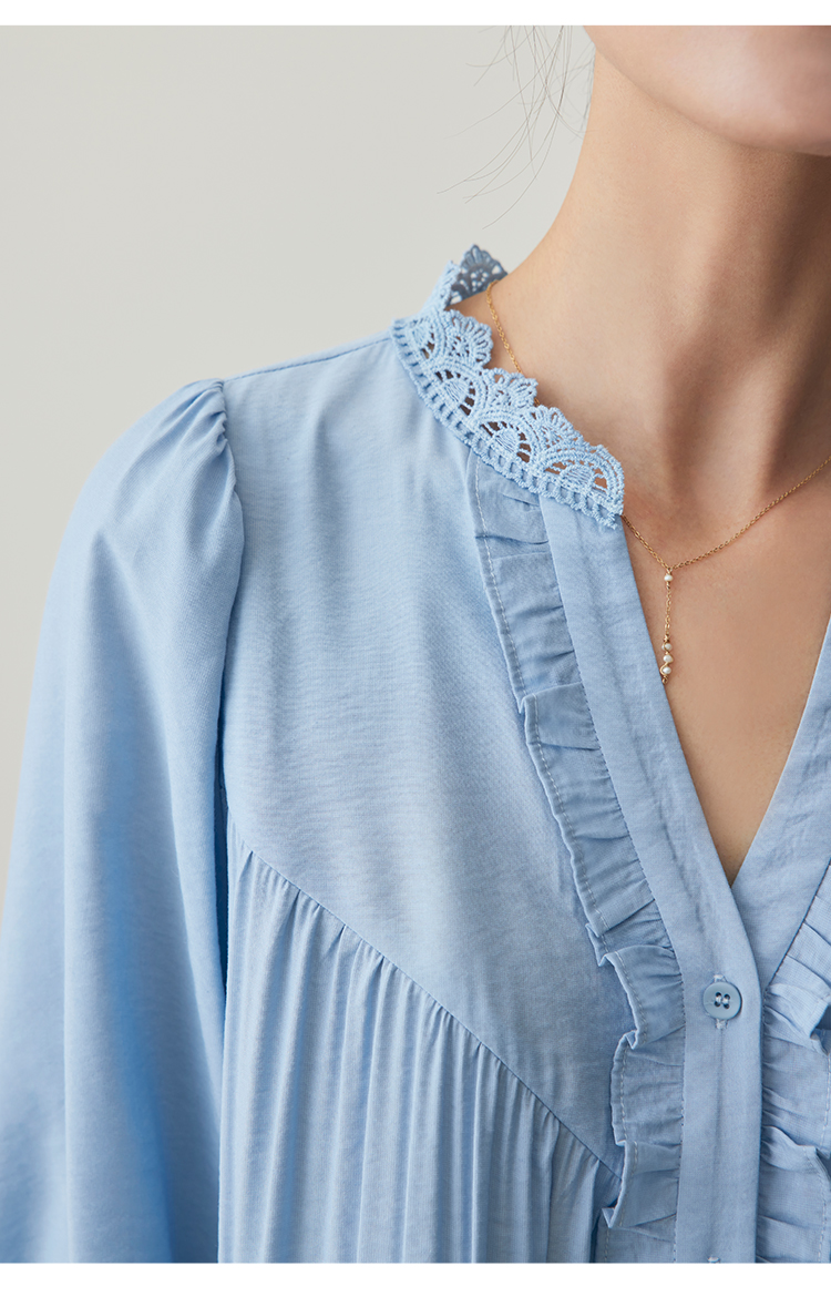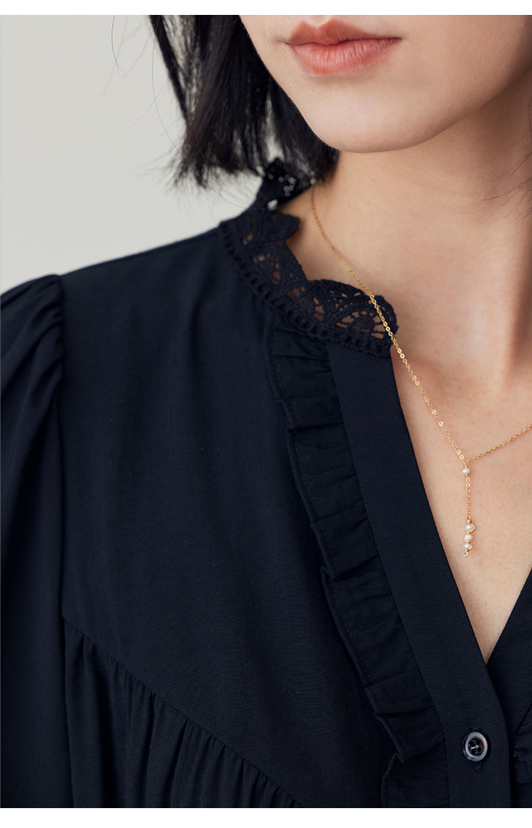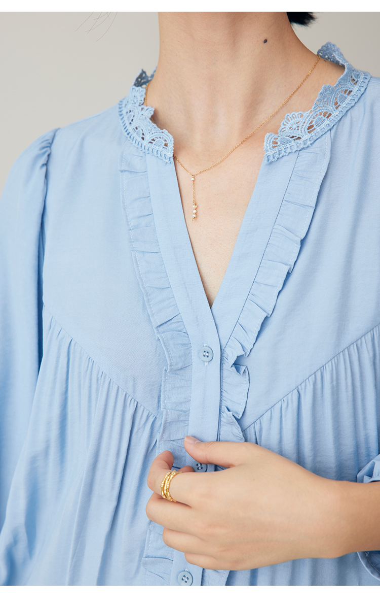 蕾丝荷叶边碎褶衬衫