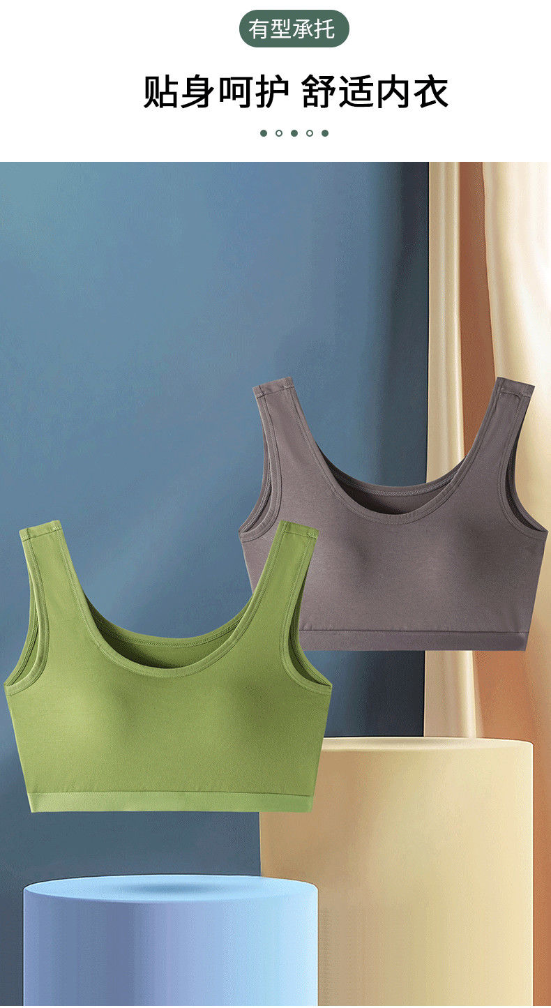 【ㄧ低U美背,V领露脐】黛唯梵纯棉少女文胸抹胸防走光,初高中学生运动内衣女,一体式防震U型美背