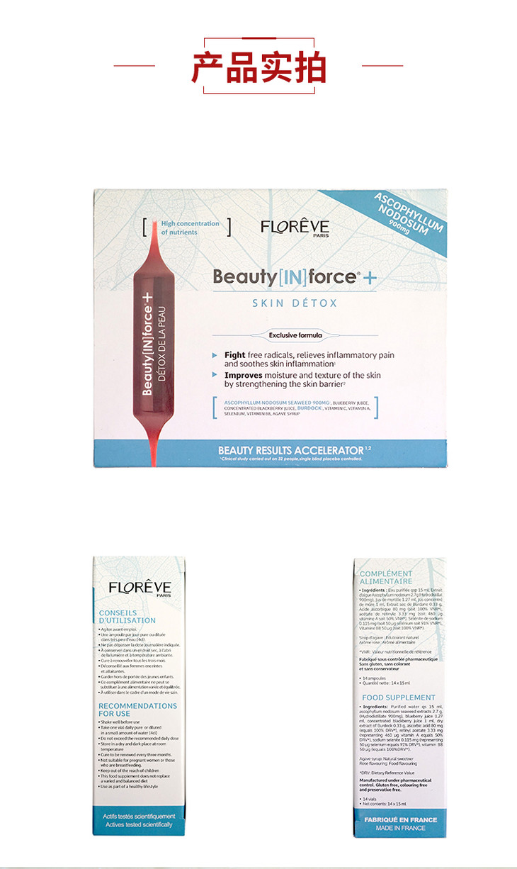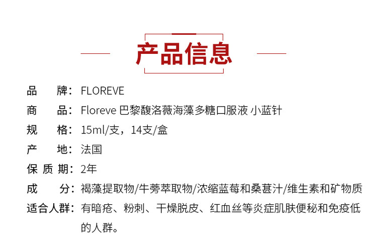 法国进口Floreve馥洛薇海藻多糖口服液(小蓝针) 润肠祛痘