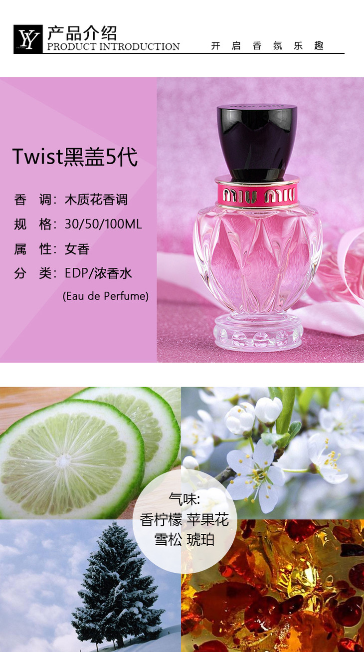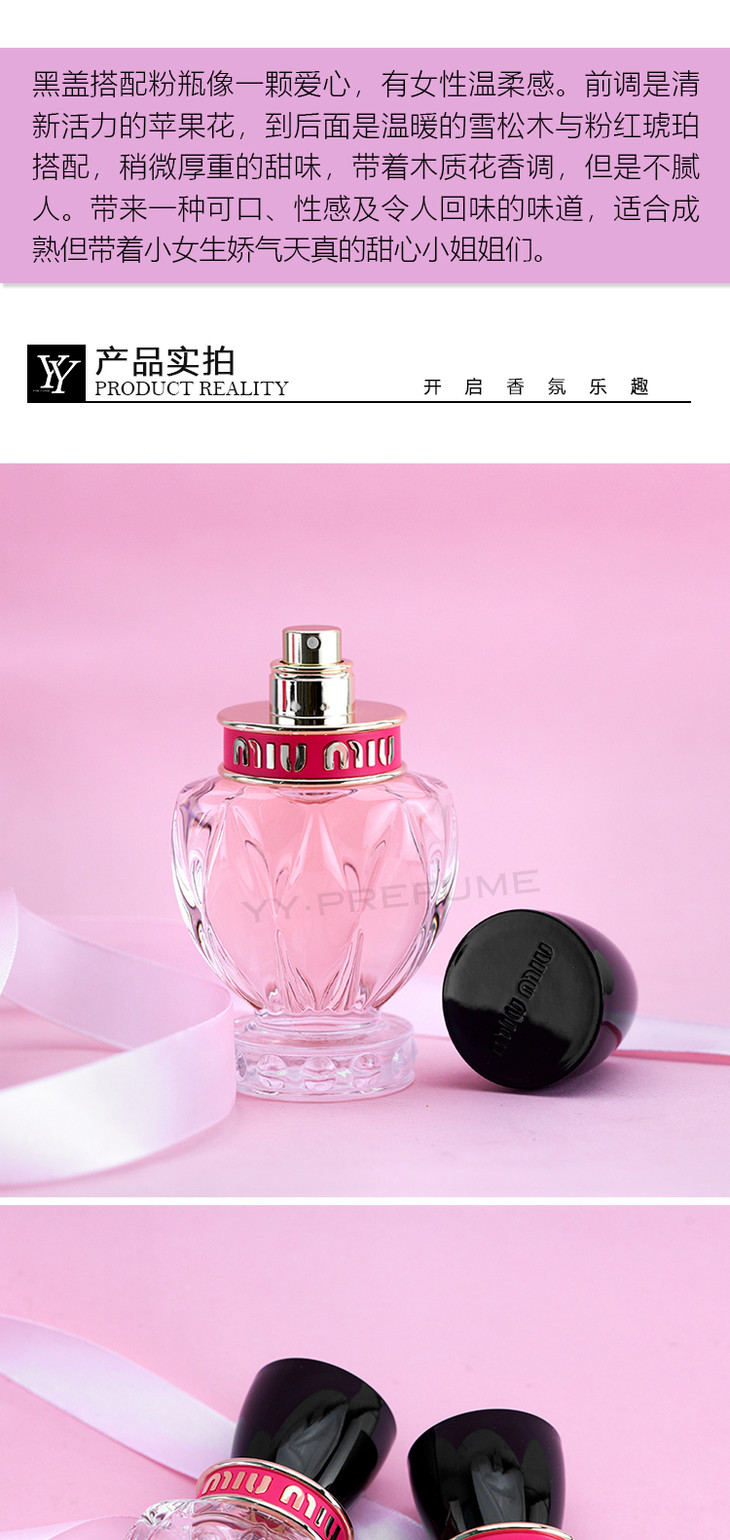 MiuMiu缪缪2019新款5代Twist限量香水粉瓶黑盖EDP50ml👍轻熟少女香调,黑盖搭配粉瓶像一颗爱心�,有种专属女性的温柔甜美感😘,前调是清新活力的苹果花🌸,过度到后面是带着木质花香调的甜味,可口,性感令人回味的味道🤩,适合成熟但带着小女生娇气的💖甜心小姐姐哦😘😘~