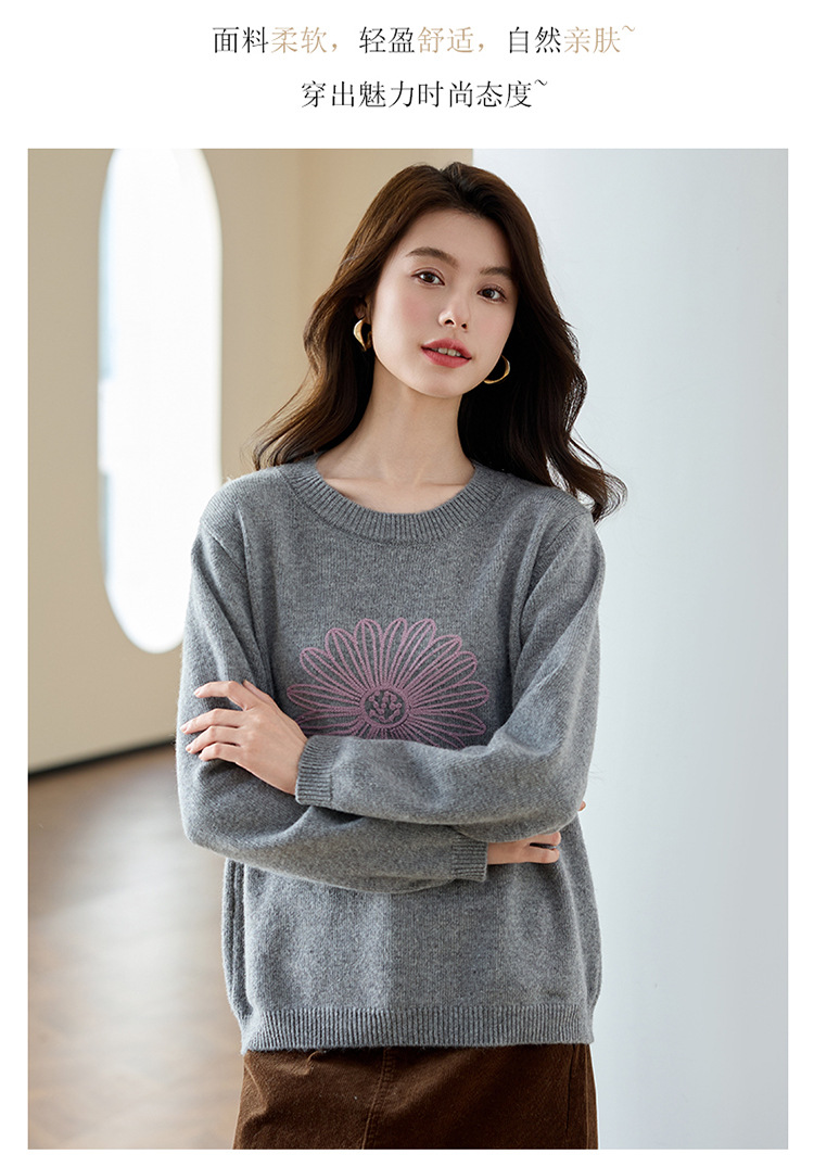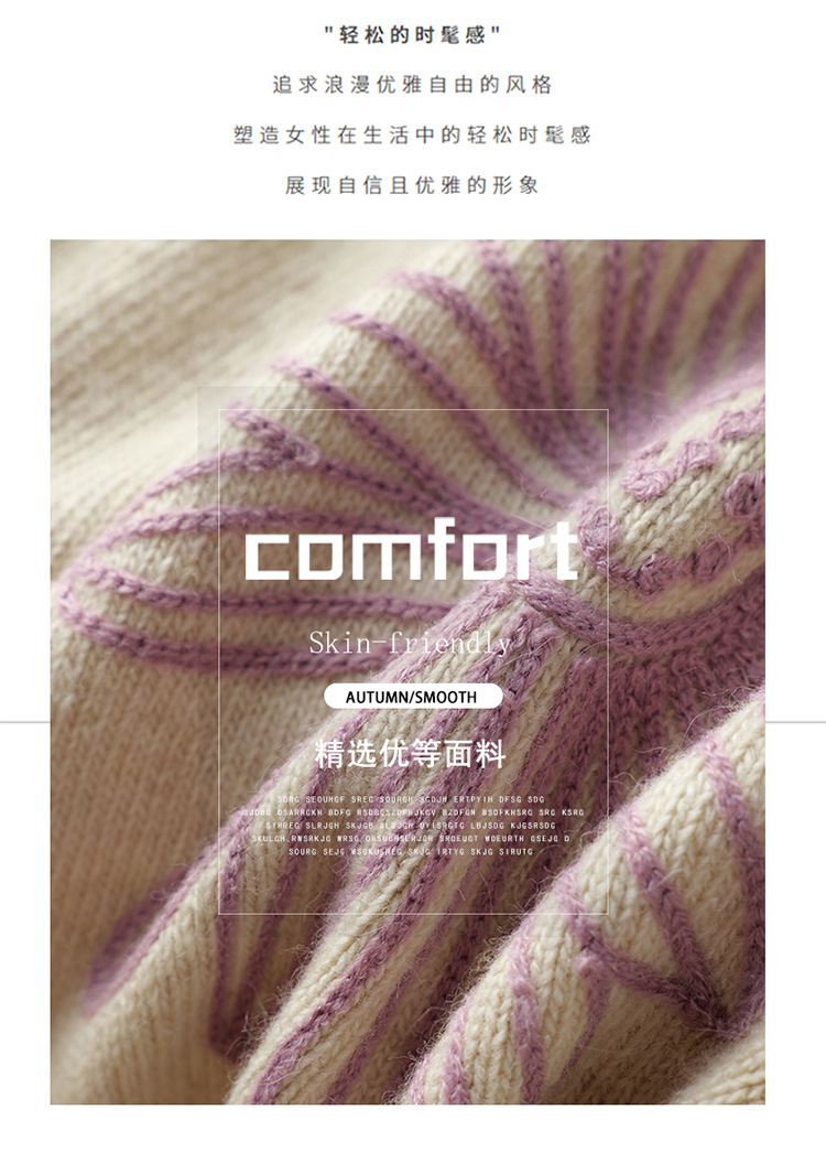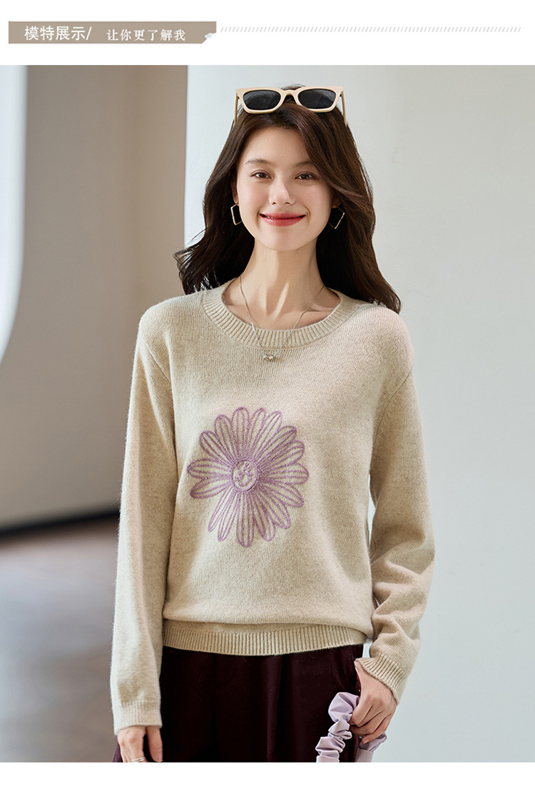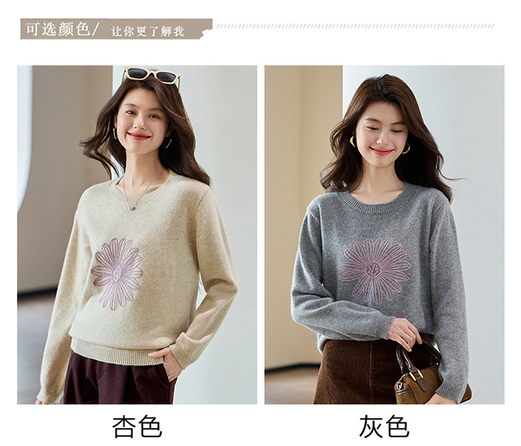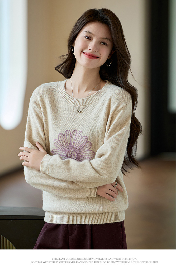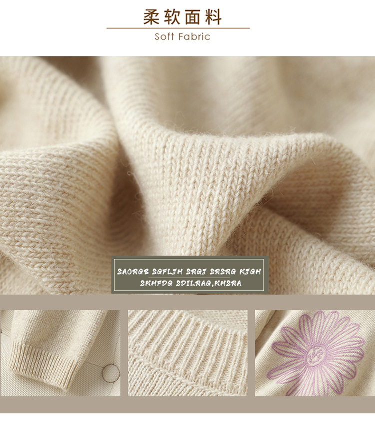 刺绣高腰套头毛衣羊毛针织衫,复古软糯慵懒内搭打底上衣CC- J845