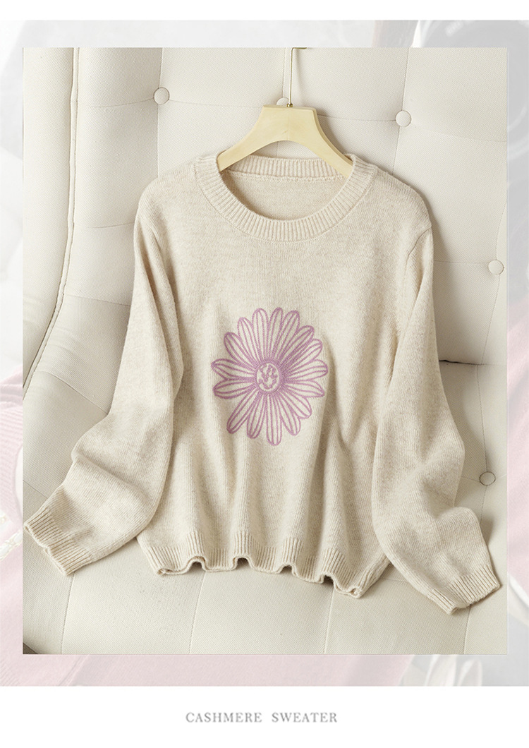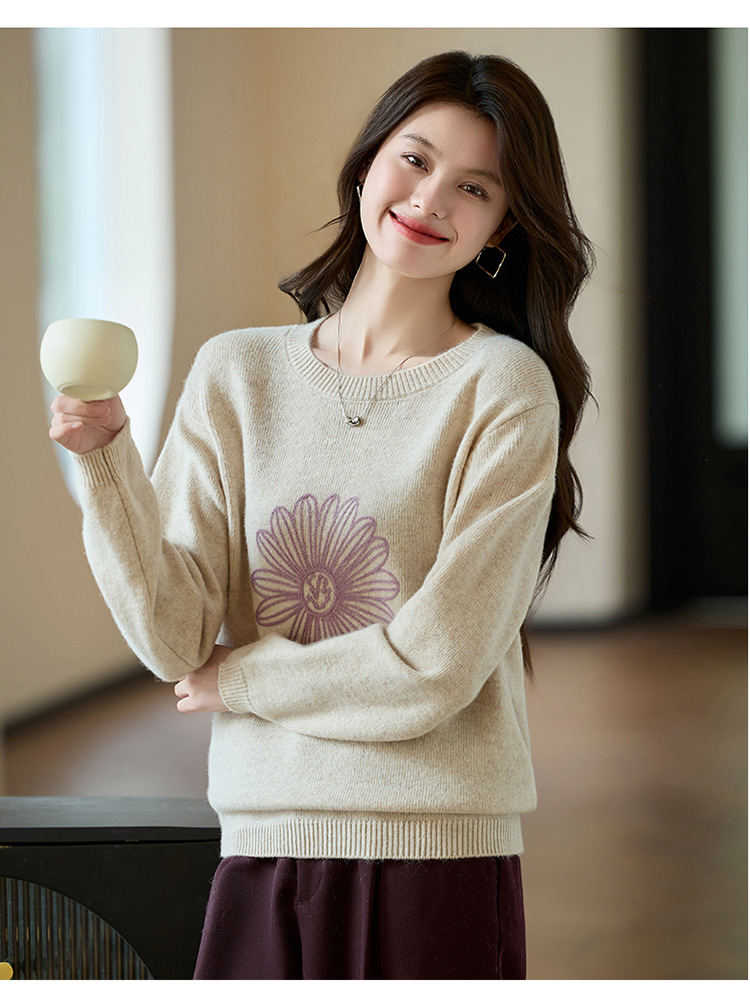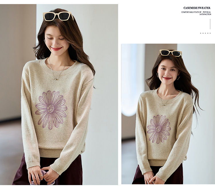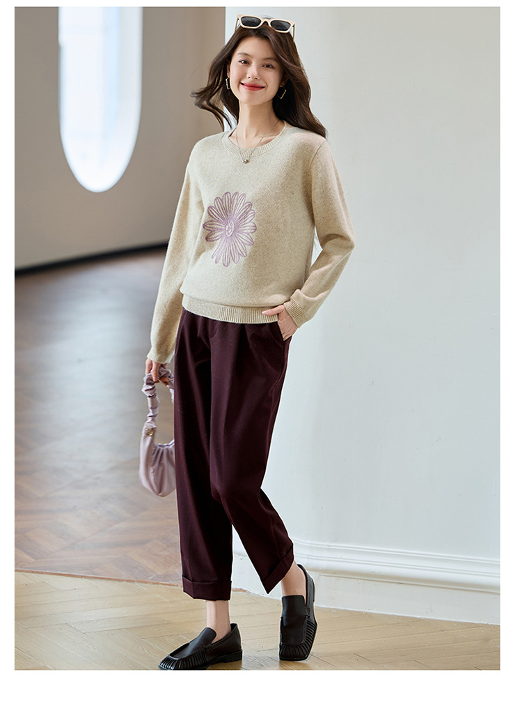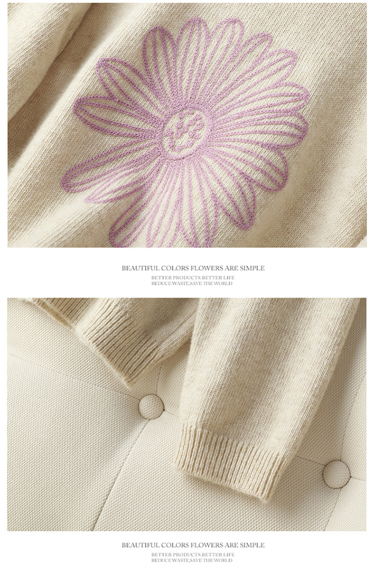 刺绣高腰套头毛衣羊毛针织衫,复古软糯慵懒内搭打底上衣CC- J845